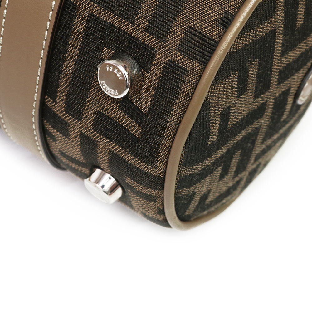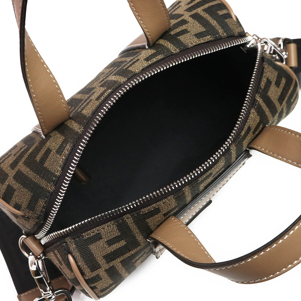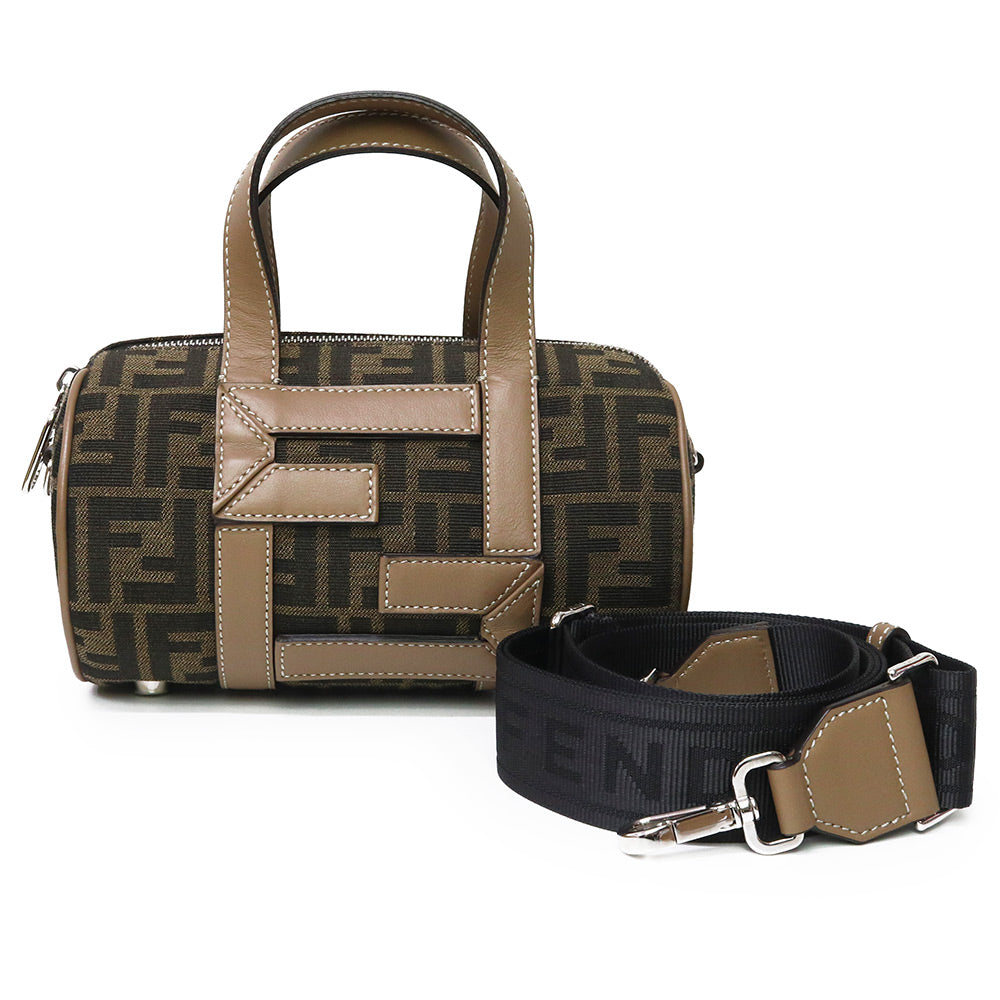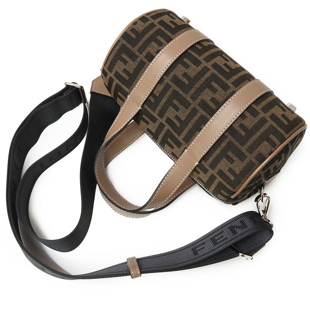 【未使用 展示品】FENDI フェンディ 7VA570 ズッカ ロゴ ミニ FF ジャガード ファブリック ブラウン 2WAY 斜め掛け ショルダー ハンドバッグ レザー シルバー金具