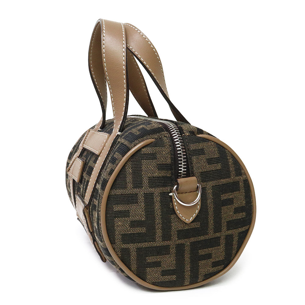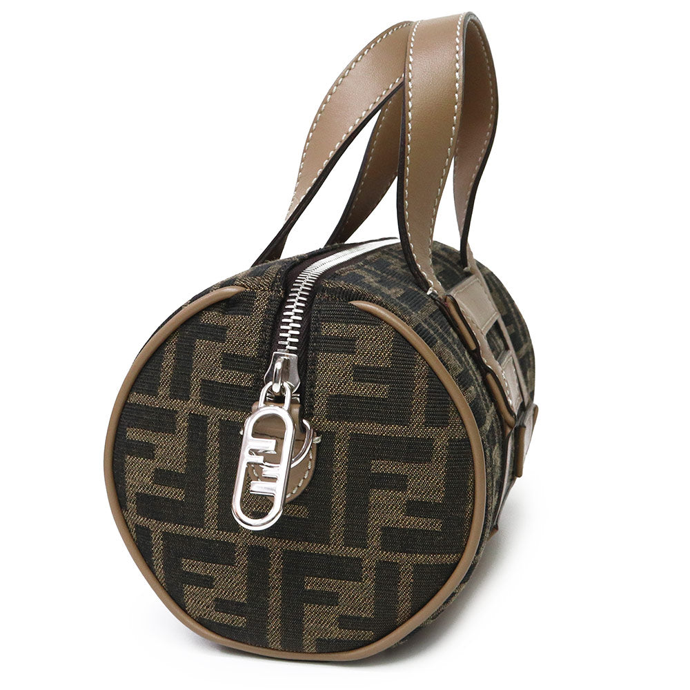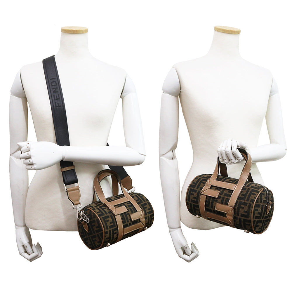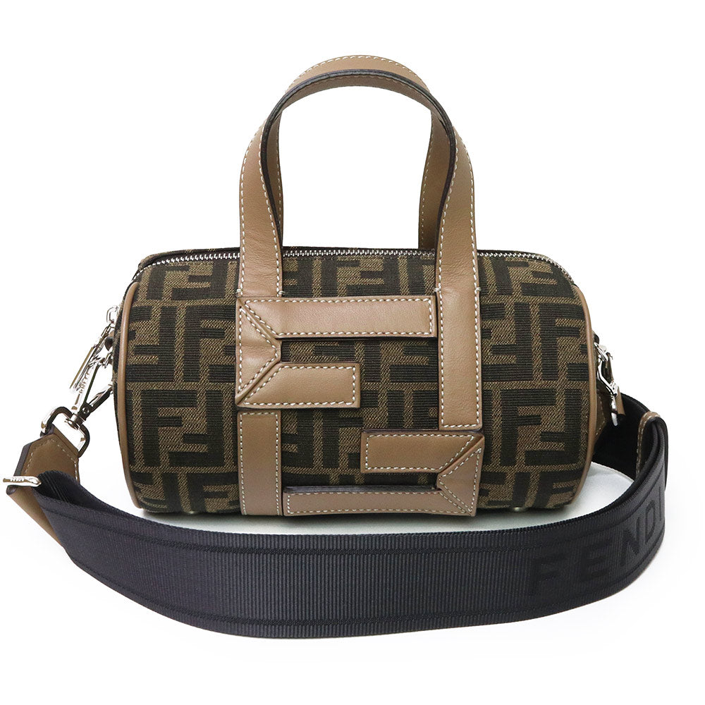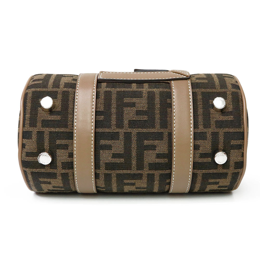 【未使用 展示品】FENDI フェンディ 7VA570 ズッカ ロゴ ミニ FF ジャガード ファブリック ブラウン 2WAY 斜め掛け ショルダー ハンドバッグ レザー シルバー金具