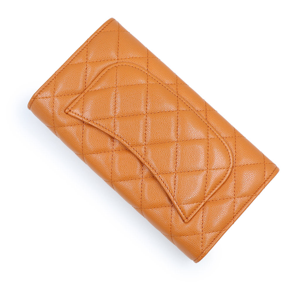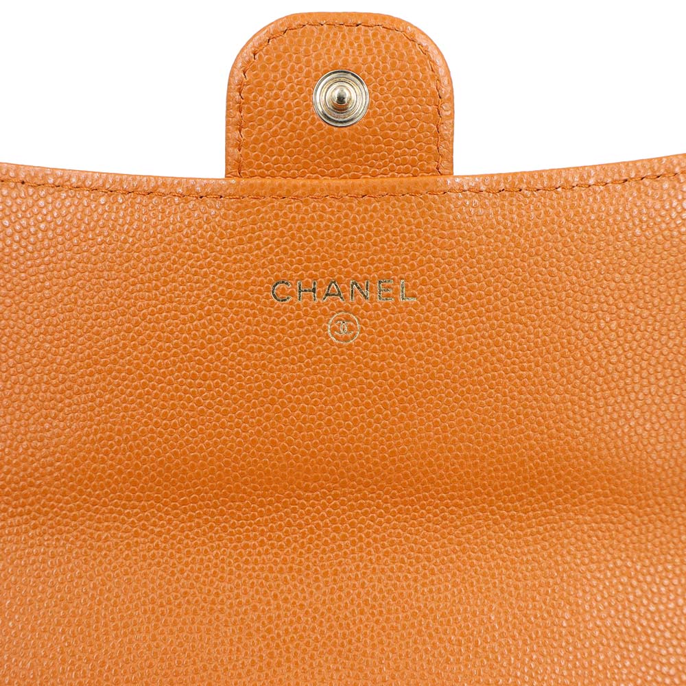 【新品・未使用品】CHANEL シャネル AP0241 マトラッセ クラシック ロング フラップウォレット キャビアスキン オレンジ 二つ折り長財布 レザー ゴールド金具 箱付