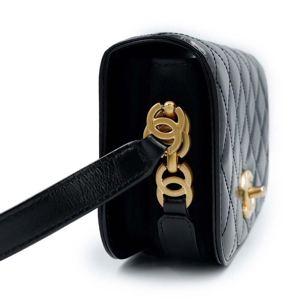 シャイニーカーフスキンにシャネルらしいキルティング加工とゴールドのココマークが映える上品なデザイン。カジュアルにもフォーマルにも使える万能バッグです。 |