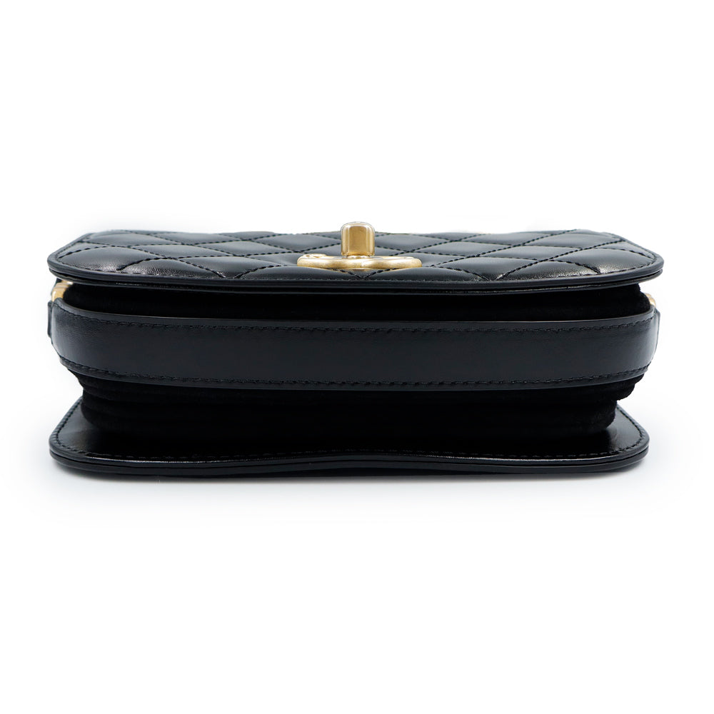 【美品】CHANEL シャネル AS3402 ミニマトラッセ メッセンジャー シャイニーカーフスキン スウェード ブラック ショルダーバッグ 斜め掛け レザー マットゴールド金具