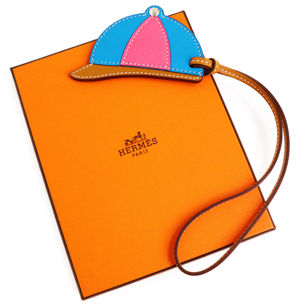 【新品・未使用品】エルメス HERMES ヴォーバトラー スイフトレザー パドック ボンブ ボンベイ 帽子 チャーム ナチュラルサブレ ブルー ピンク H069715CK 箱付