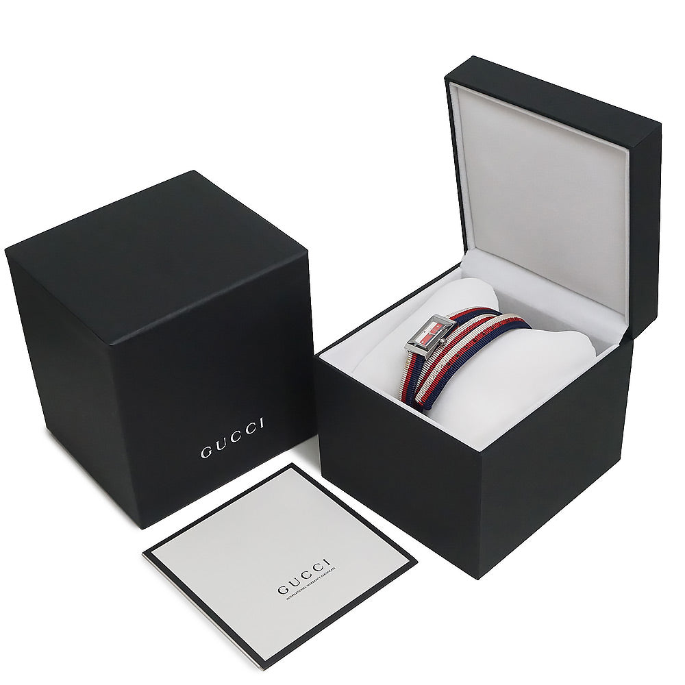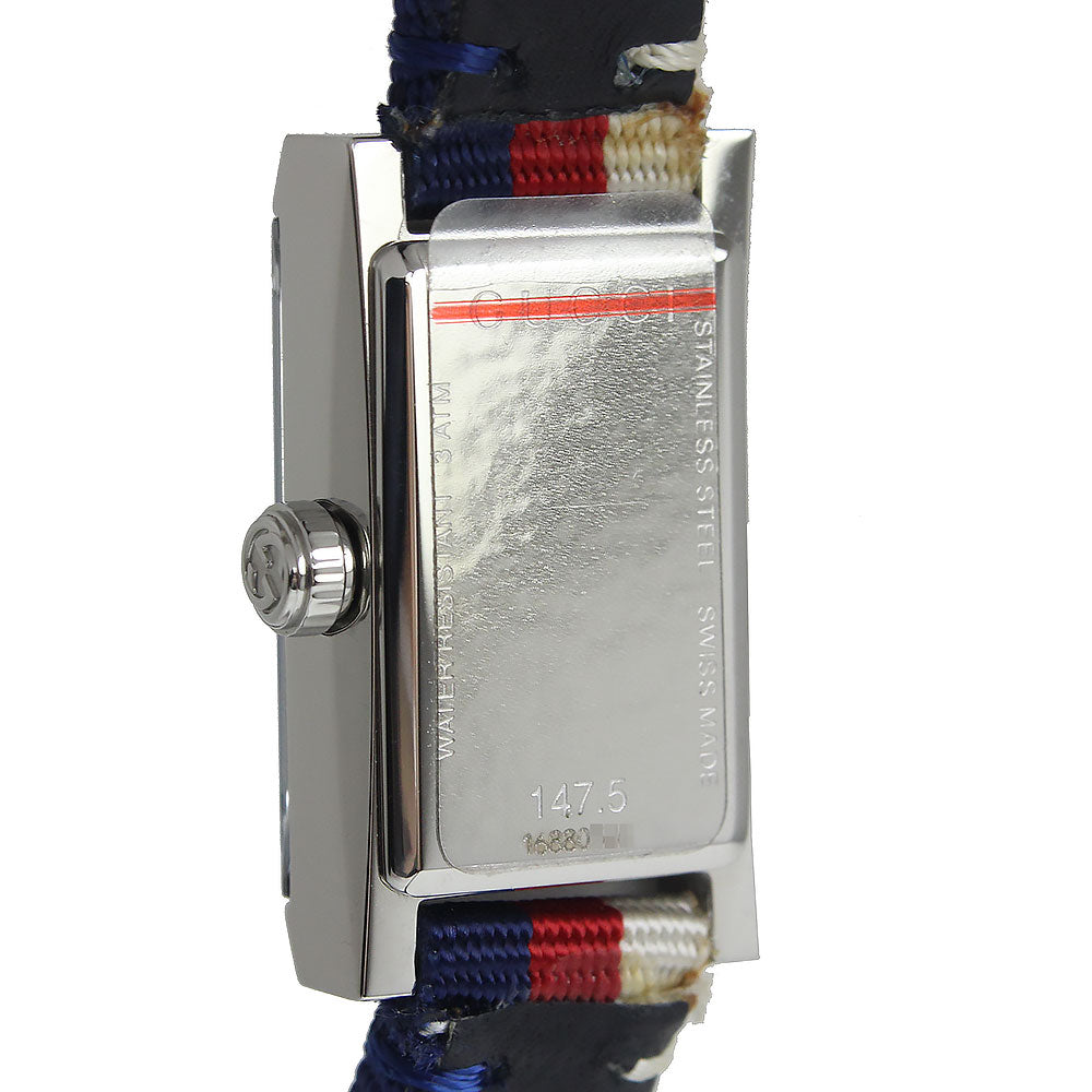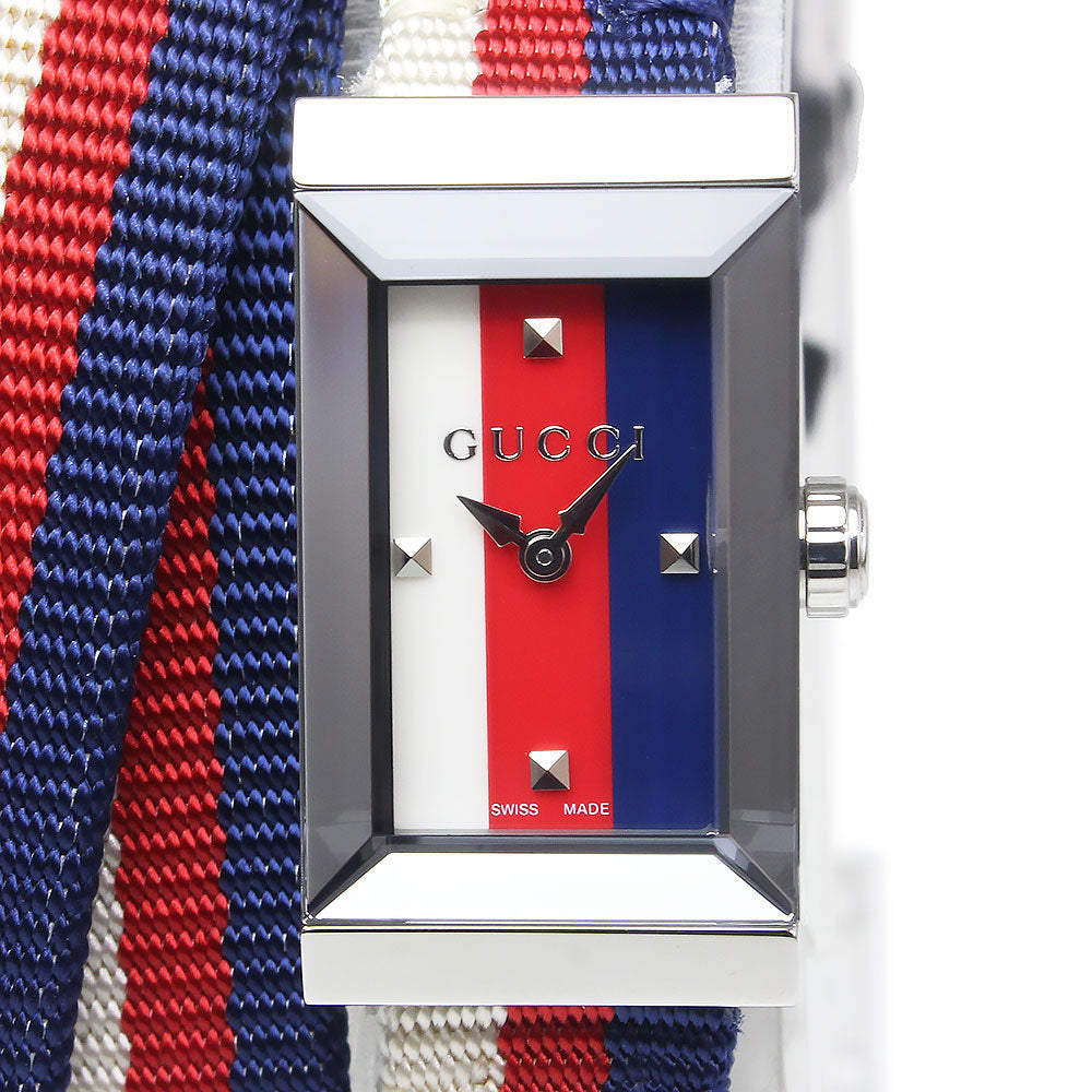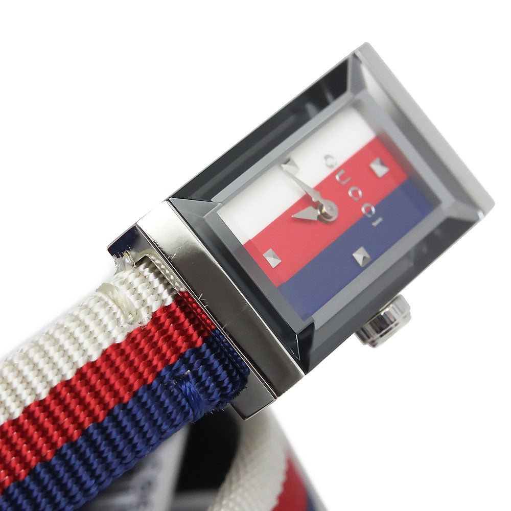【未使用 展示品】グッチ GUCCI Gフレーム クォーツ 腕時計 ナイロン レザー ブルー レッド ホワイト 青 赤 白 147.5 YA147502 箱付