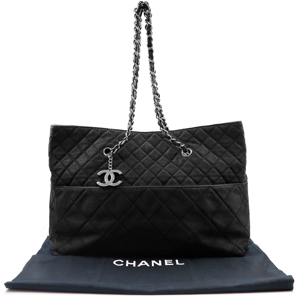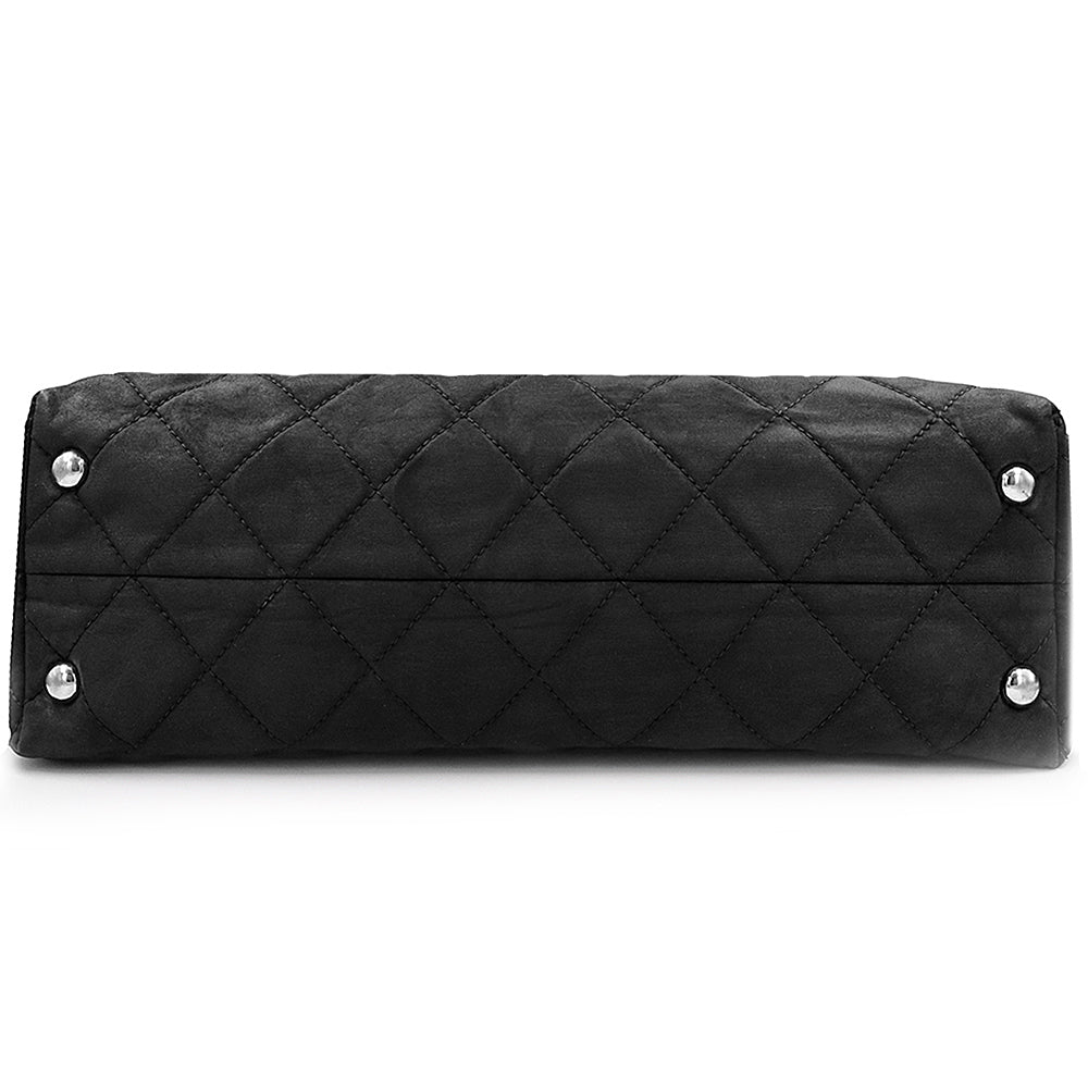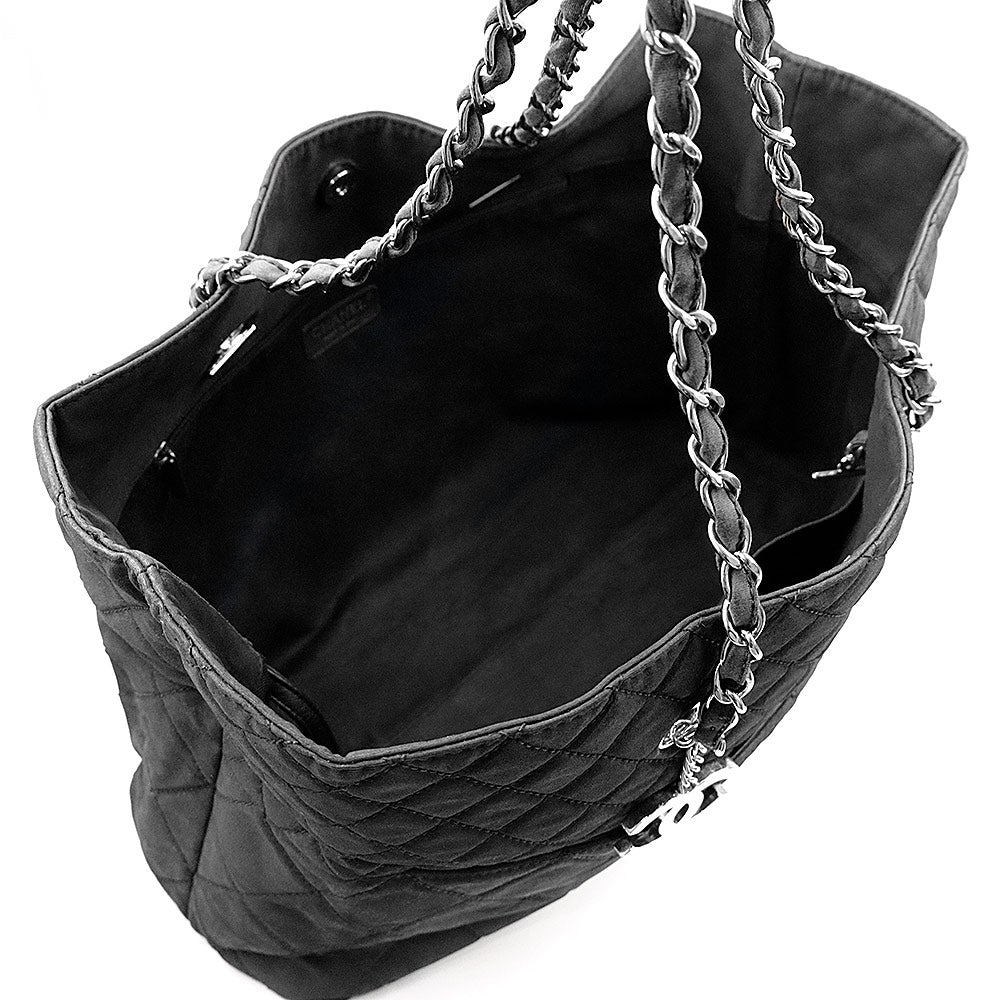 【中古】CHANEL シャネル A49270 マトラッセ チェーン ラージ キャンバス ブラック トートバッグ シルバー金具