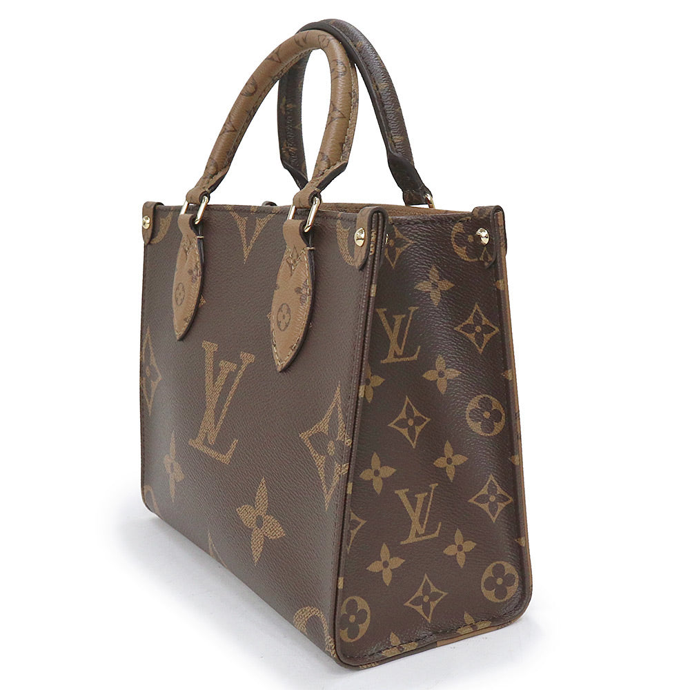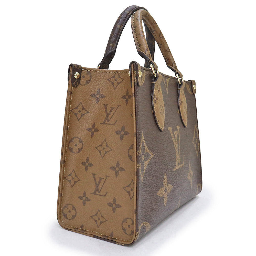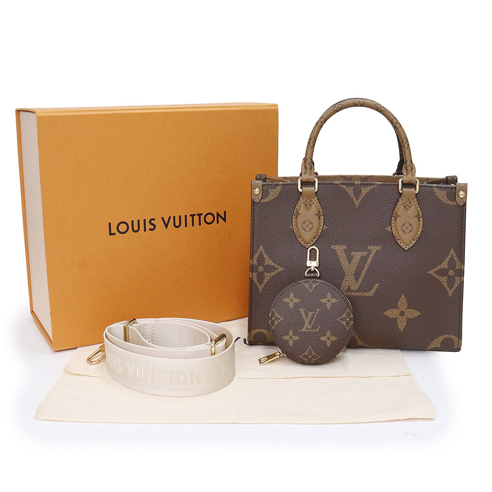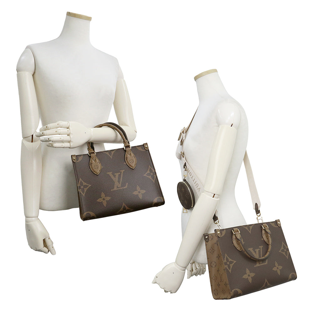 【未使用 展示品】ルイ ヴィトン LOUIS VUITTON オンザゴー PM 2WAY ショルダー ハンドバッグ 斜め掛け モノグラム リバース ブラウン ベージュ ゴールド金具 M46373