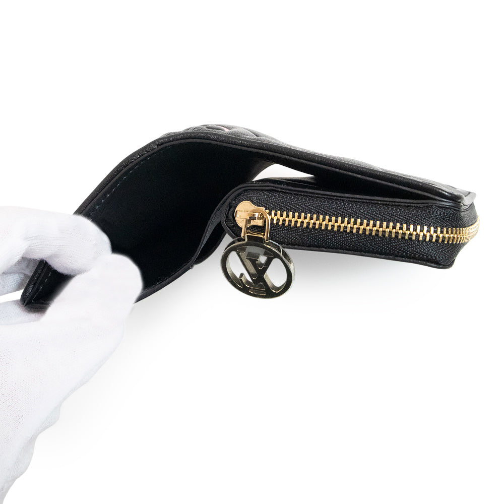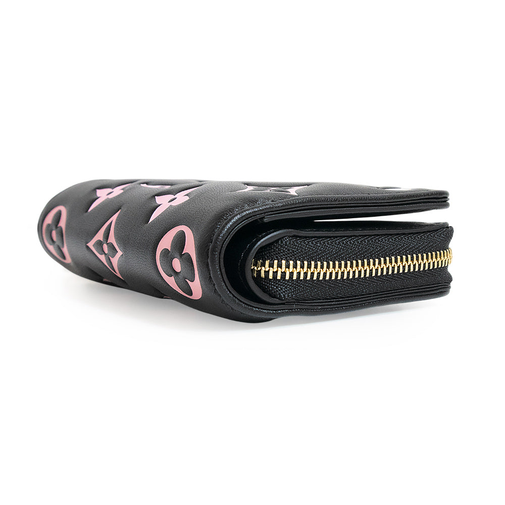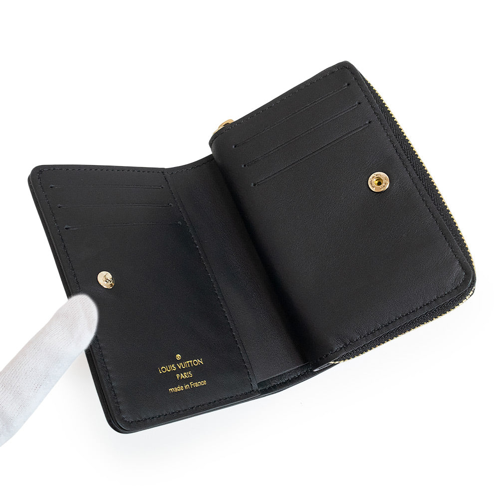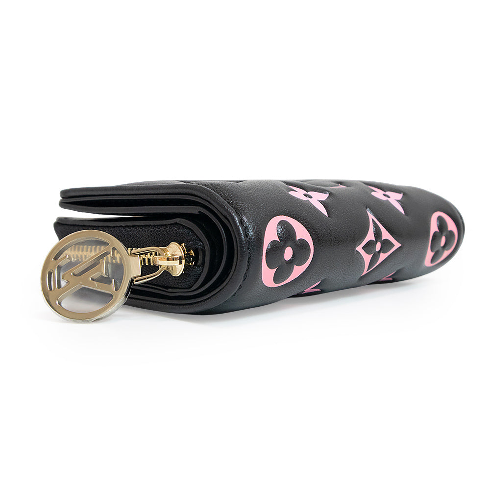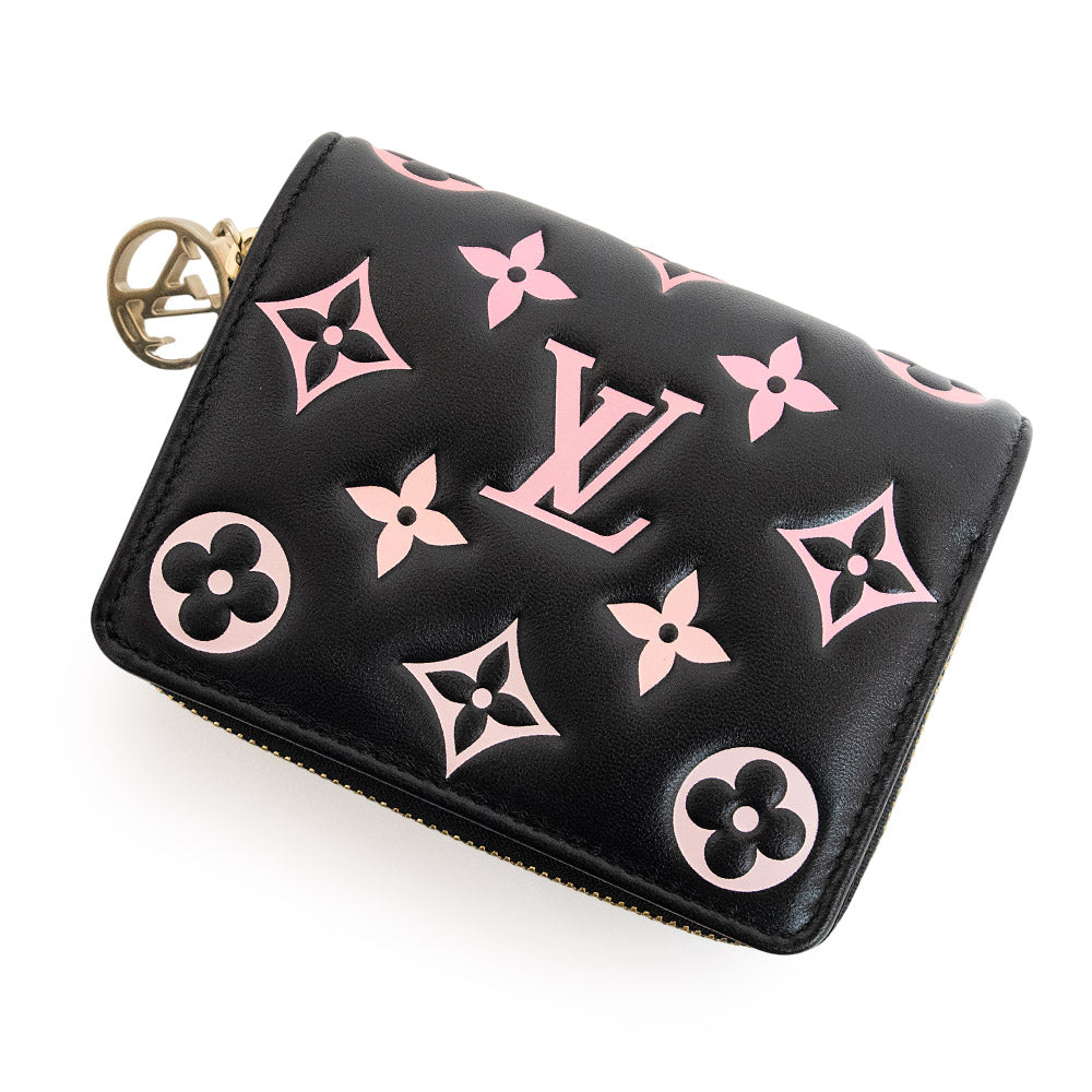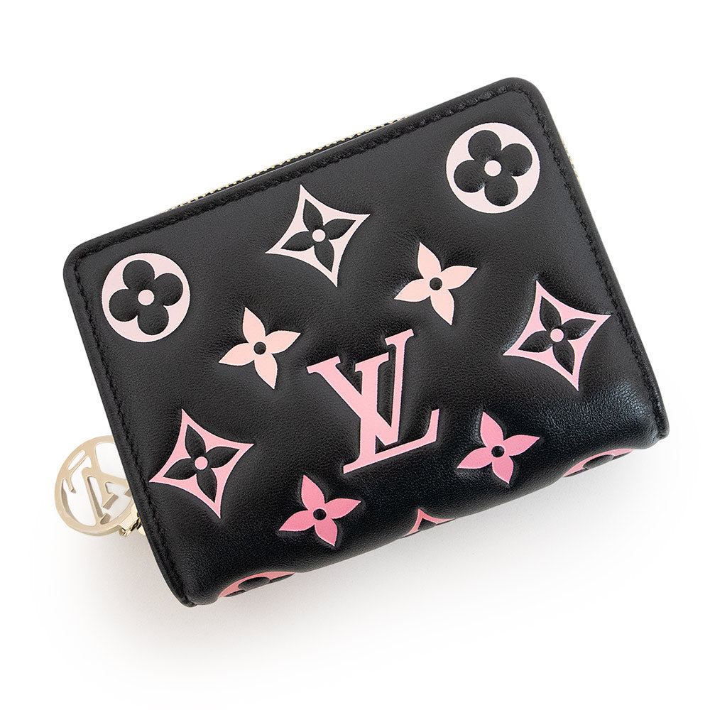 柔らかなラムスキンにブラックとピンクのコントラストが映える、ルイ・ヴィトン「ポルトフォイユ ルー」。コンパクトな二つ折り仕様ながら、カードや紙幣を整理しやすい実用的なレイアウトが魅力です。ゴールド金具が上品なアクセントとなり、日常使いから特別なシーンまで幅広く活躍します。 |