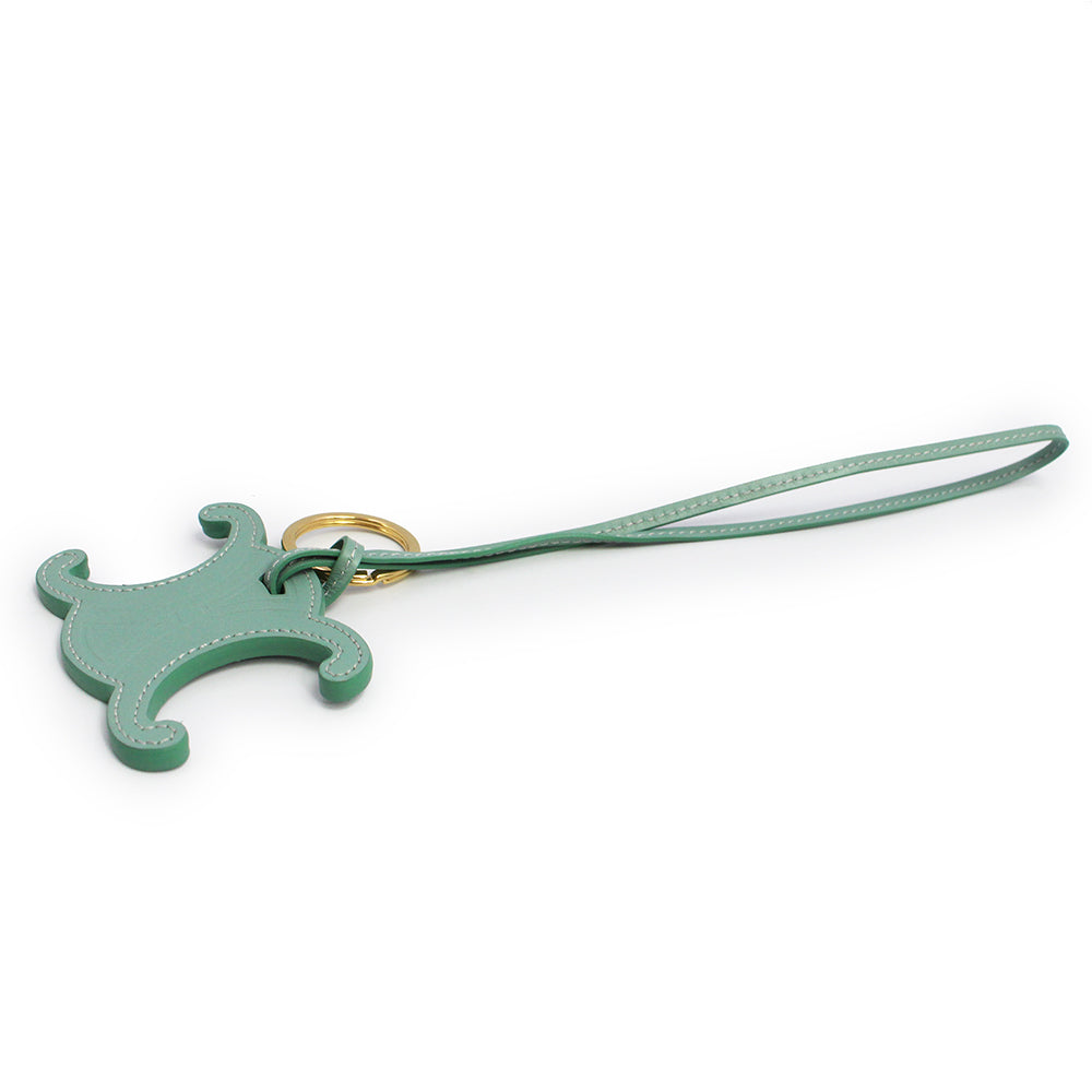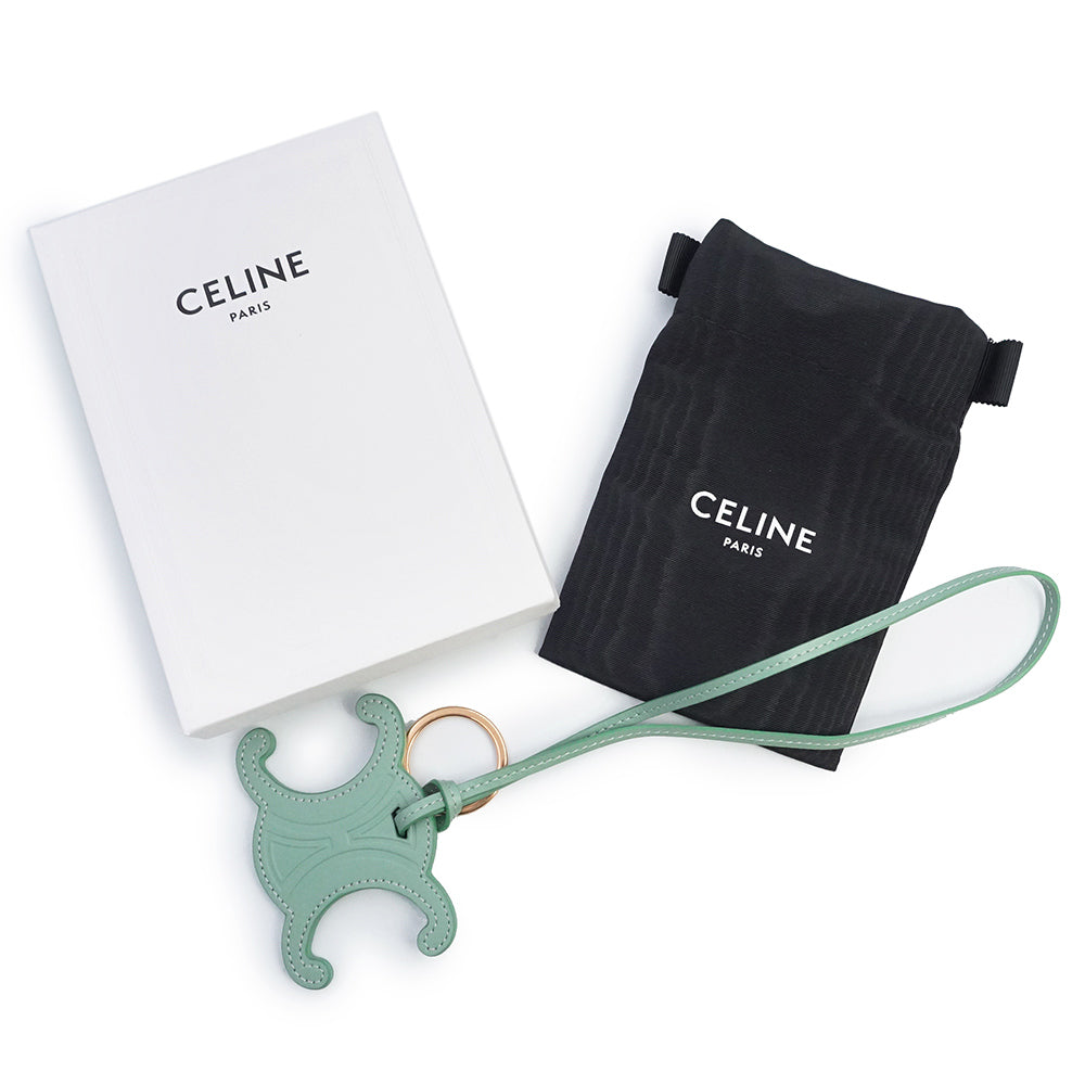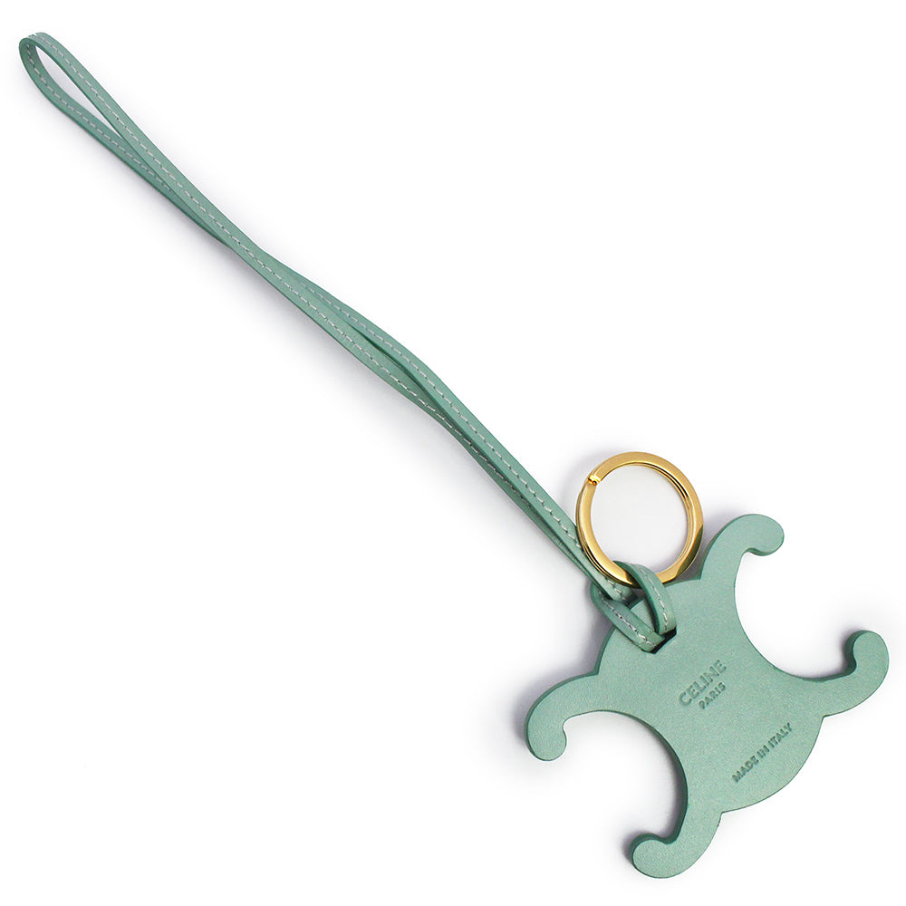 【全新未使用】CELINE Triomphe 包饰,带钥匙环,49I473DSD,光滑小牛皮,薄荷绿,复古金色五金,含盒子。