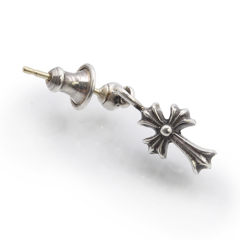 二手 CHROME HEARTS 2358-304-7011-9100 SV925 和 14K 金材质的十字架单只耳环,附带原始发票