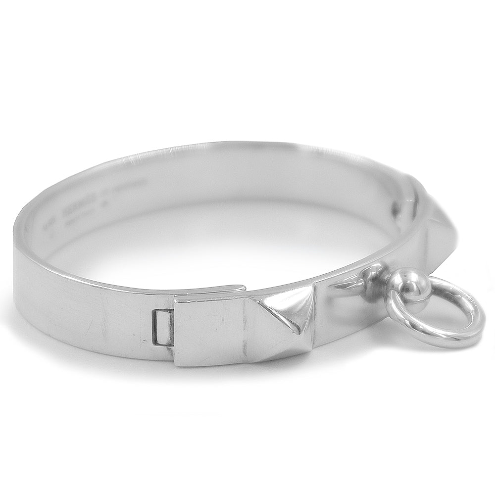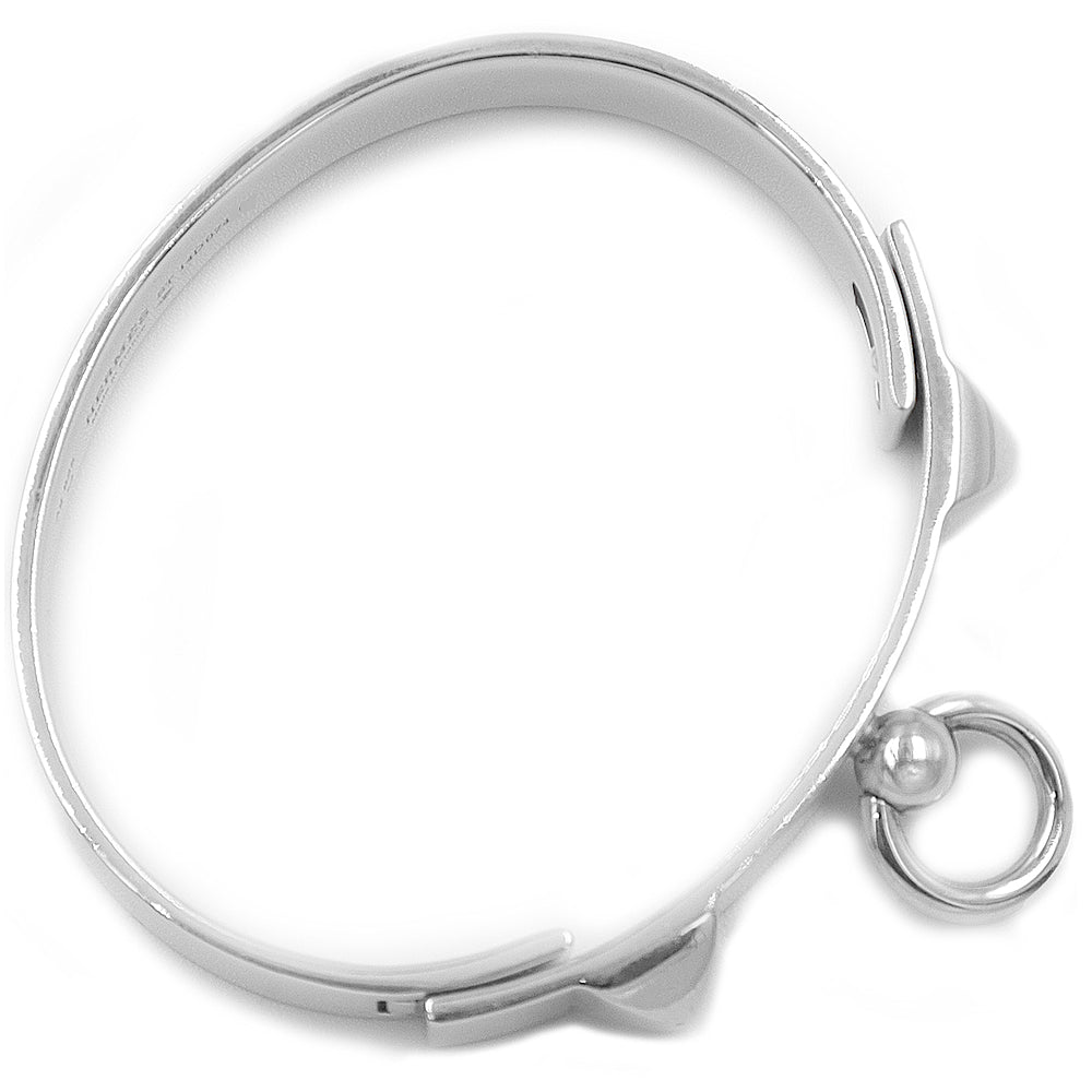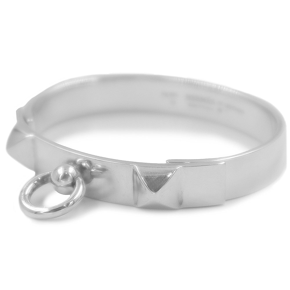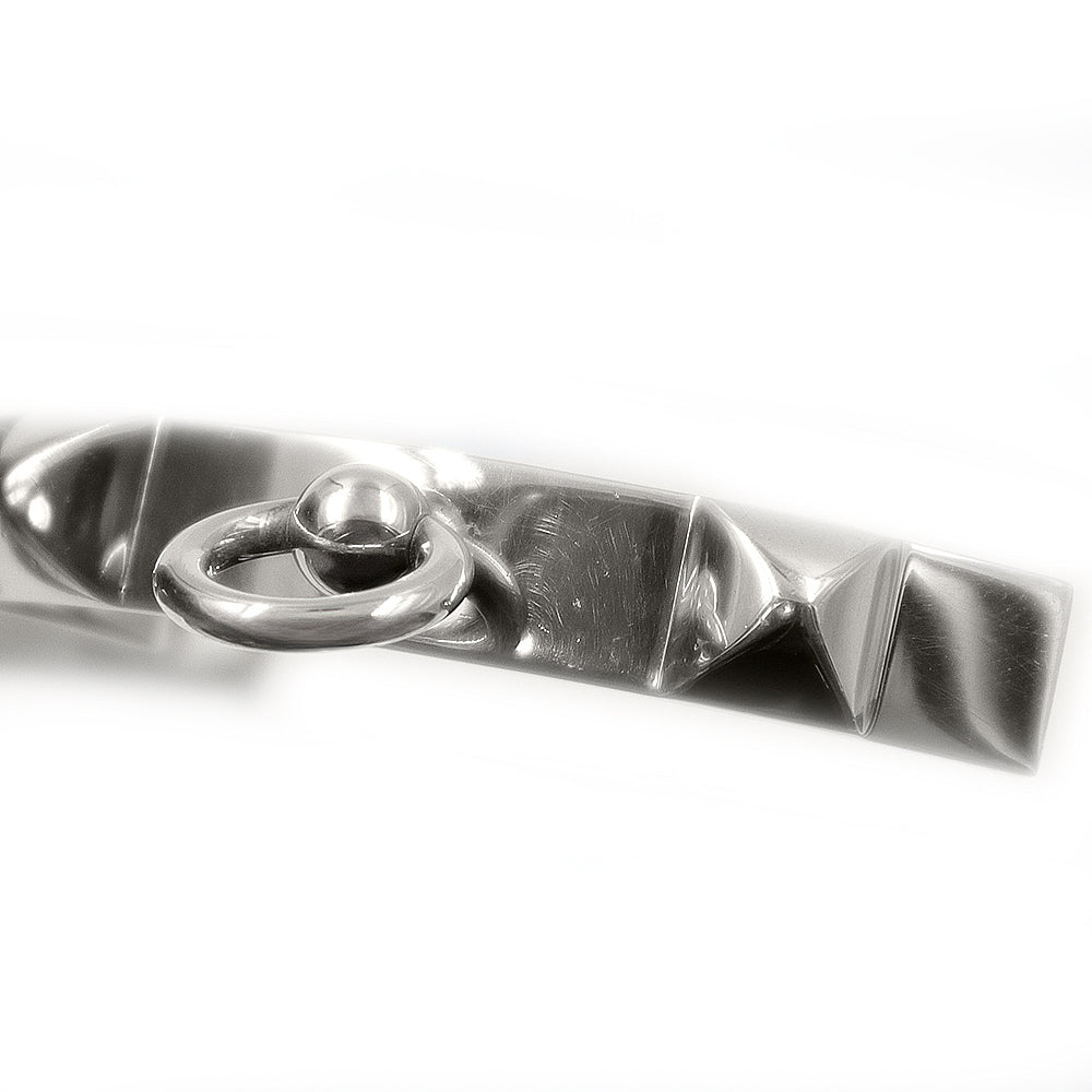 爱马仕 Collier de Chien 手链设计独特,形似狗项圈,饰以引人注目的金字塔形铆钉。可活动的圆环更添几分俏皮,简约而不失个性。银饰独特的光泽和美感,以及随着佩戴时间推移而愈发浓郁的复古韵味,都令人爱不释手。