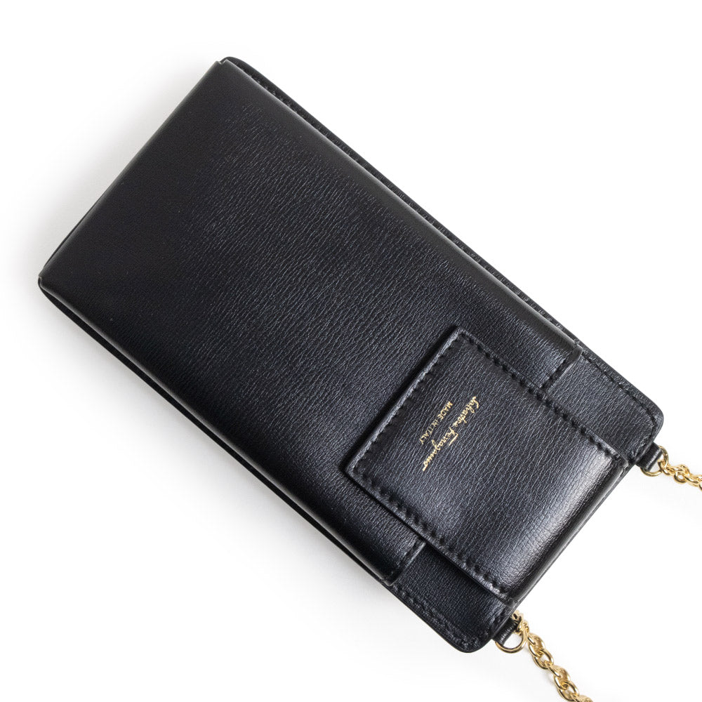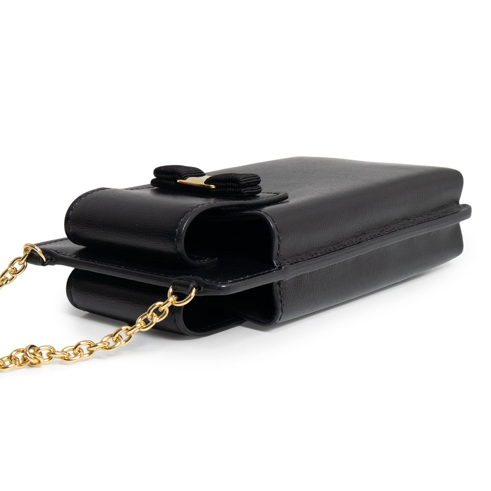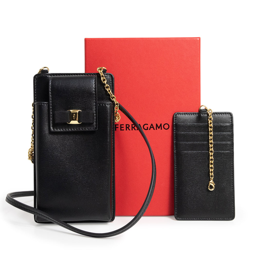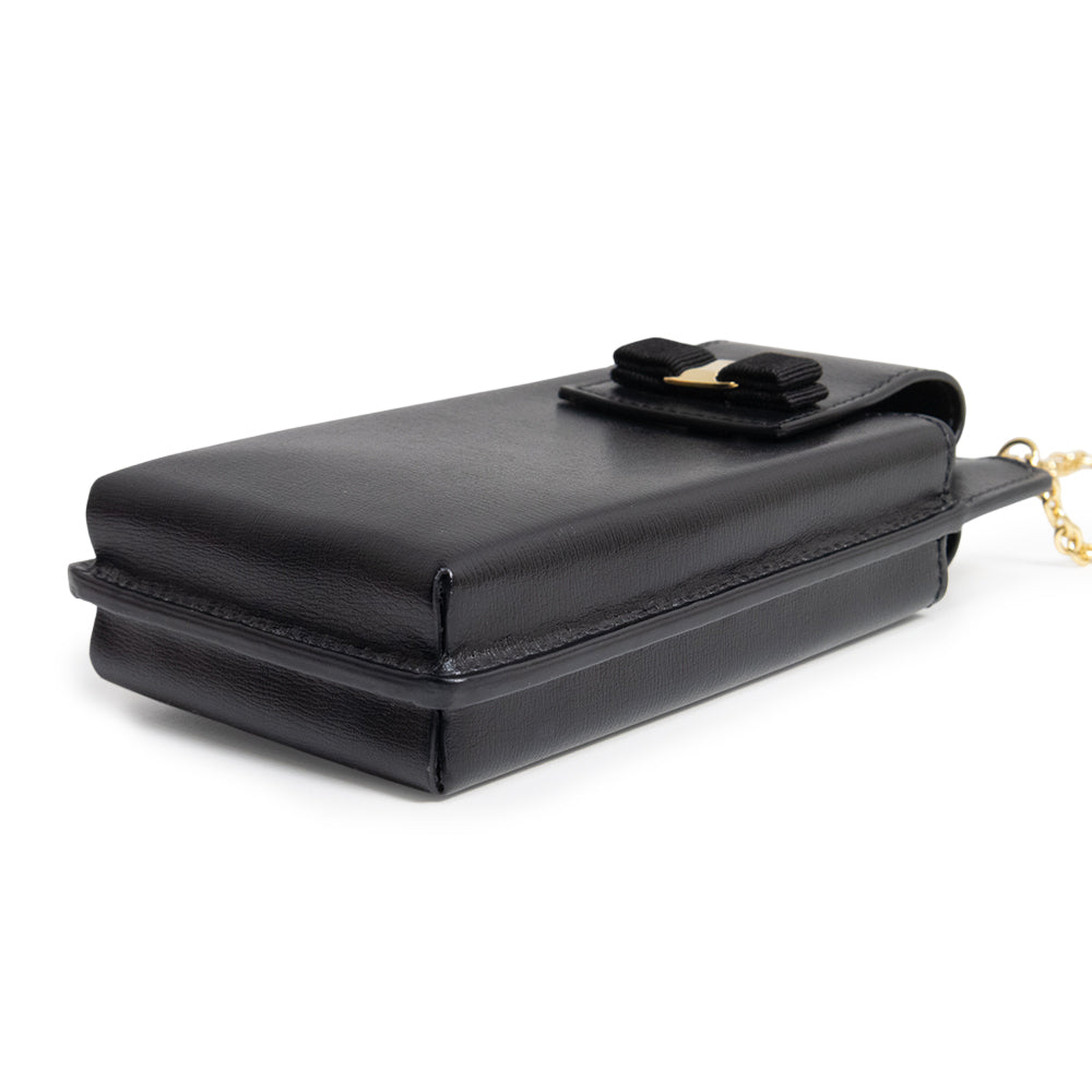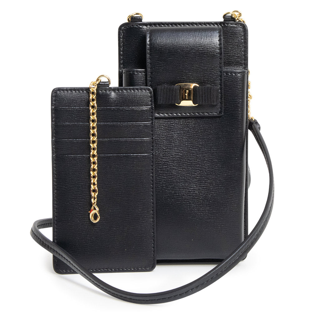 这款智能手机保护套饰有标志性的 Vara 缎带,功能齐全,配有两个按扣口袋、一个可拆卸卡槽和一个肩带。