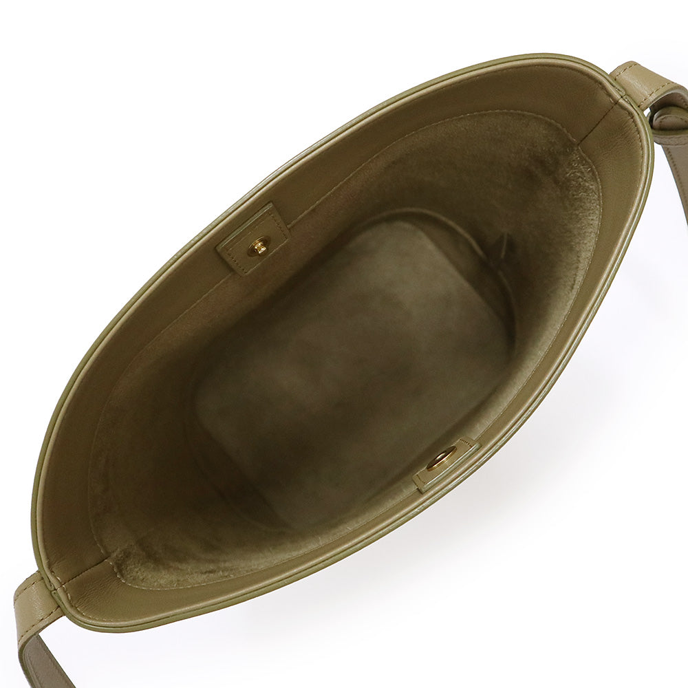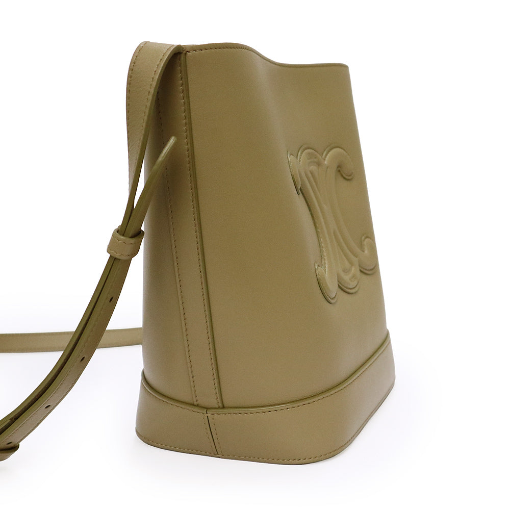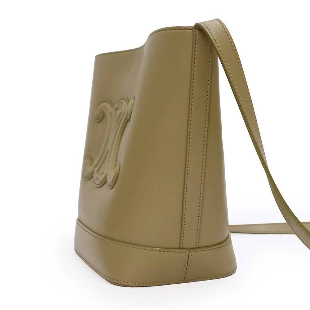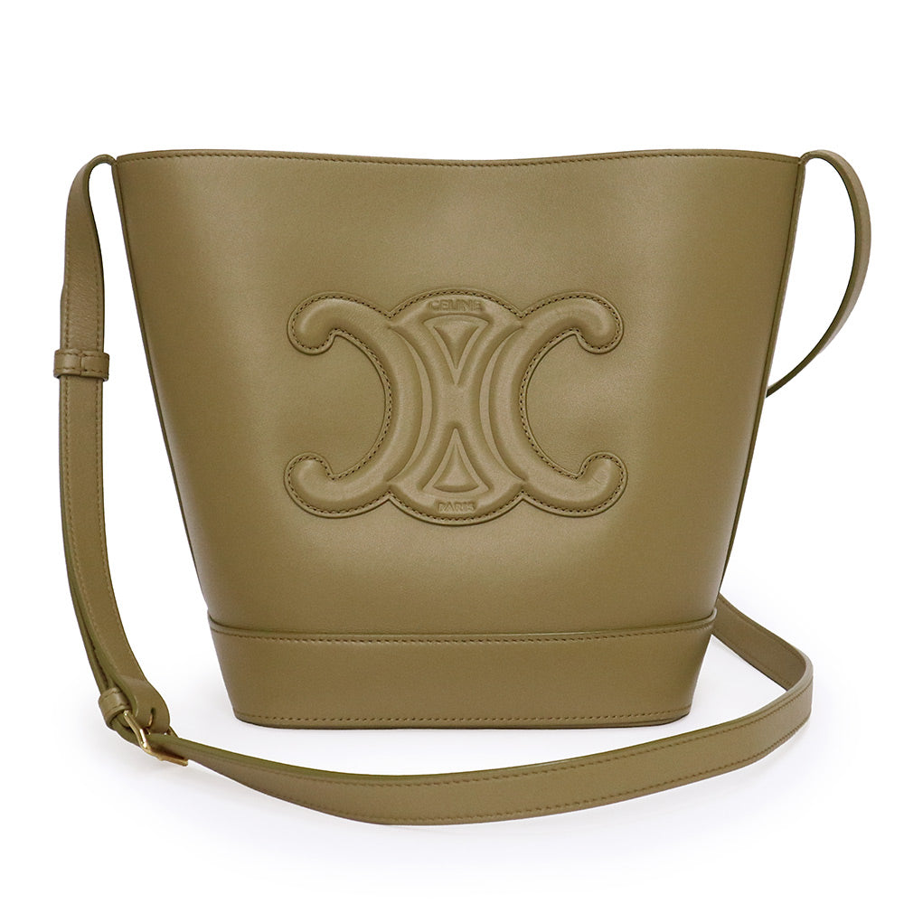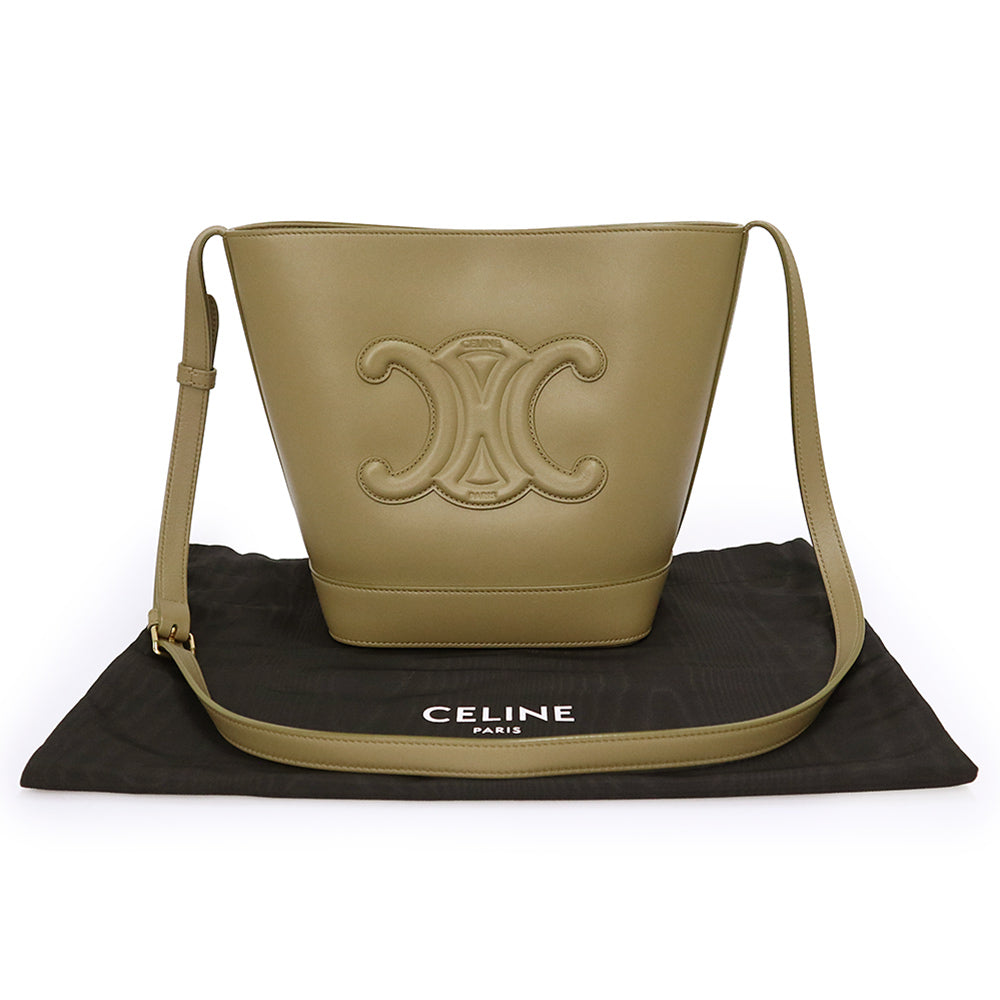 【未使用保管品】CELINE 赛琳 198243DU3 Cuir Triomphe 小型水桶包 光滑牛皮革 橄榄绿 卡其色 单肩包 斜挎包 金色五金