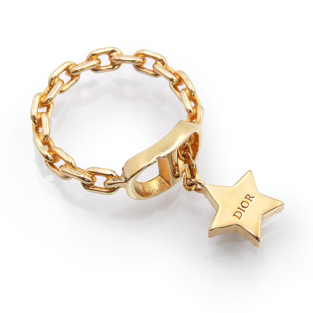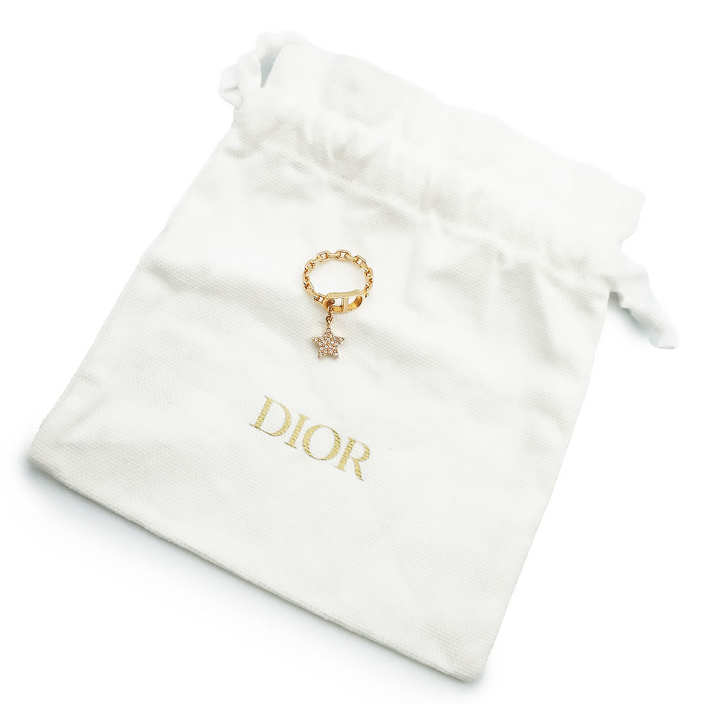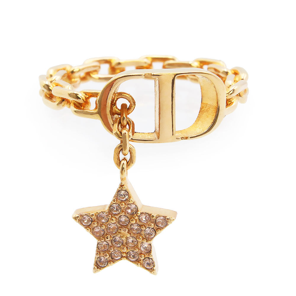 【新品・未使用品】Christian Dior 迪奥 R0903PMTCY Petit CD 标志 星星 水钻 金色 戒指 S码 #10号