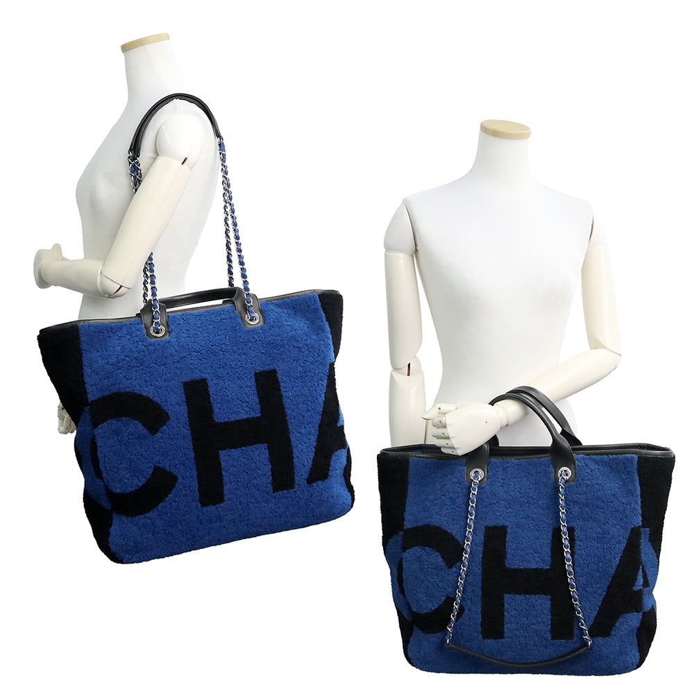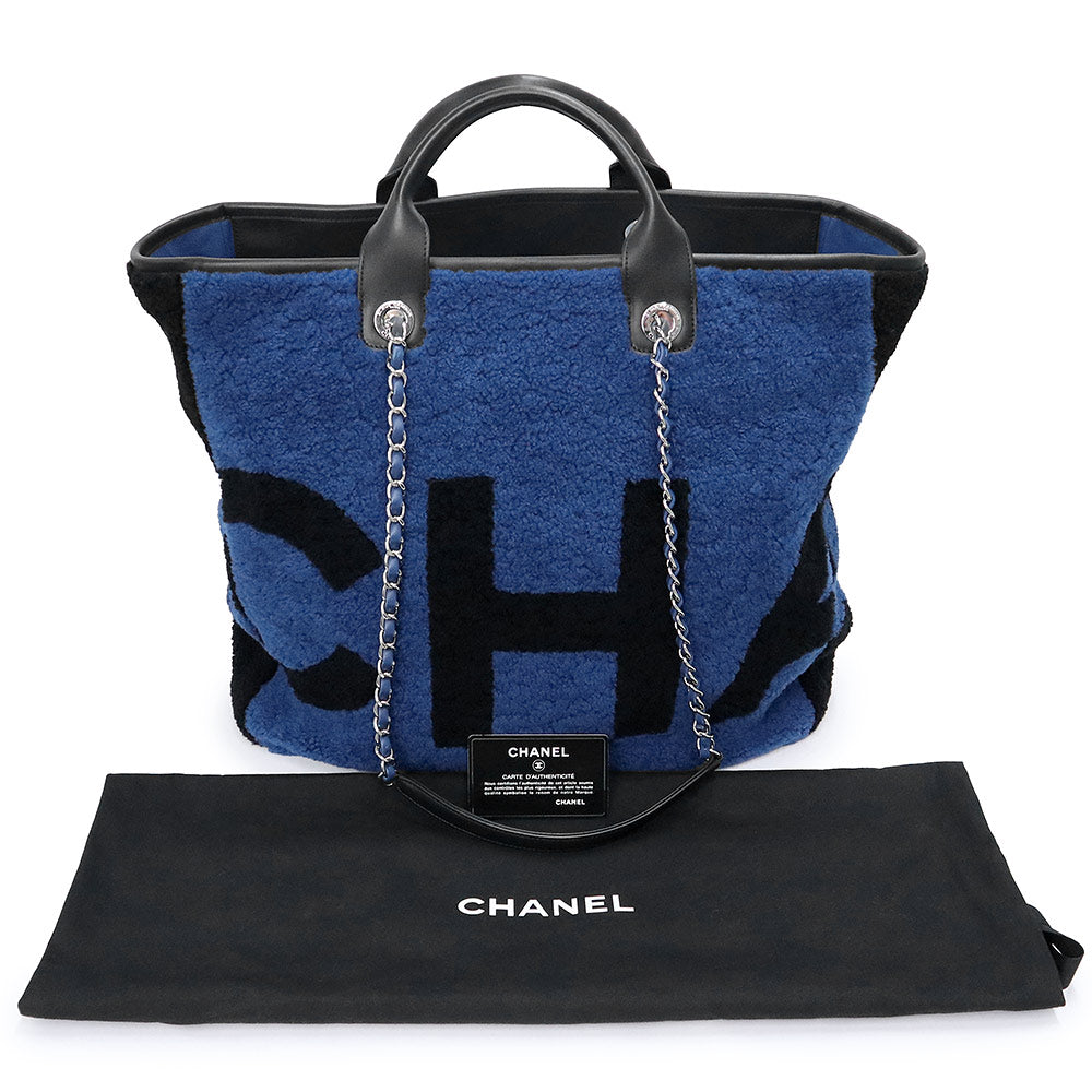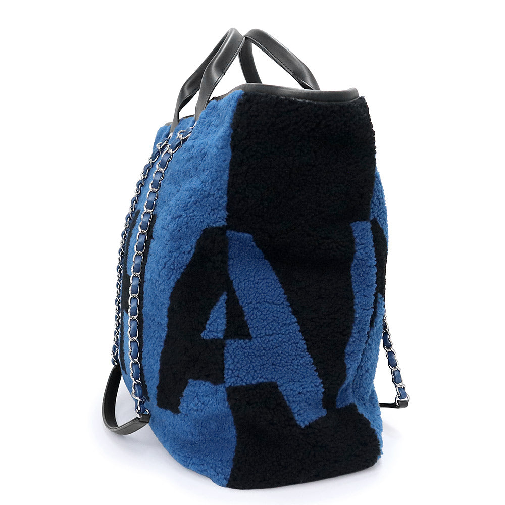 【美品】CHANEL 香奈儿 A57161 剪羊毛 Deauville 大号购物手提包 羊皮 蓝色 链条 2way 手提包 银色五金