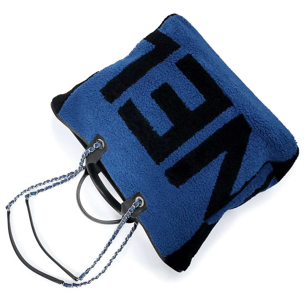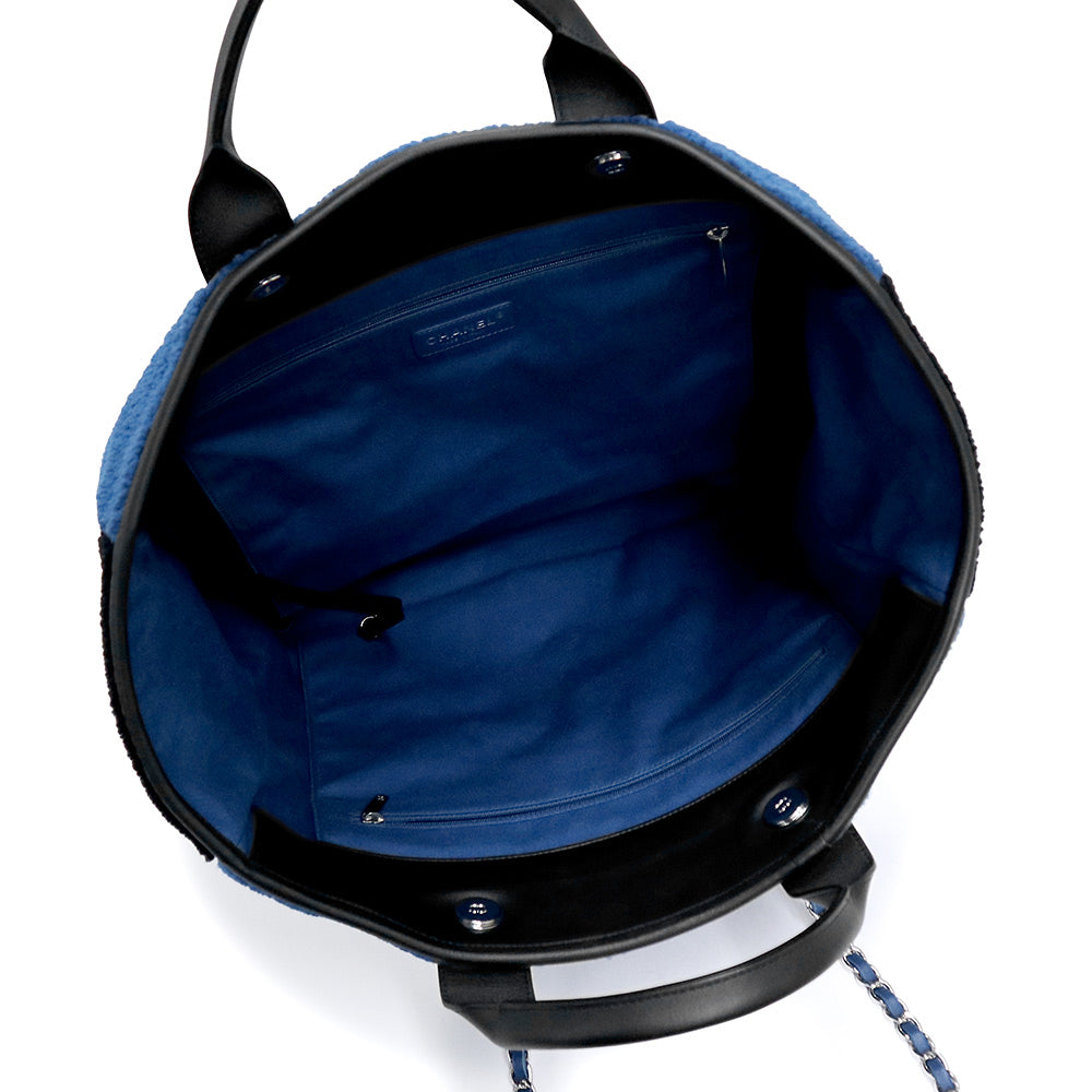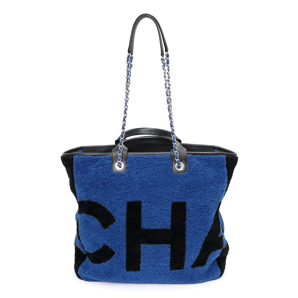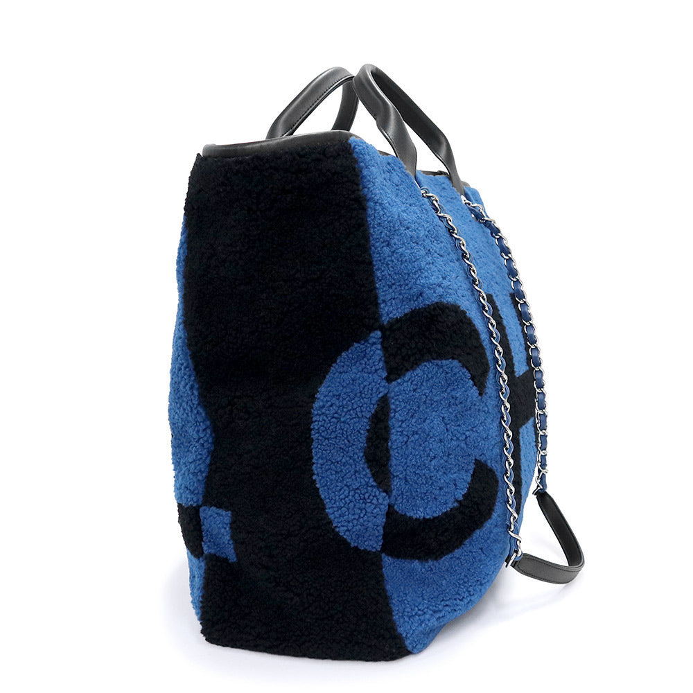 【美品】CHANEL 香奈儿 A57161 剪羊毛 Deauville 大号购物手提包 羊皮 蓝色 链条 2way 手提包 银色五金