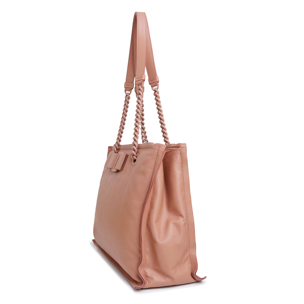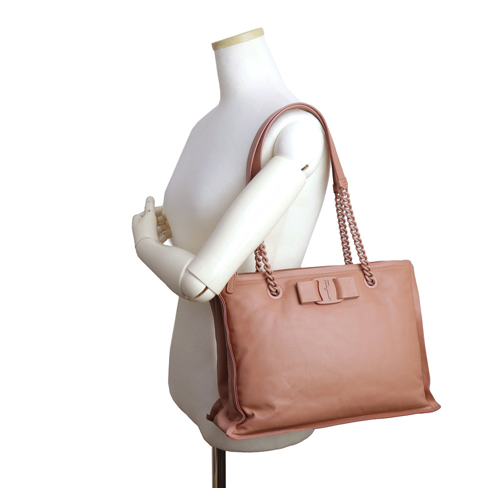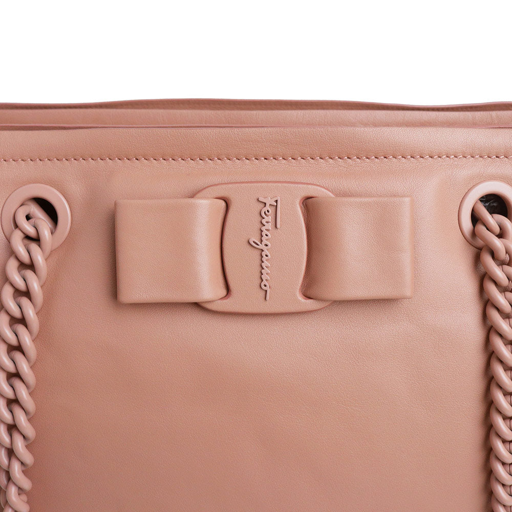 Salvatore Ferragamo 的“VIVA BOW”链条托特包采用柔和圆润的设计。磁扣开合方便使用,独立隔层设计更方便收纳。
