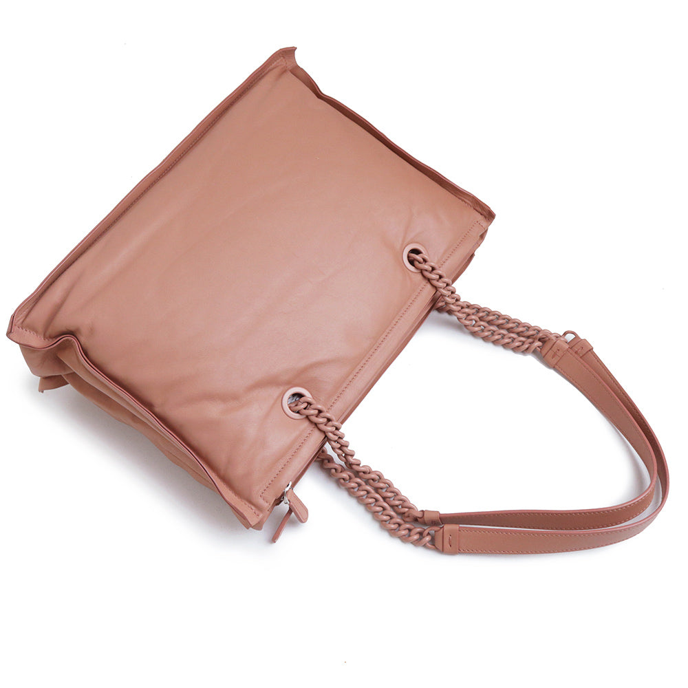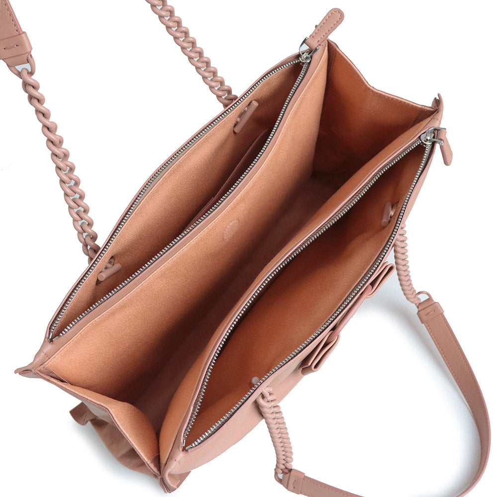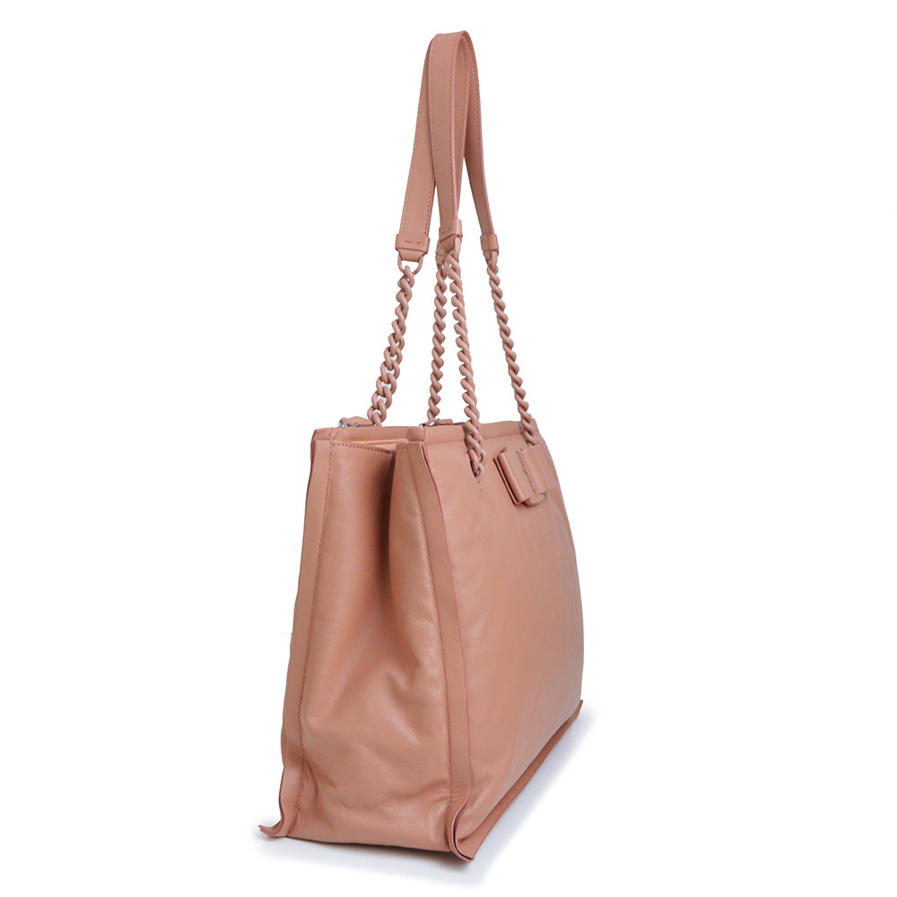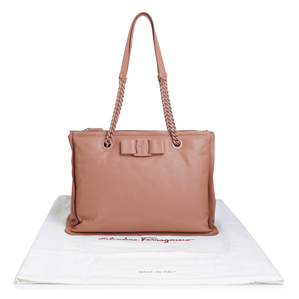 Salvatore Ferragamo 的“VIVA BOW”链条托特包采用柔和圆润的设计。磁扣开合方便使用,独立隔层设计更方便收纳。
