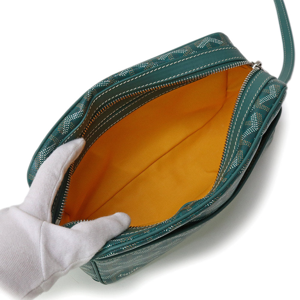 【中古】ゴヤール GOYARD ヘリンボーン カップヴェール PM クロスボディ ショルダーバッグ 斜め掛け PVC ゴヤールディン キャンバス セルヴォンカーフスキン レザー グリーン シルバー金具 CAPVE2PMLTY09CL09P
