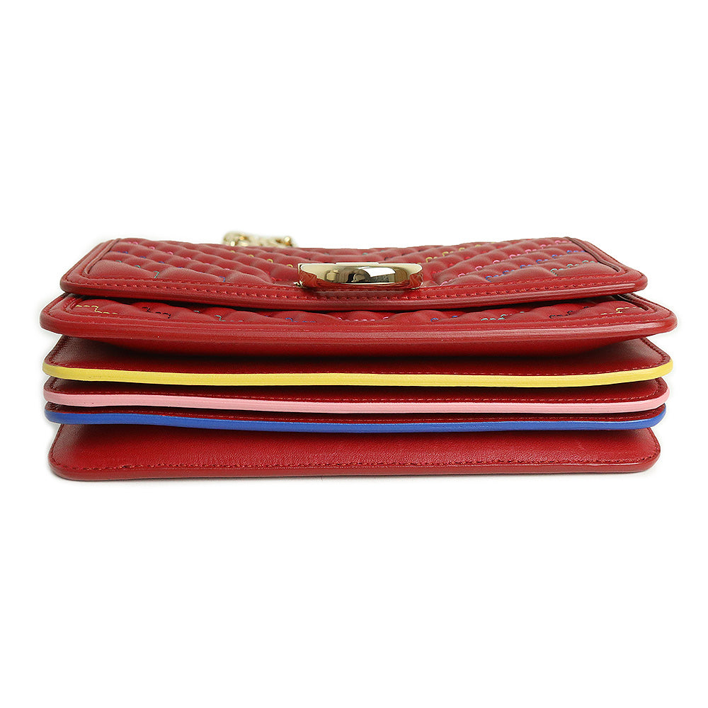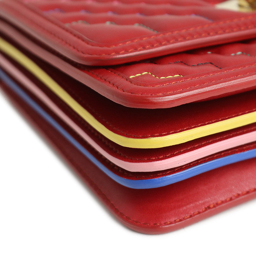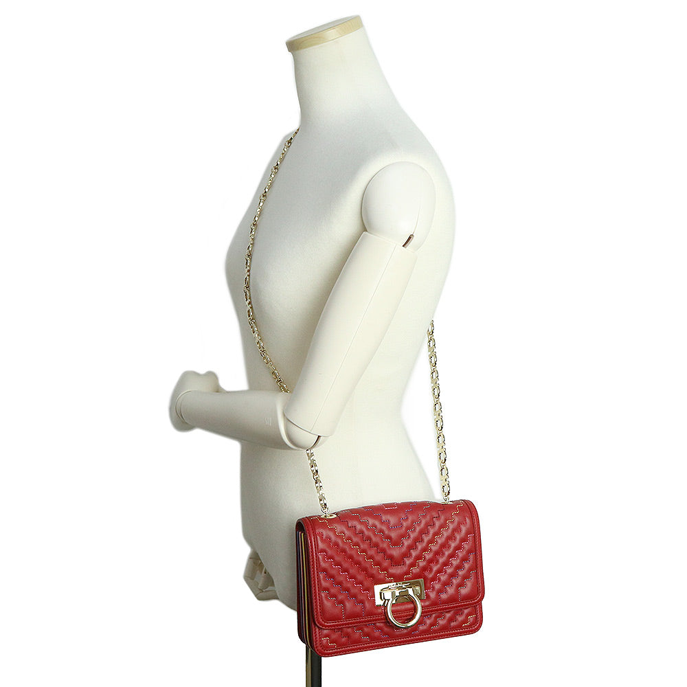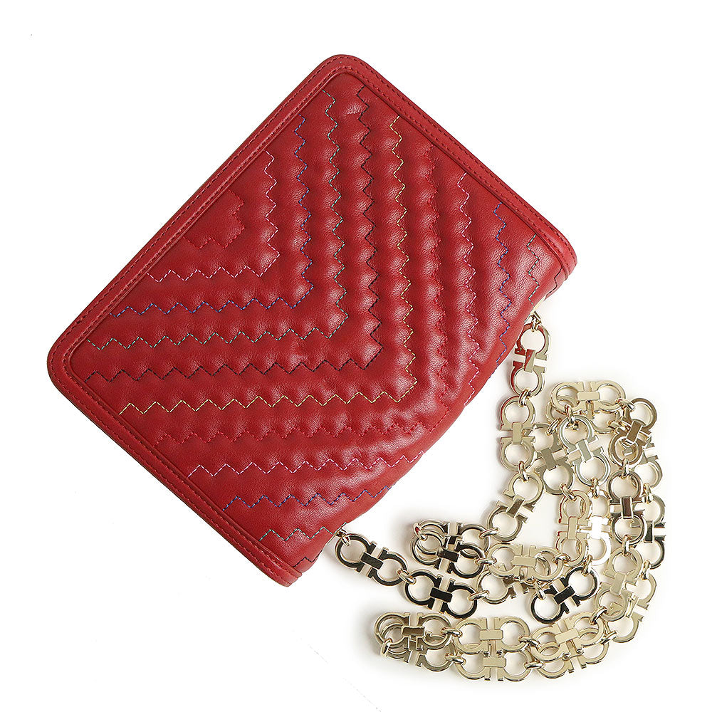 这款 Salvatore Ferragamo 链条包采用色彩鲜艳的设计,会吸引您的眼球并成为您服装的焦点。