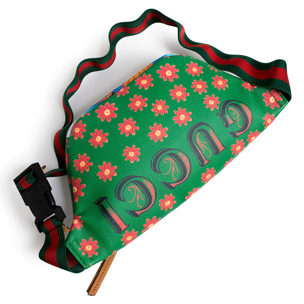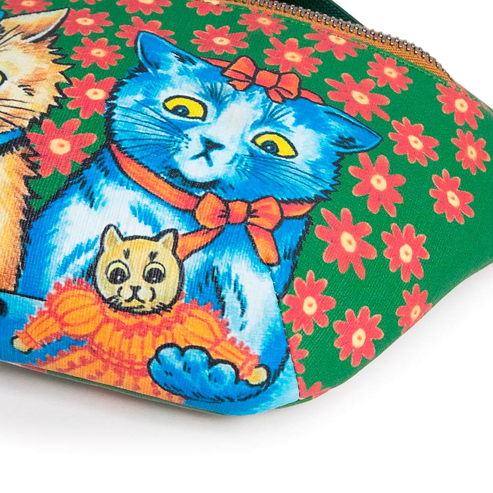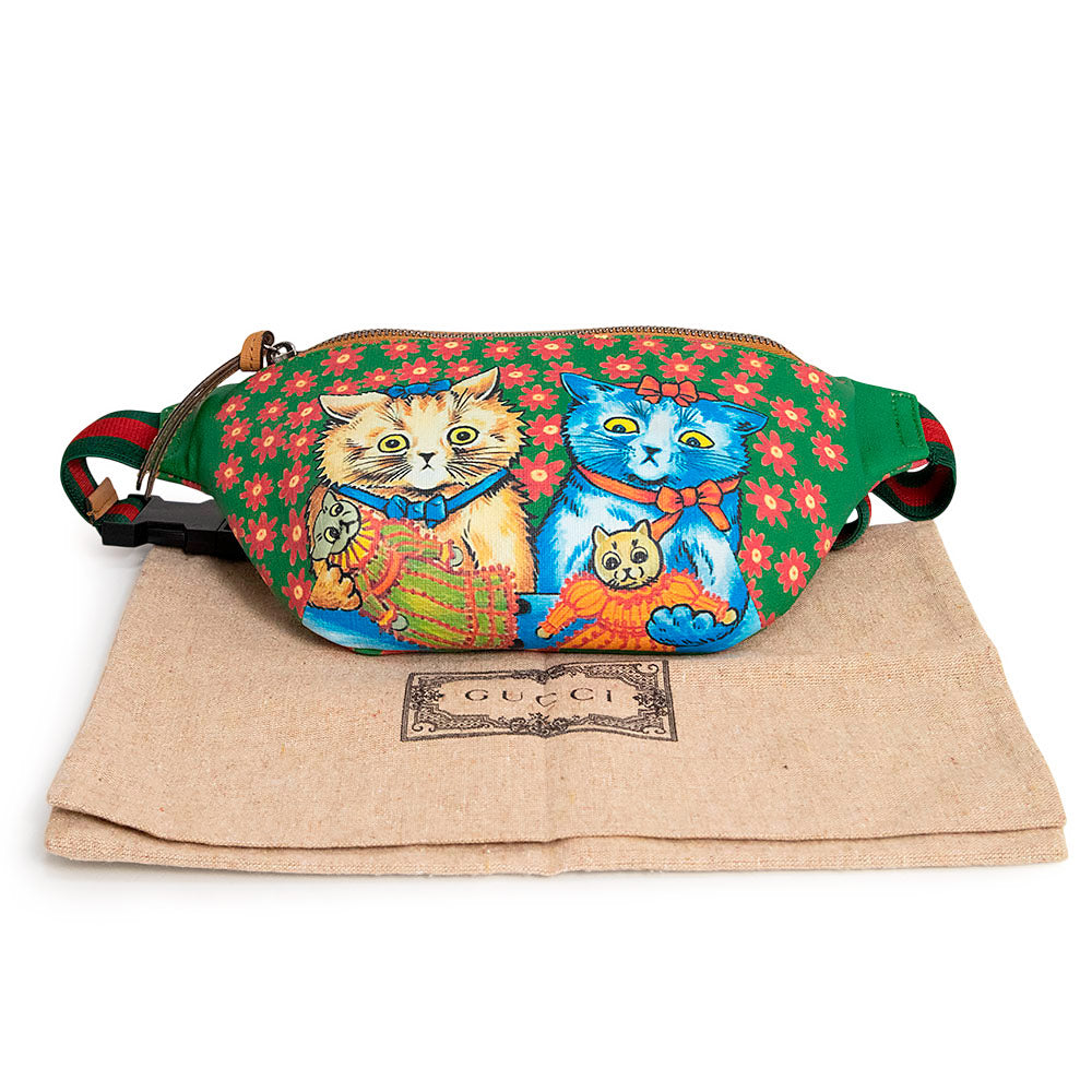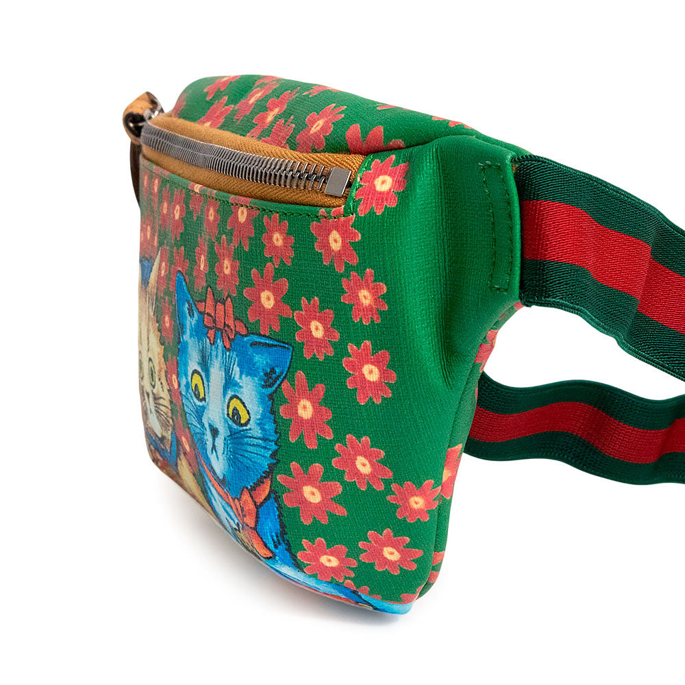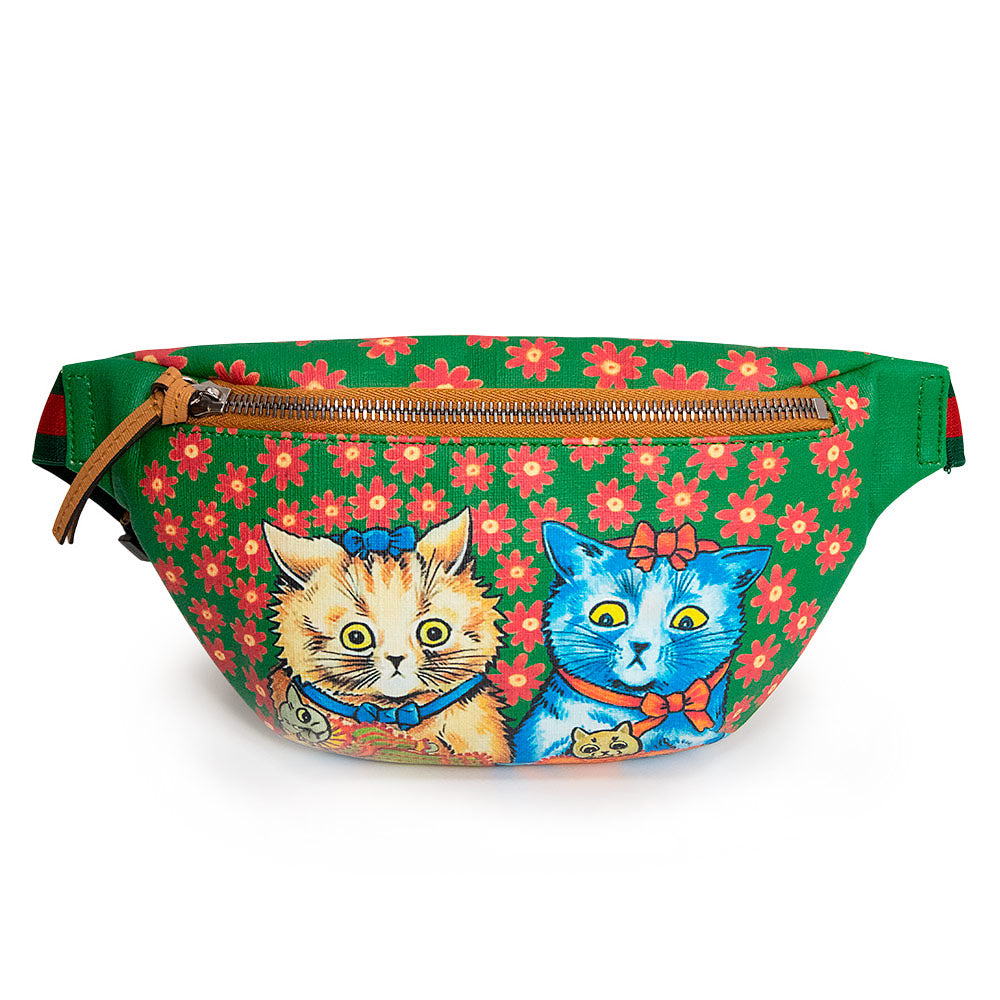 这款来自 Gucci 童装系列的腰包饰有与 Louis Wain 合作创作的插画。超现实主义风格的猫咪图案令这款包包令人过目难忘。 |