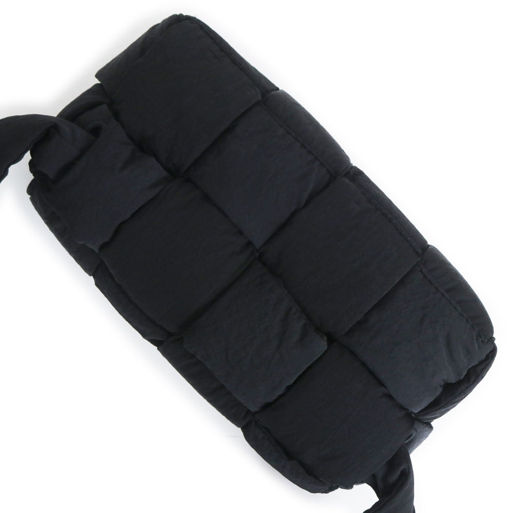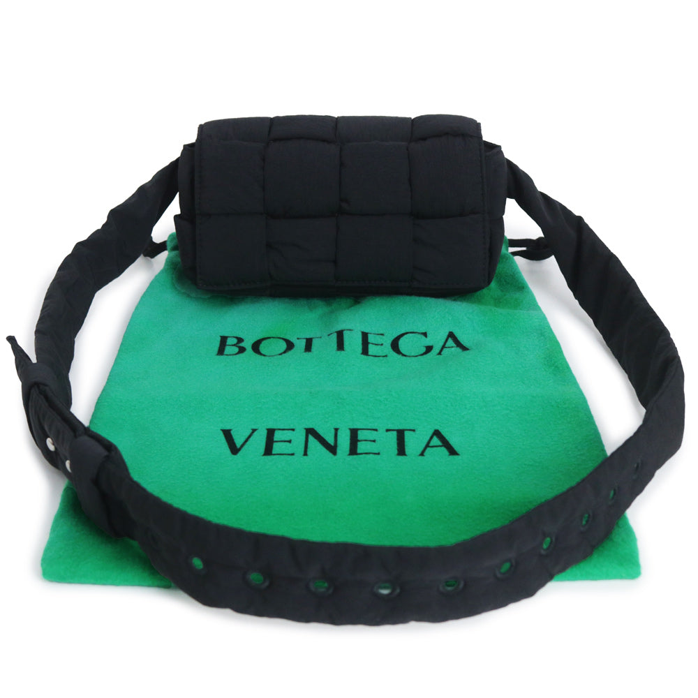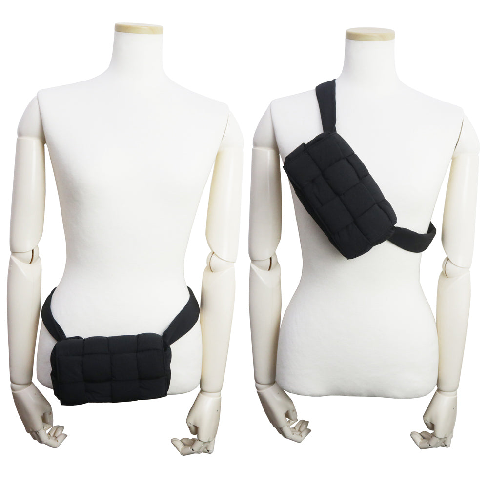 【全新展示品】BOTTEGA VENETA 679763 Maxi Intrecciato 黑色聚酰胺编织软垫科技卡带包,可作腰包、单肩包、斜挎包、单肩包使用,哑光银色五金配件