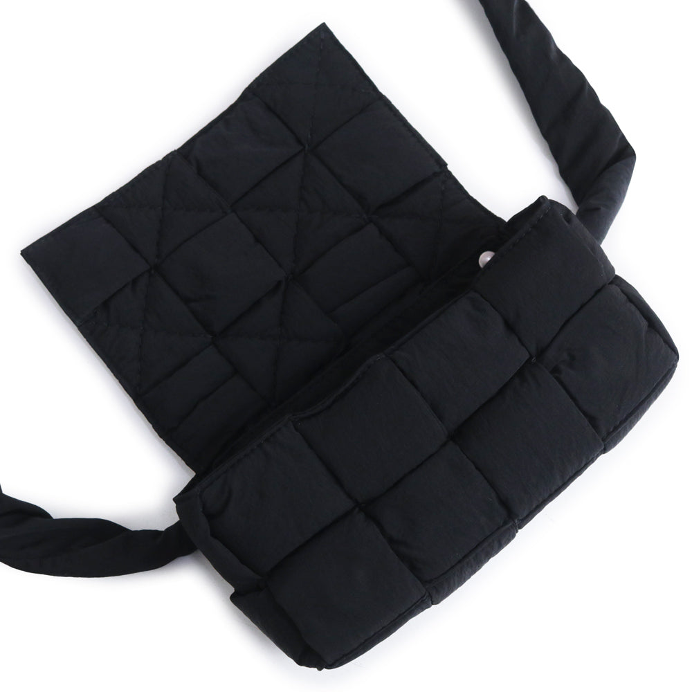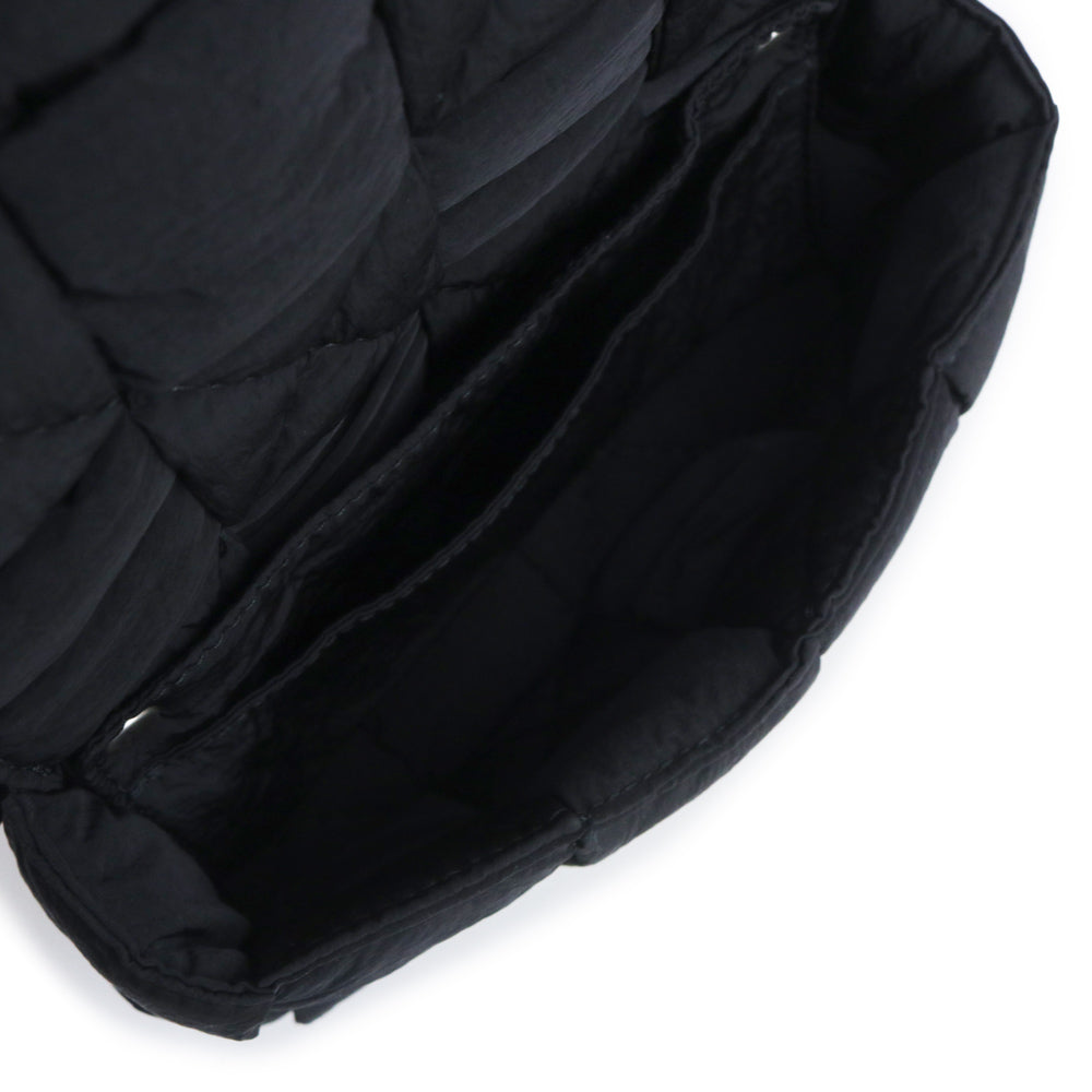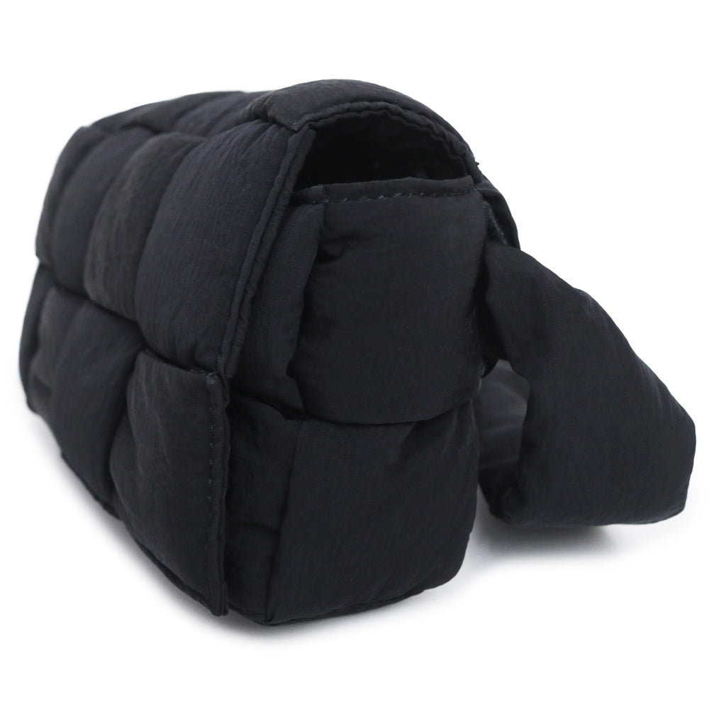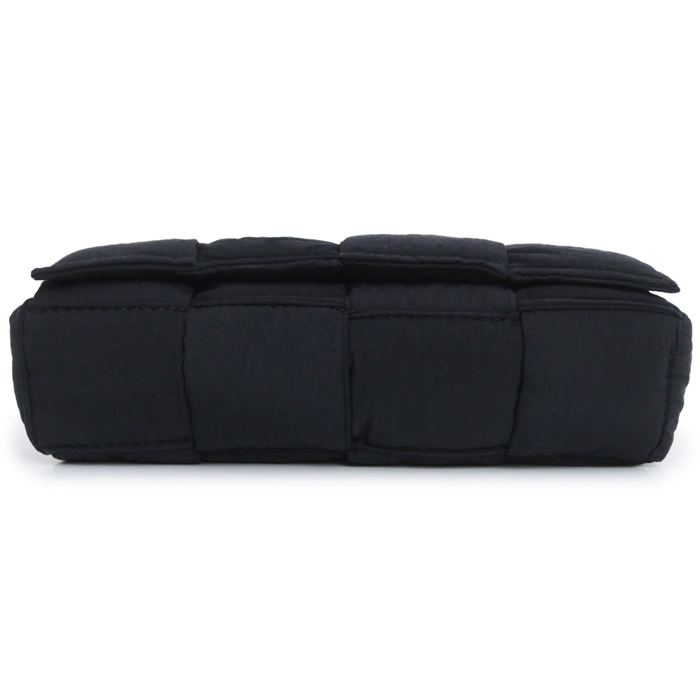 【全新展示品】BOTTEGA VENETA 679763 Maxi Intrecciato 黑色聚酰胺编织软垫科技卡带包,可作腰包、单肩包、斜挎包、单肩包使用,哑光银色五金配件