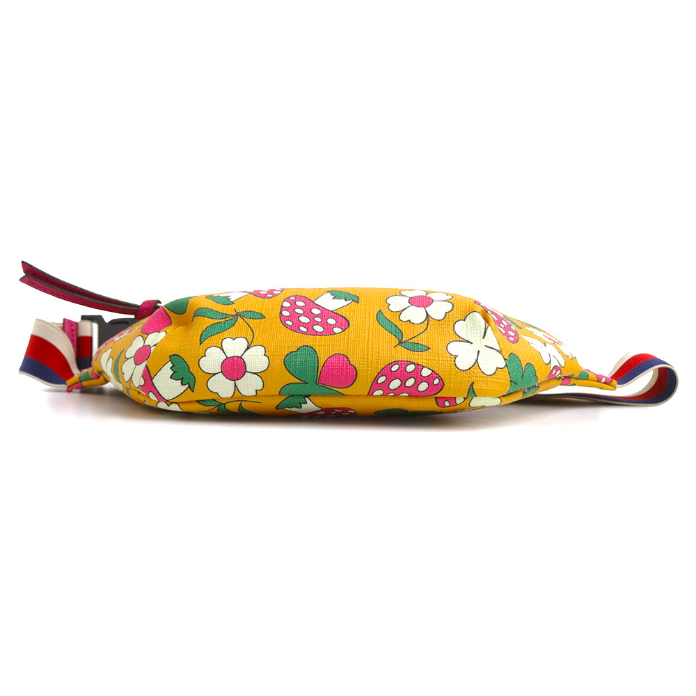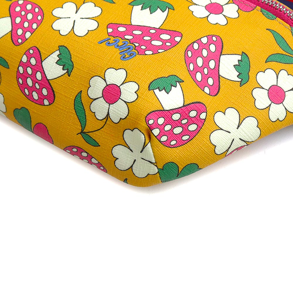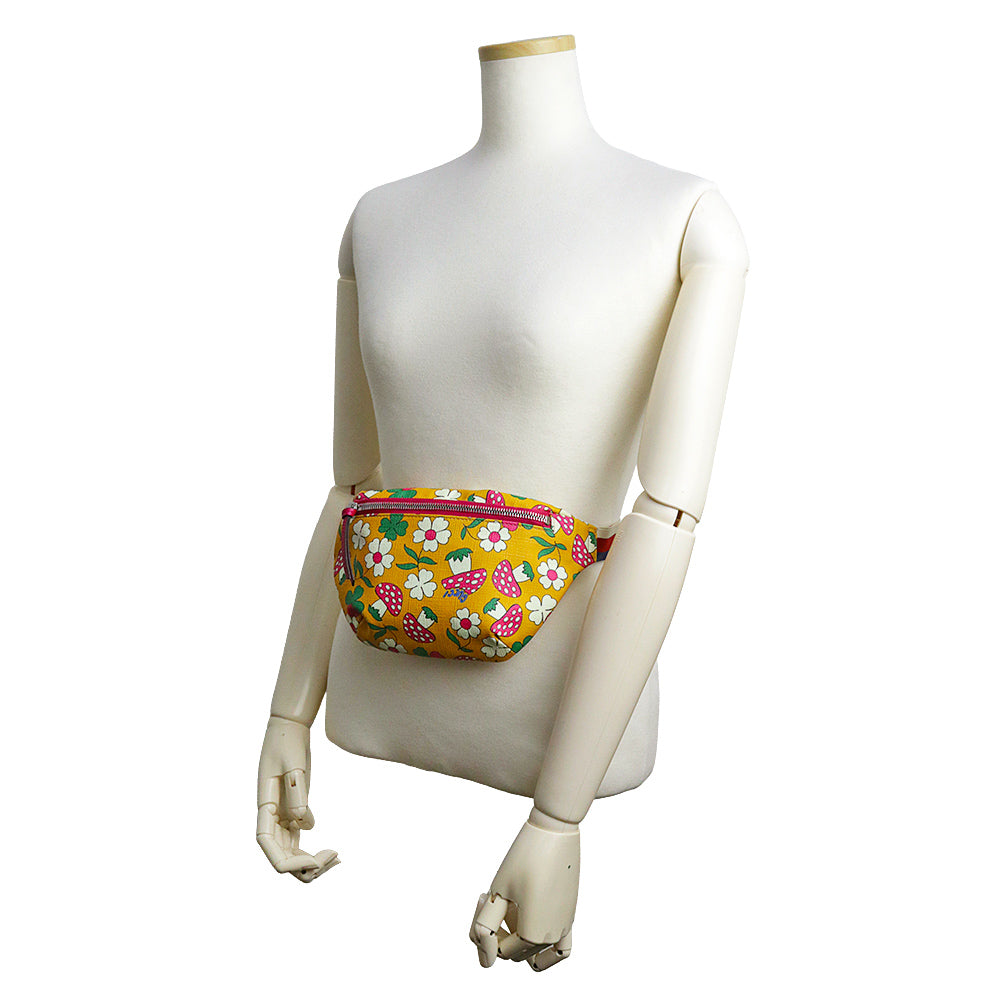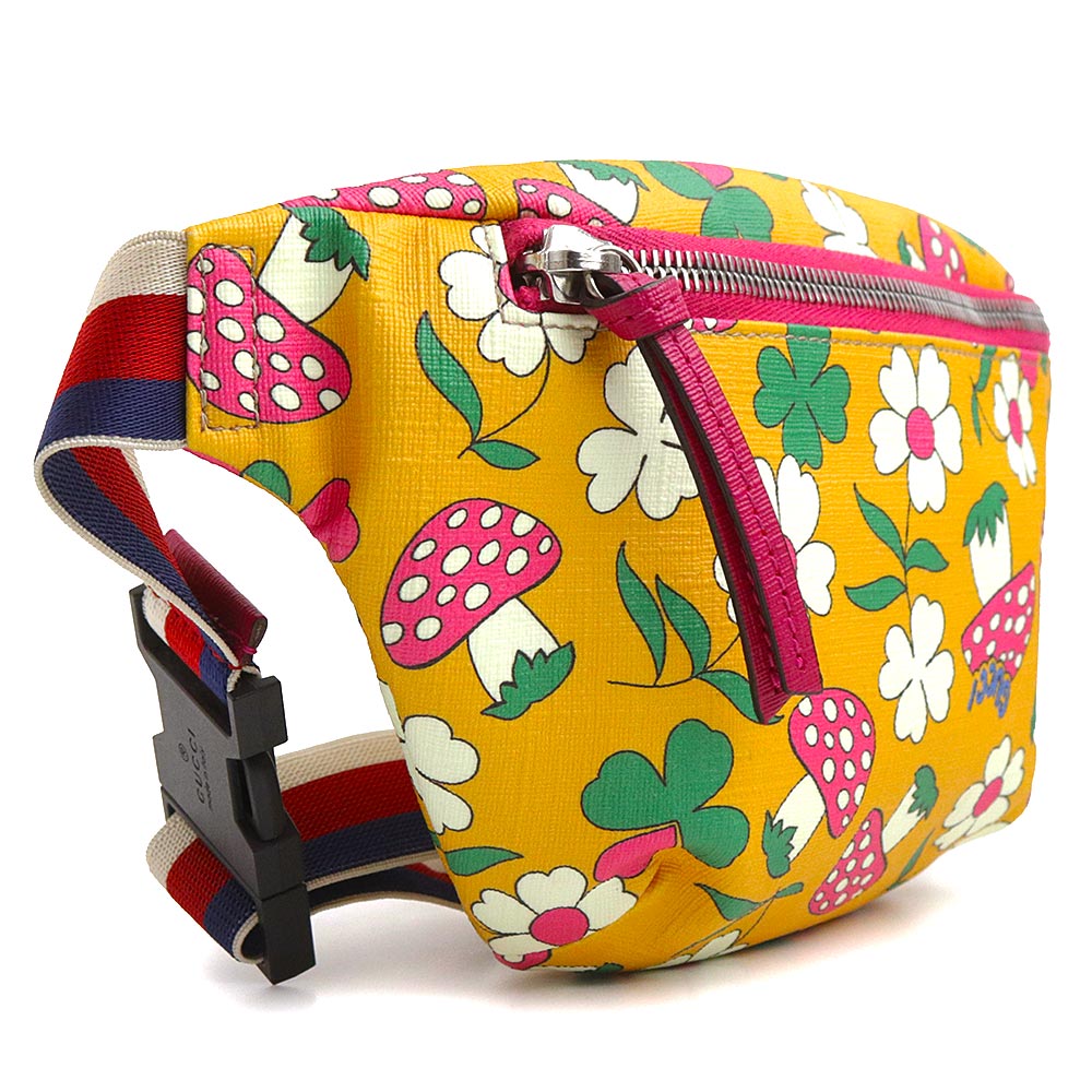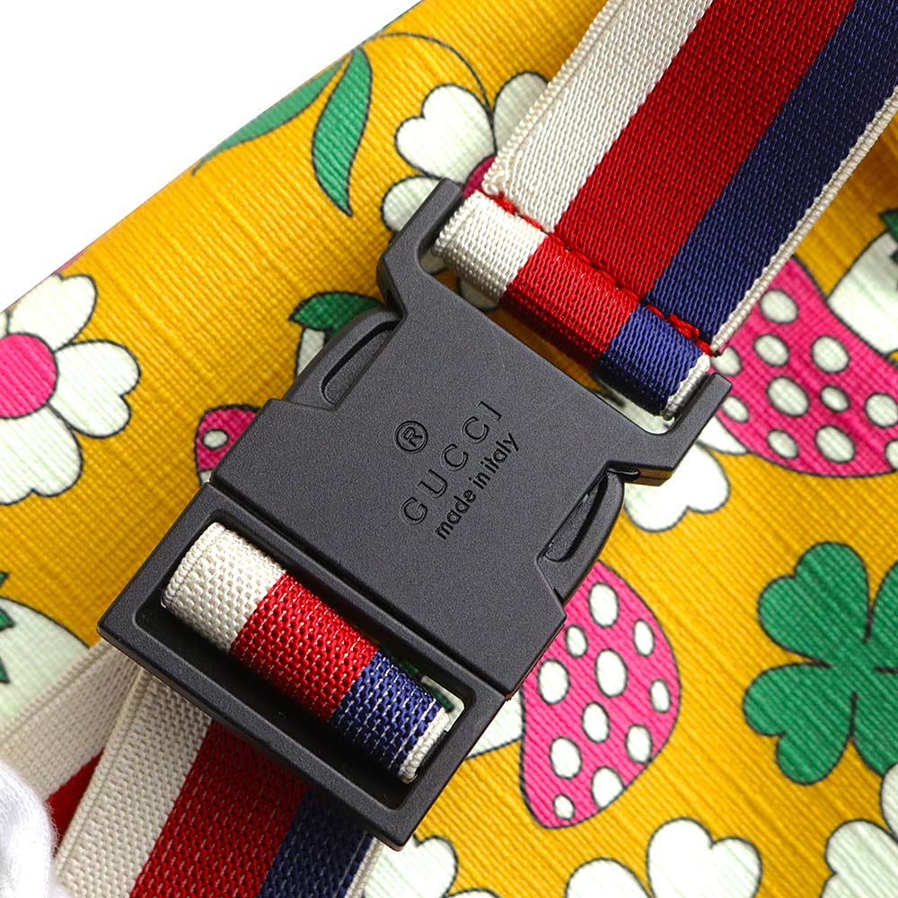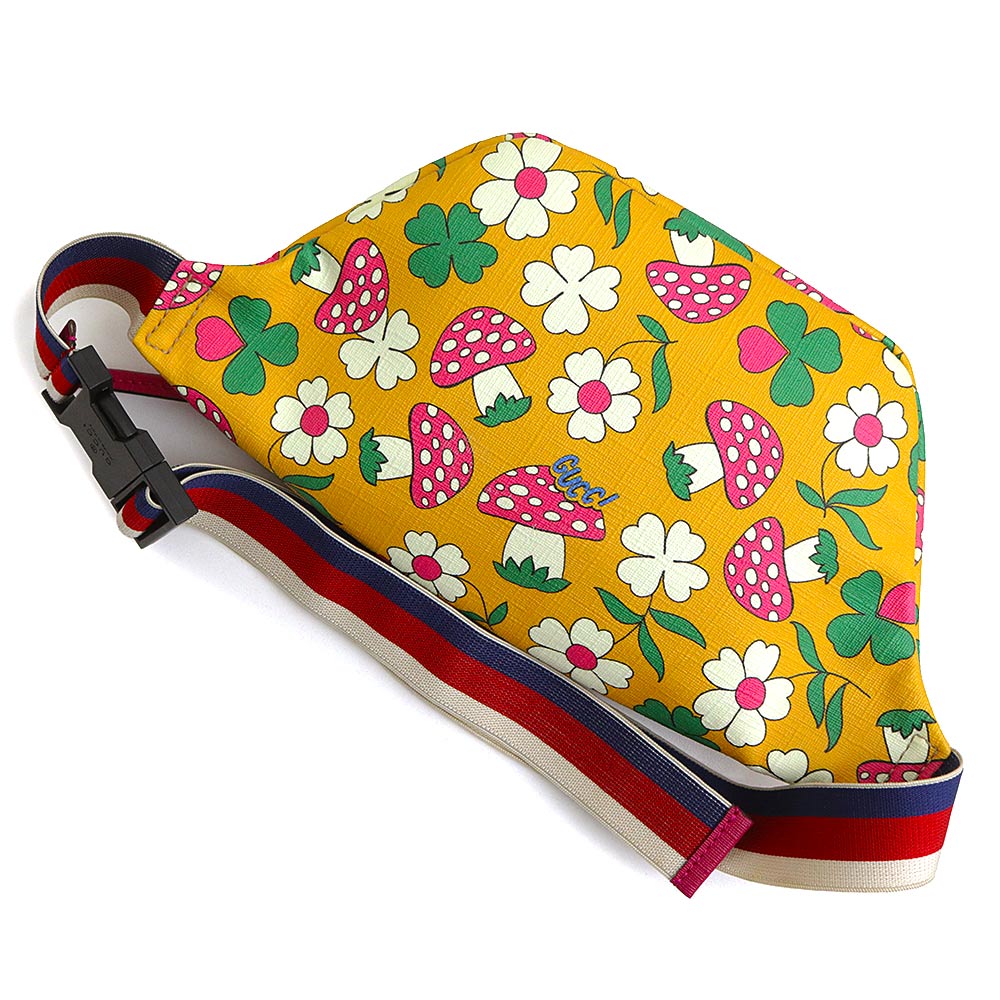 【全新展示品】GUCCI 502095 儿童蘑菇花 GG Supreme 帆布黄色多色腰包,配银色五金配件