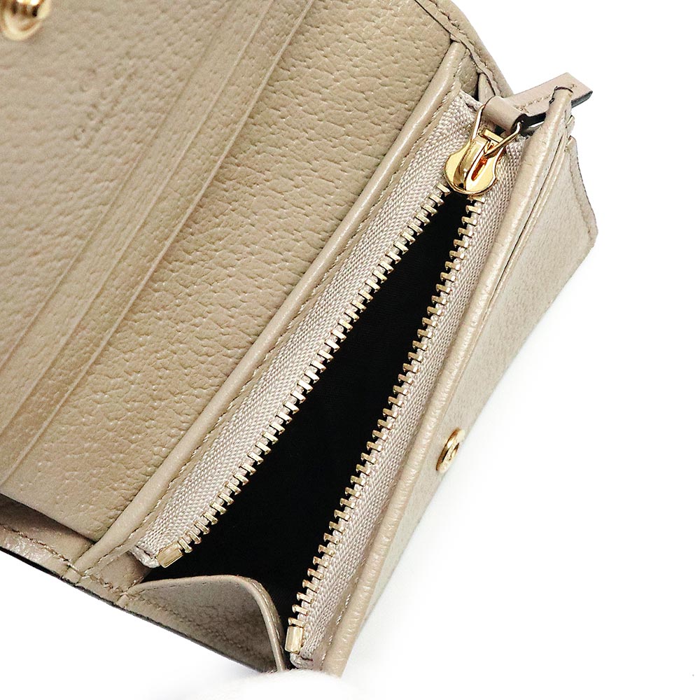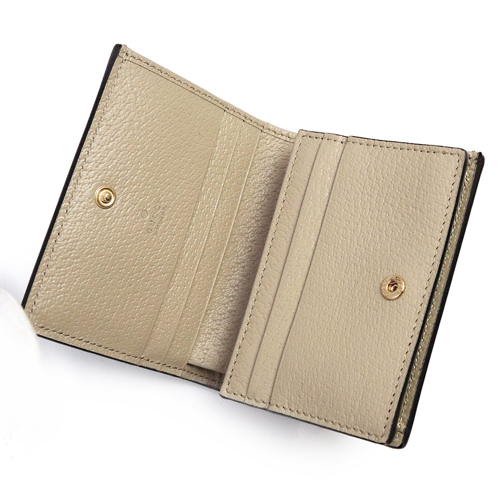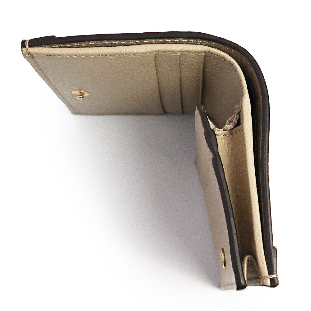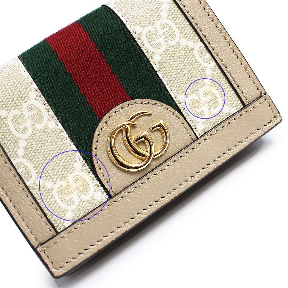 [未使用展示品] Gucci Ophidia GG 卡片夹,紧凑型双折钱包,GG 高级帆布和小牛皮,米白色配金色五金配件,523155,带盒子