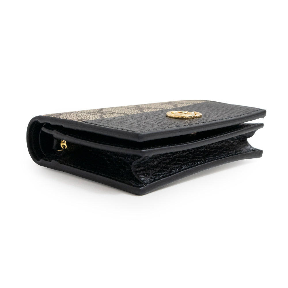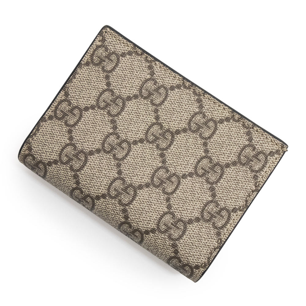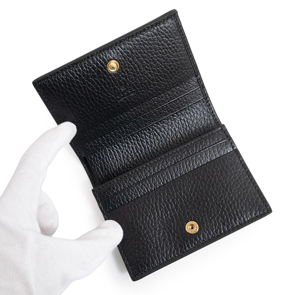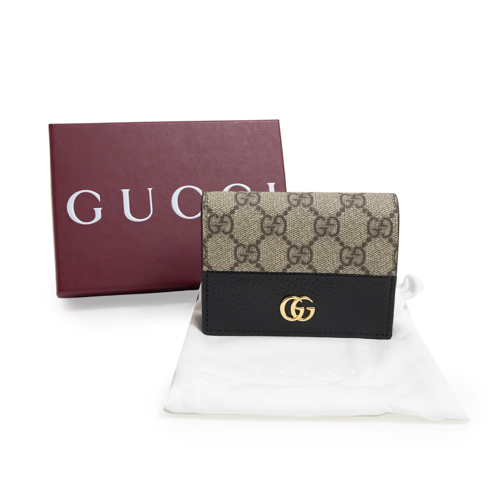 [全新,未使用] Gucci 双 G 卡片夹钱包,紧凑型双折钱包,GG 高级帆布,皮革,黑色,米色,金色五金配件,658610,含盒子