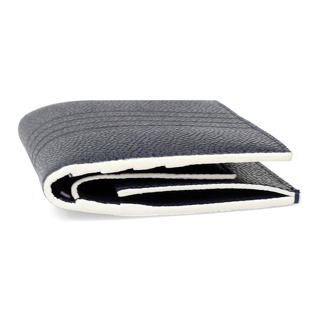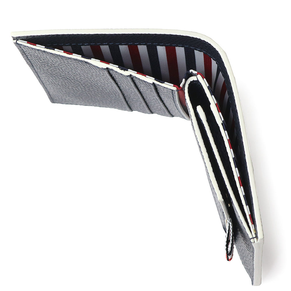 这是一款简洁小巧、易于使用的钱包。内衬面料为红、蓝、白三色条纹。