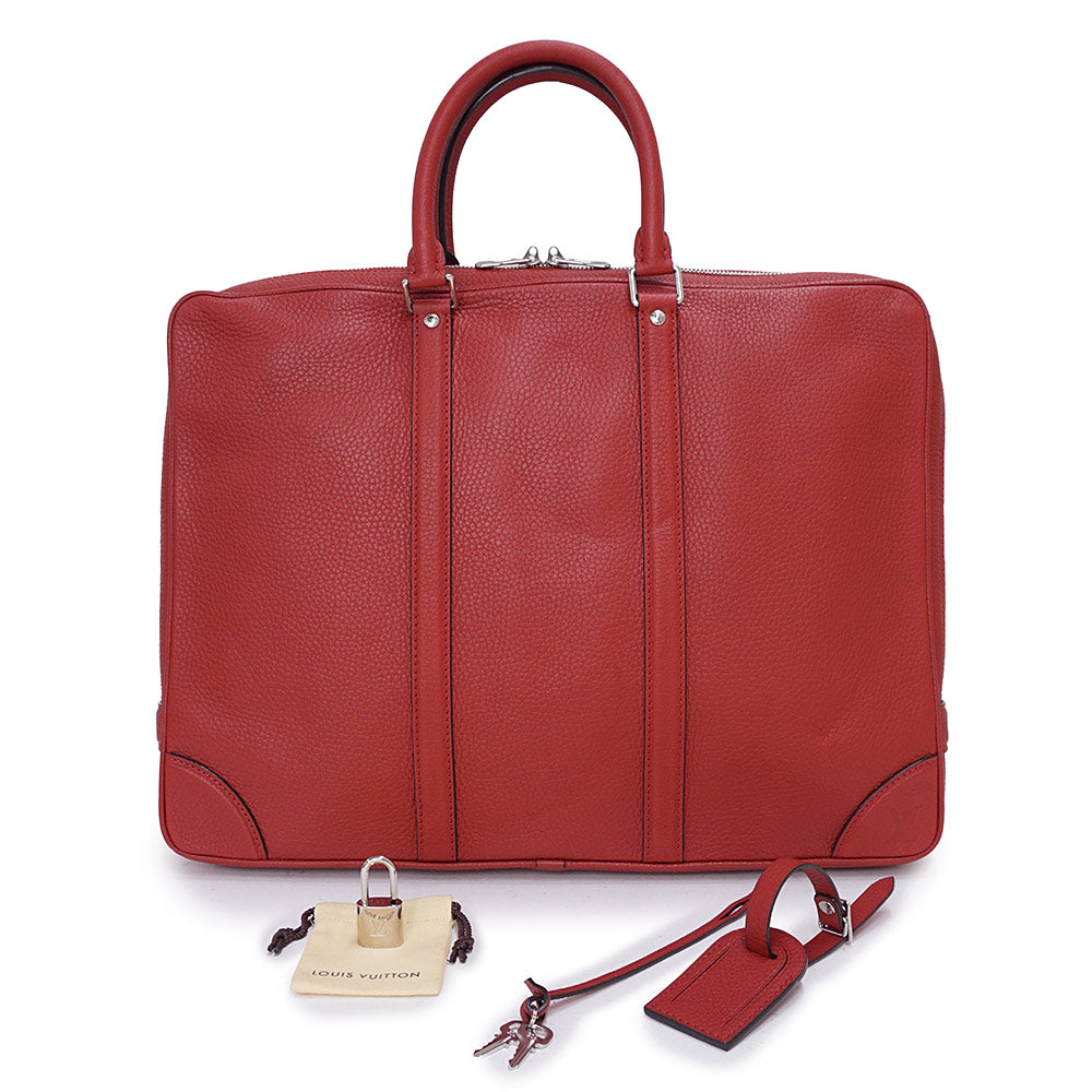二手 Louis Vuitton PDV Porte-Document Voyage 公文包,商务手提包,Taurillon 皮革,红色,银色五金配件