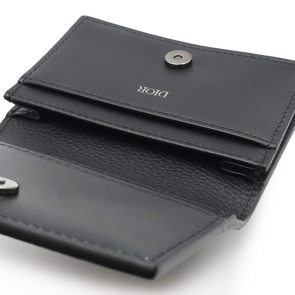 这款名片夹兼具实用功能与精致设计。采用粒面小牛皮制成,正面饰有 CD 标志,翻盖上设有两个卡位,角撑隔层内也设有一个卡位。这款名片夹可轻松放入任何口袋或包袋。