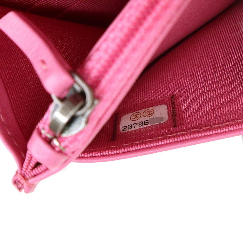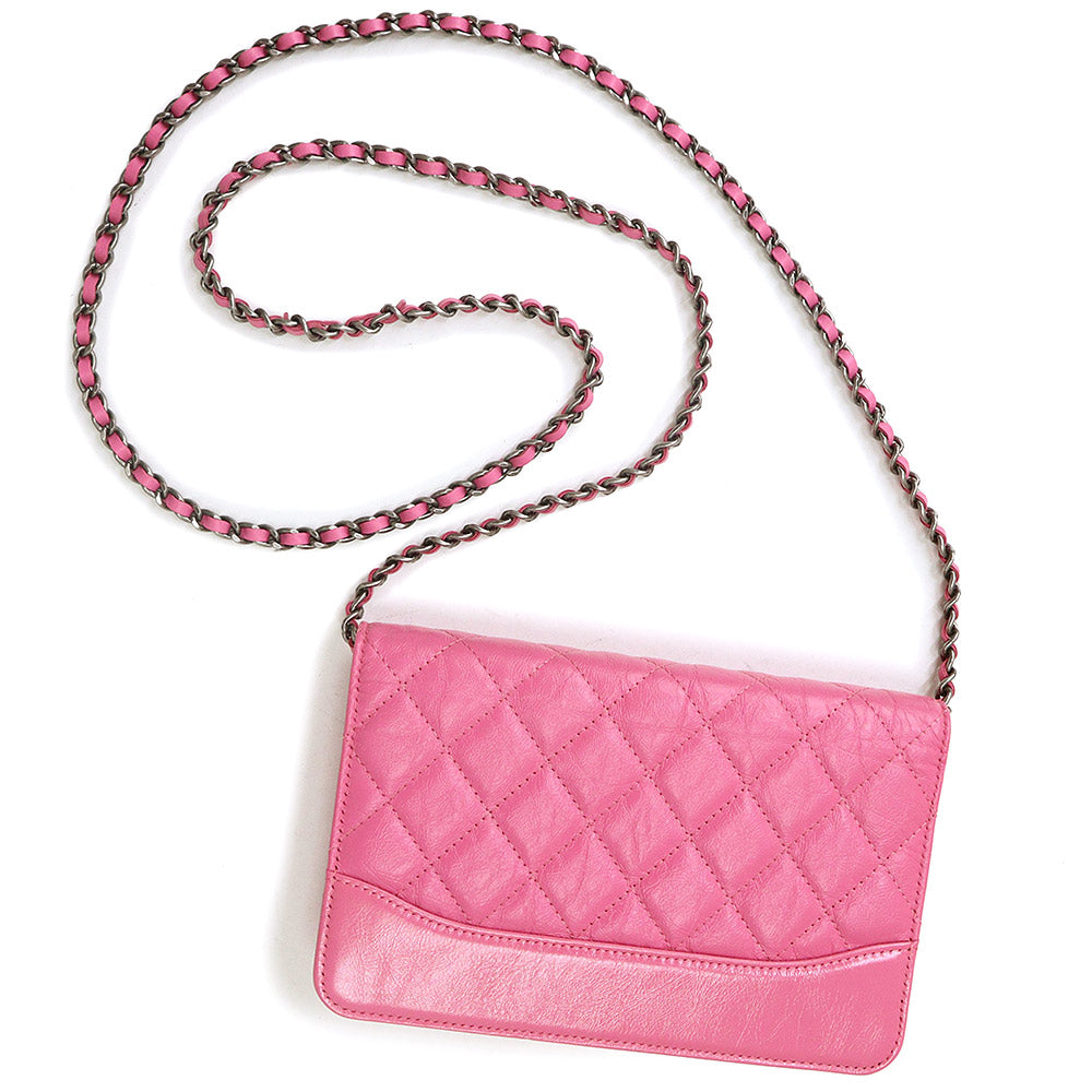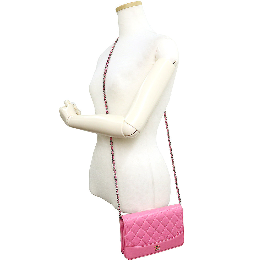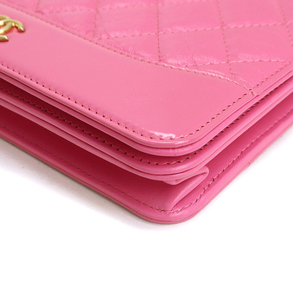 [未使用展品] CHANEL Gabriel de Matelasse 链条钱包 单肩包 斜挎包 小牛皮 皮革 粉色 古董 金色 银扣 A84389