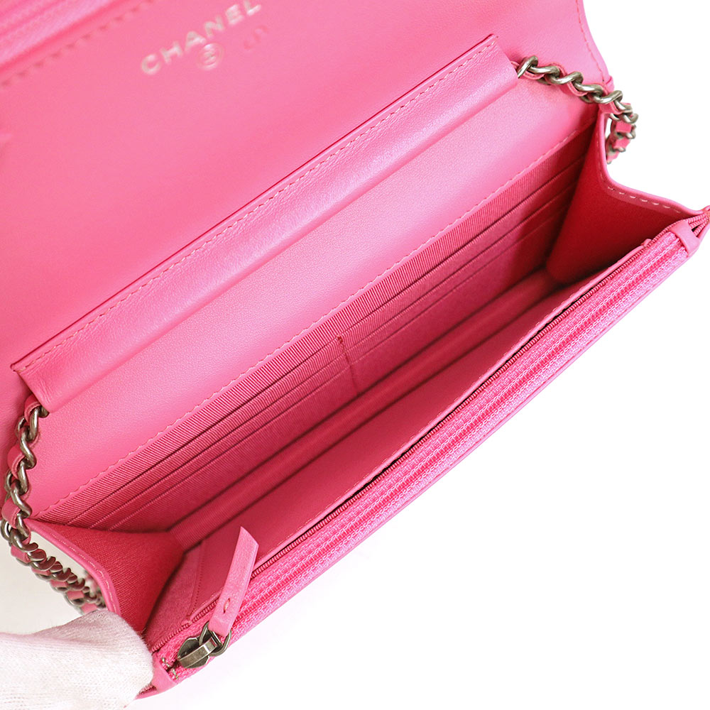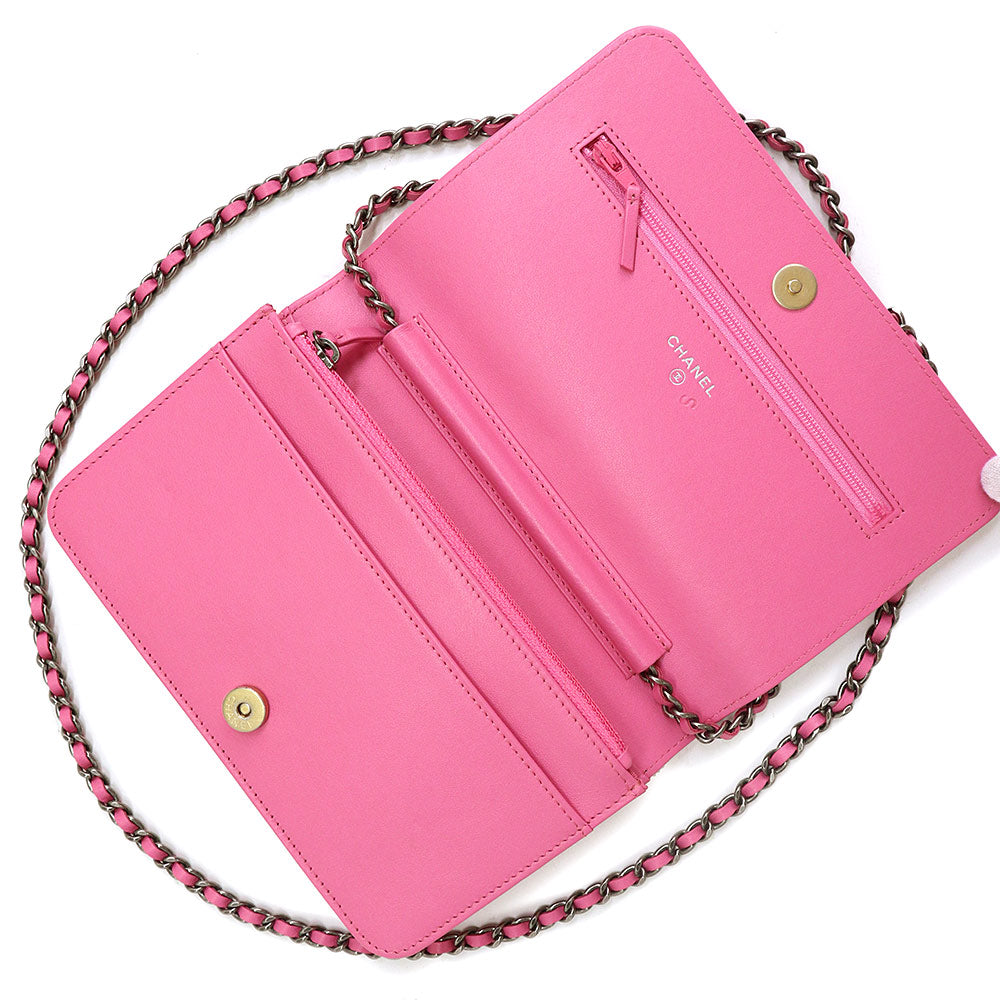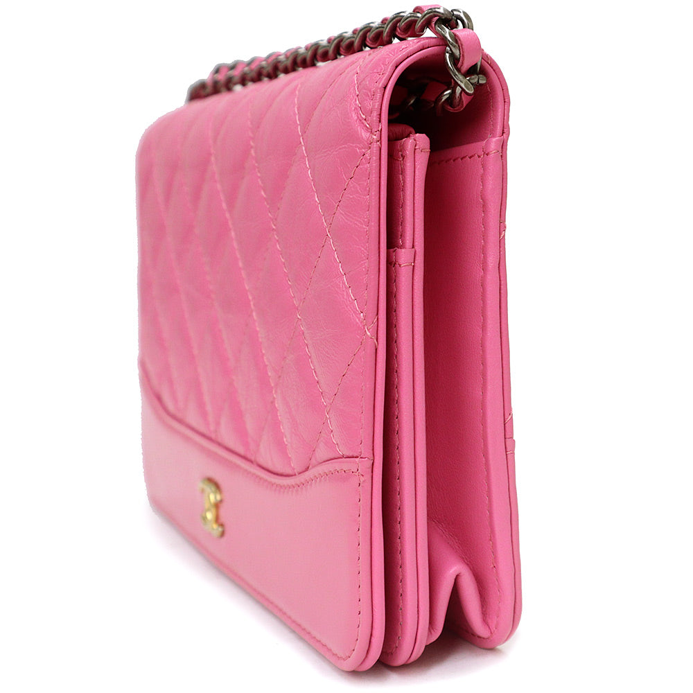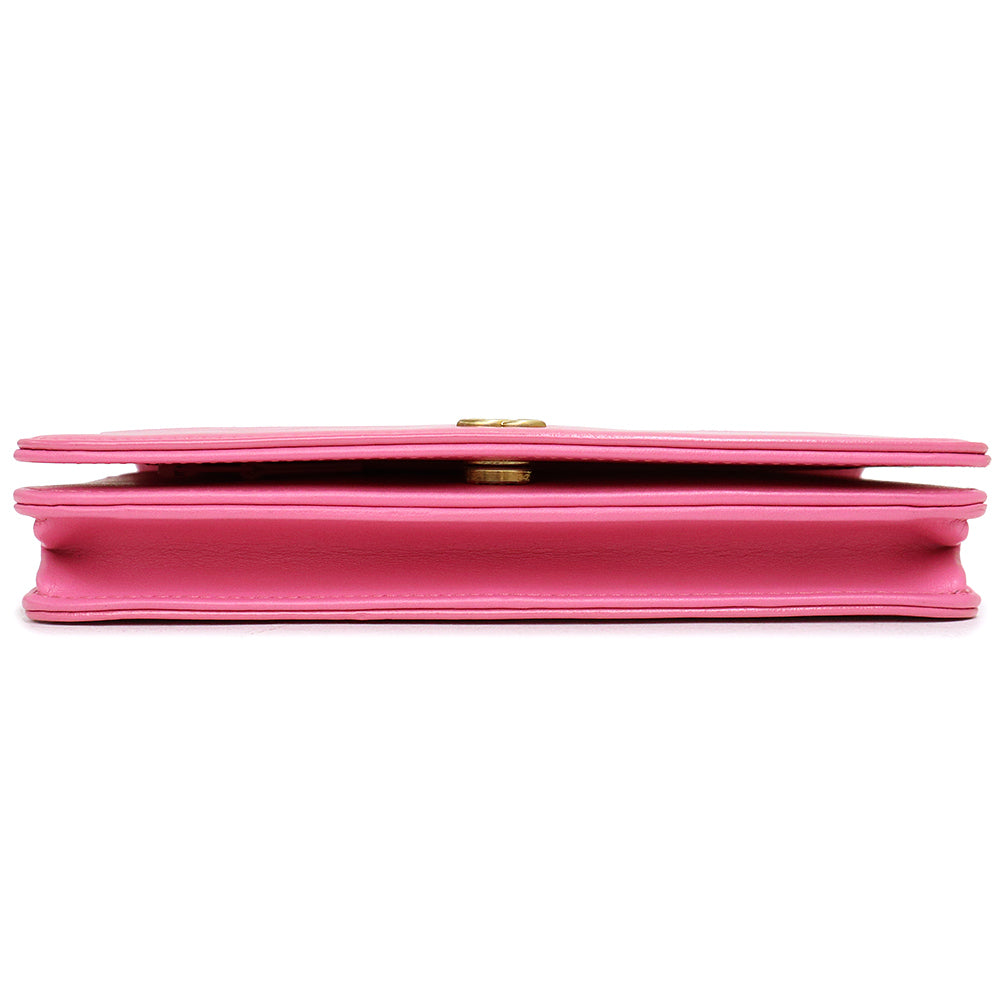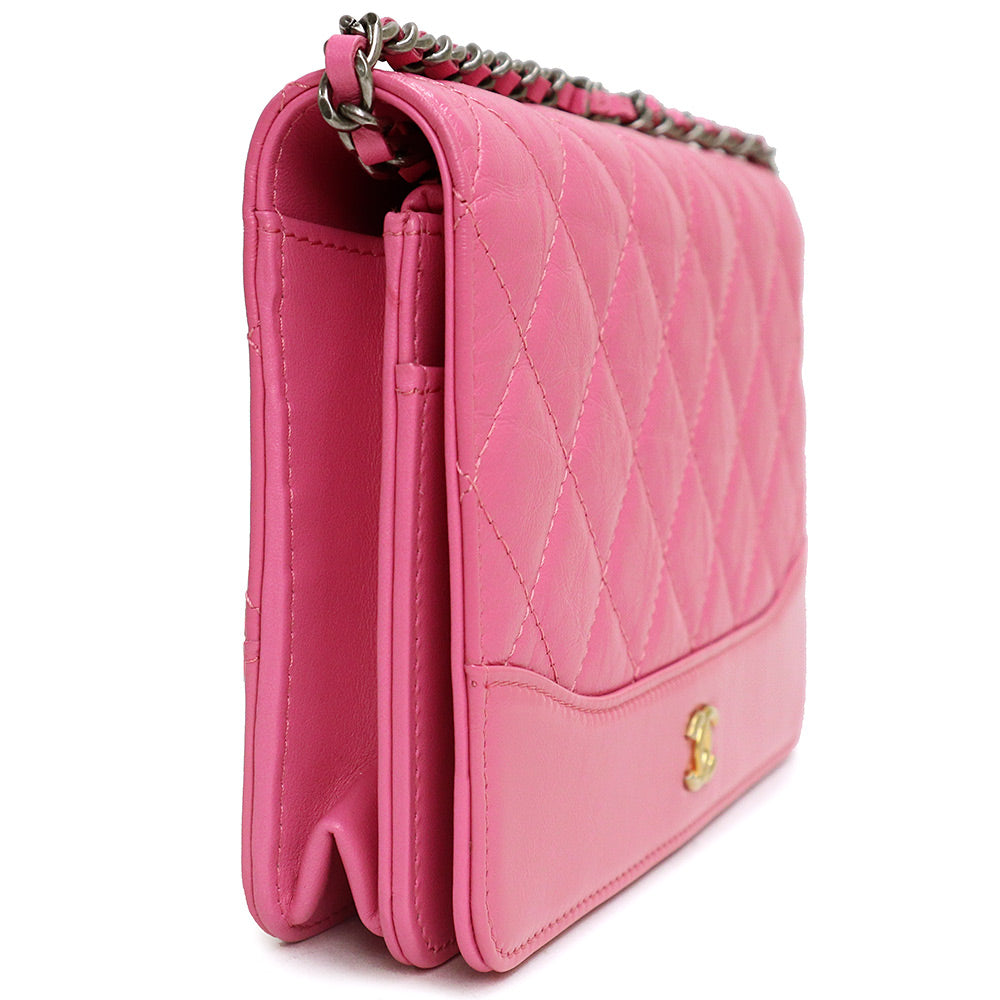 [未使用展品] CHANEL Gabriel de Matelasse 链条钱包 单肩包 斜挎包 小牛皮 皮革 粉色 古董 金色 银扣 A84389