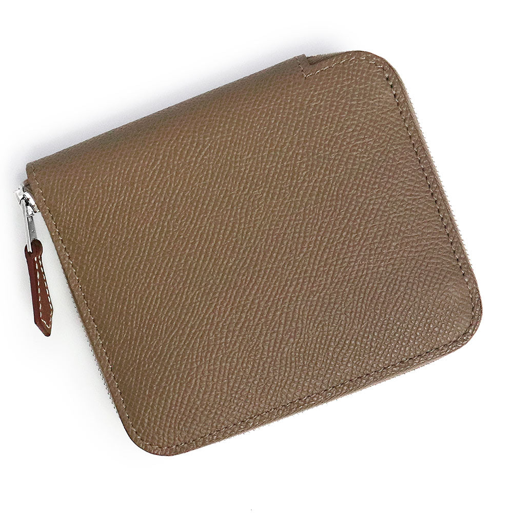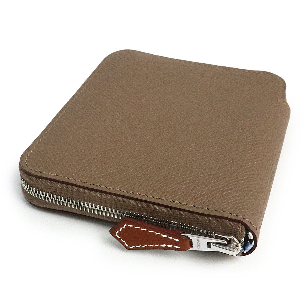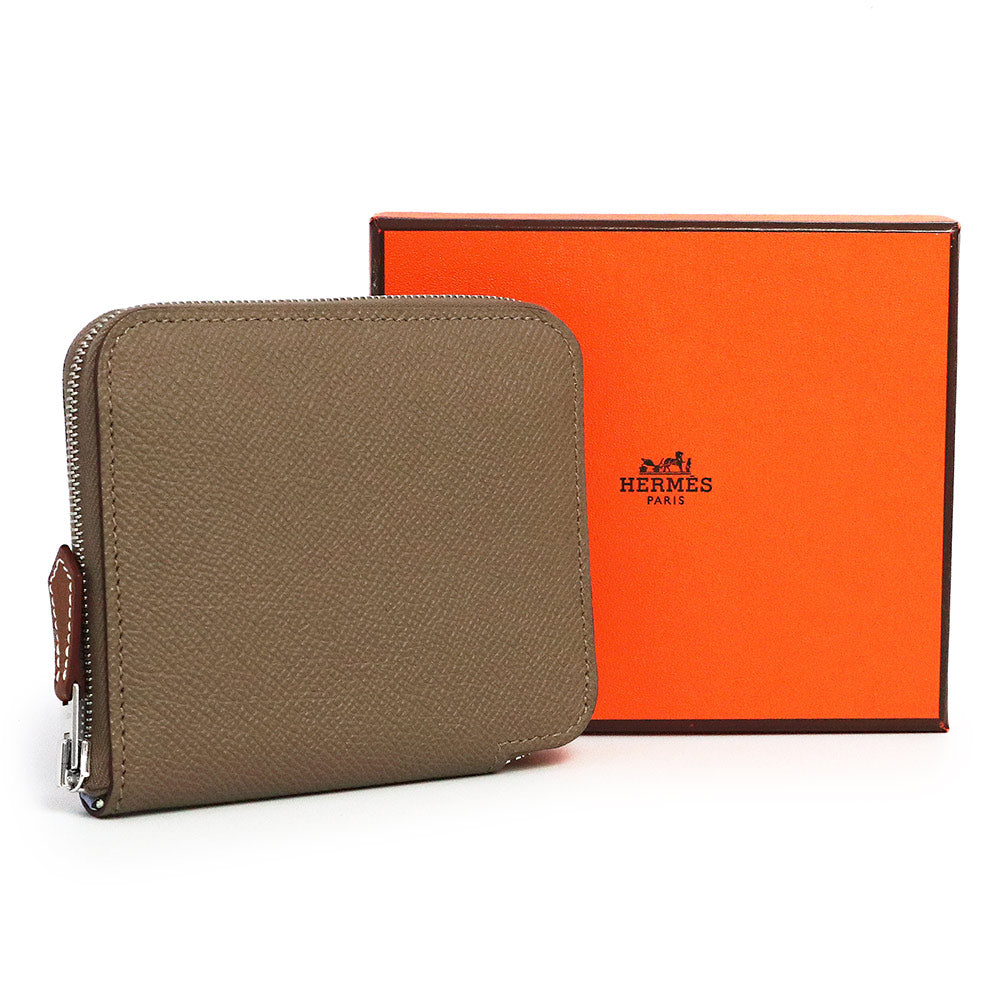 [全新,未使用] Hermès Azap Compact Silk-in EN LIBERTE 零钱包/钱包,Epsom 皮革,象牙色、黑醋栗色、灰褐色,银色金属配件,双印章,含包装盒