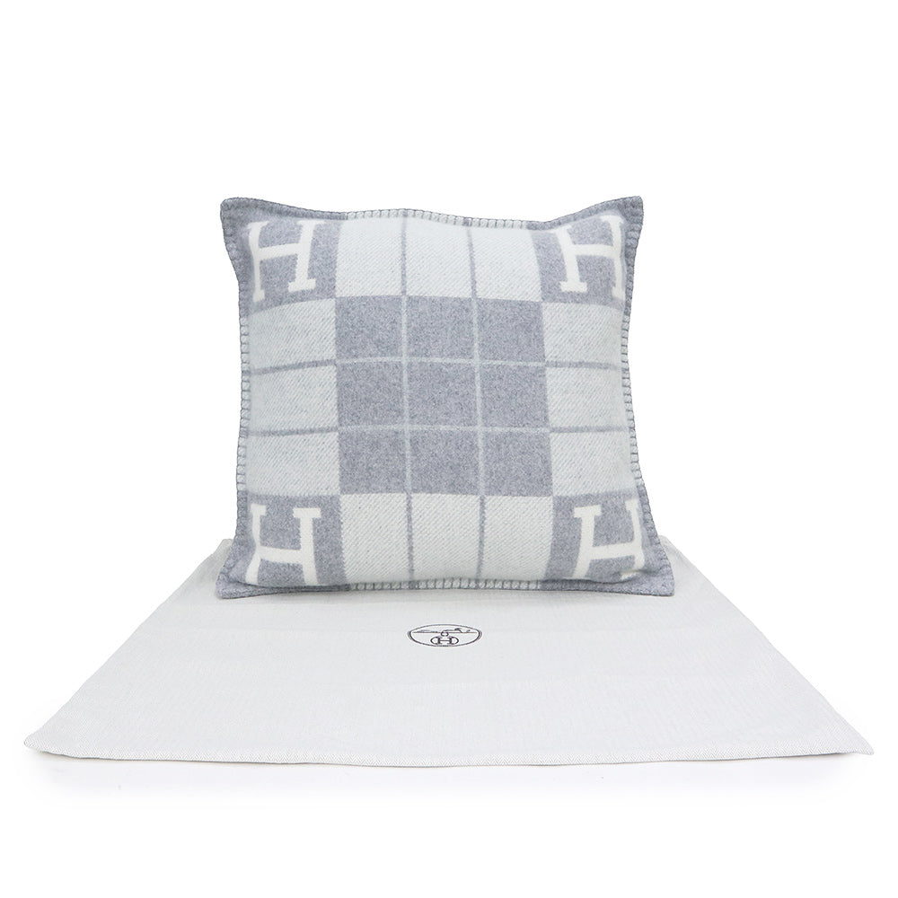 [状况极佳] Hermès Avalon III PM 靠垫,90% 美利奴羊毛,10% 羊绒,Ecru Gris Clair,灰色