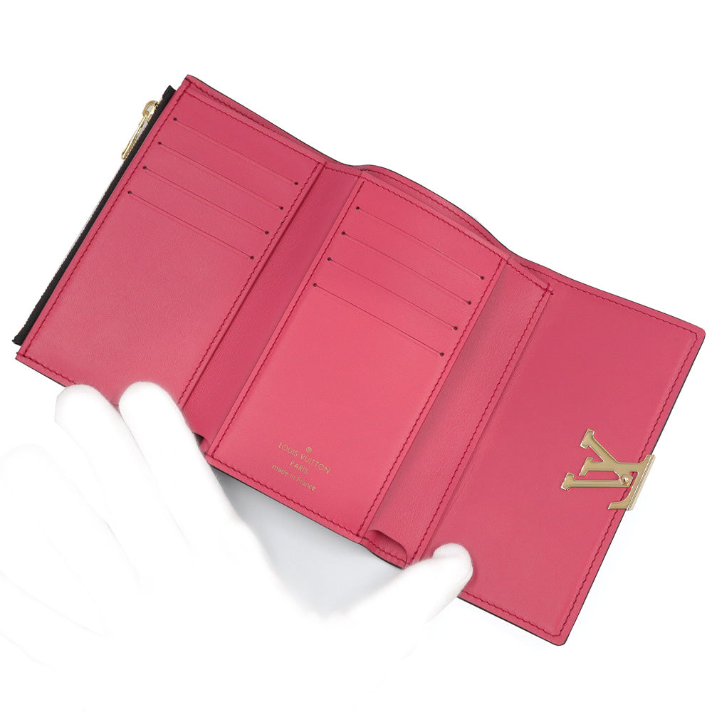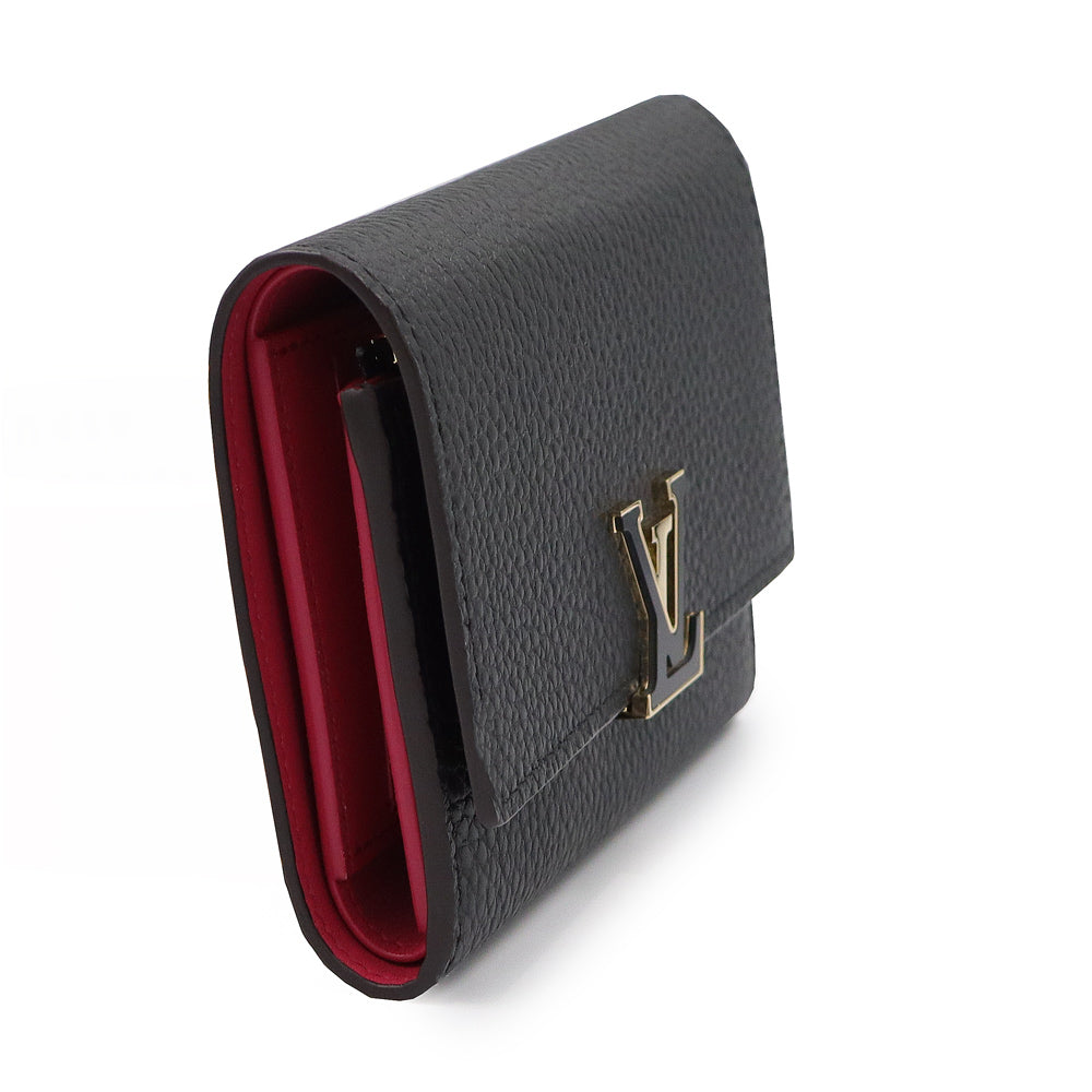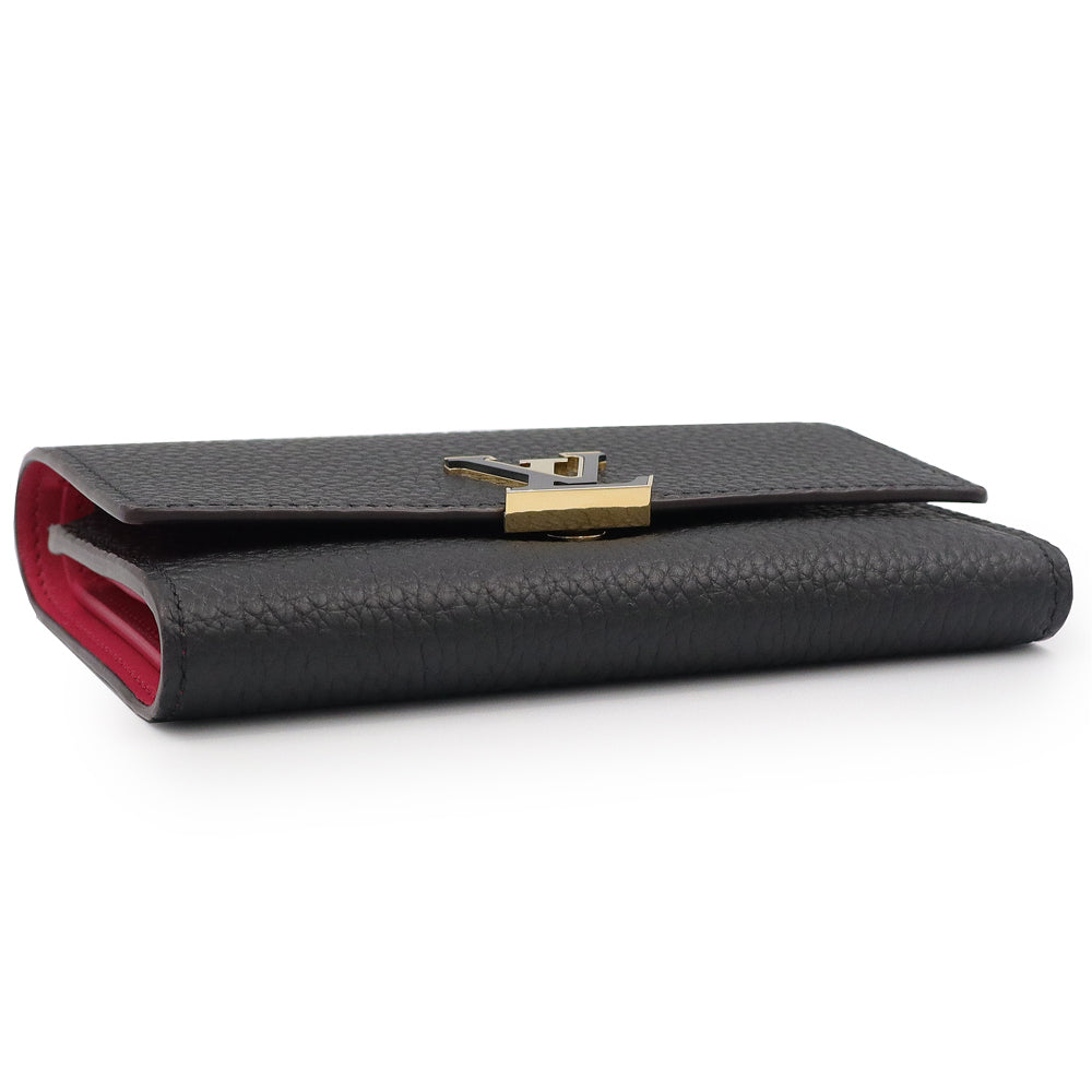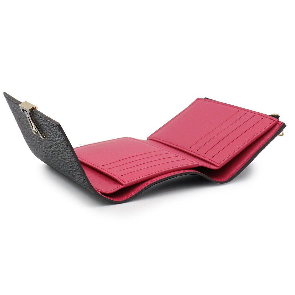 [全新,未使用] Louis Vuitton Portefeuille Capucines 紧凑型三折钱包,采用 Taurillon 皮革,黑色和亮粉色,配金色五金配件,M62157,带盒子