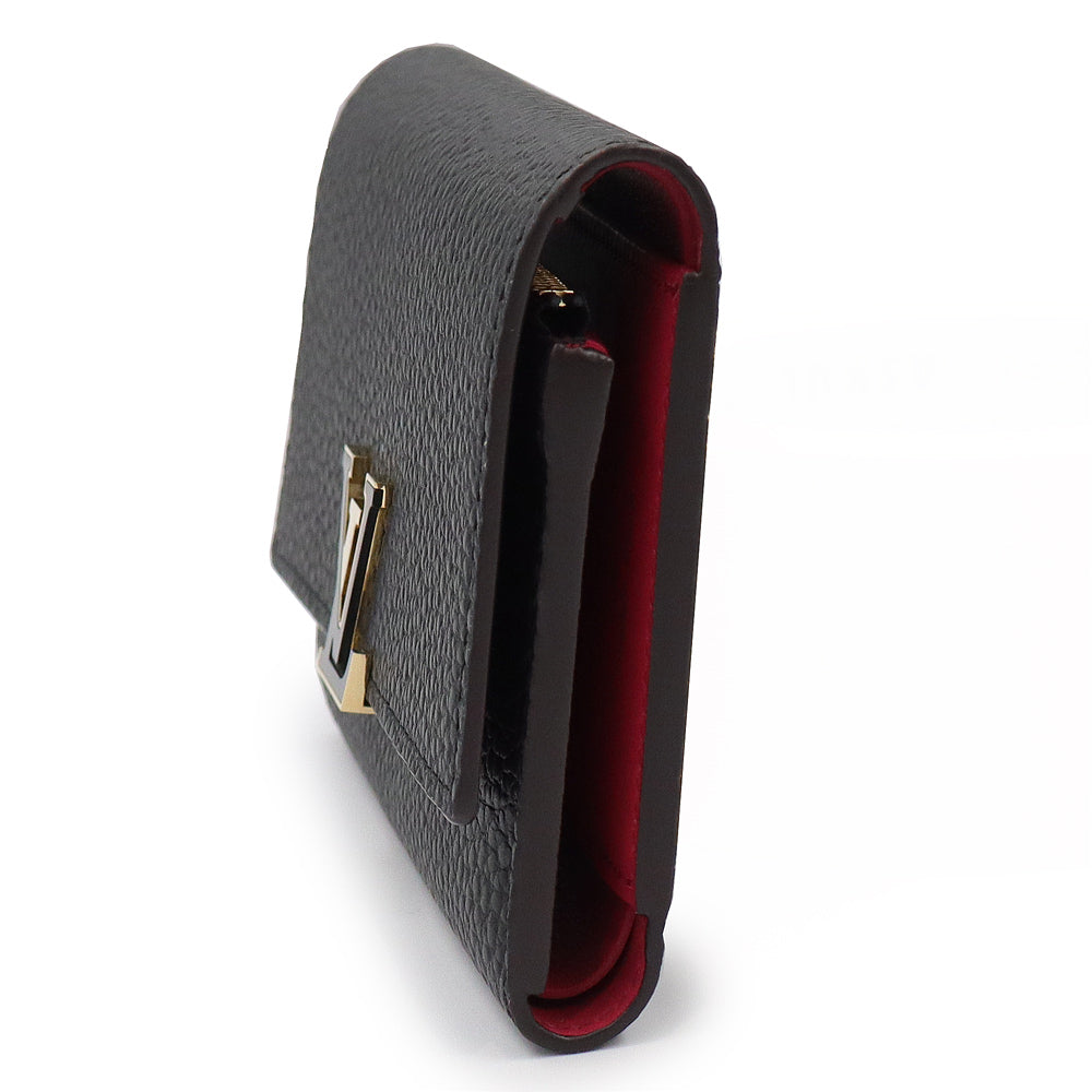Portefeuille Capucines Compact 采用柔软的 Taurillon 皮革精制而成。它能够收纳纸币、硬币、卡片、收据和其他物品,兼具美观与实用性,实用性极佳。尽管体积小巧,却能容纳大量日常必需品。 |