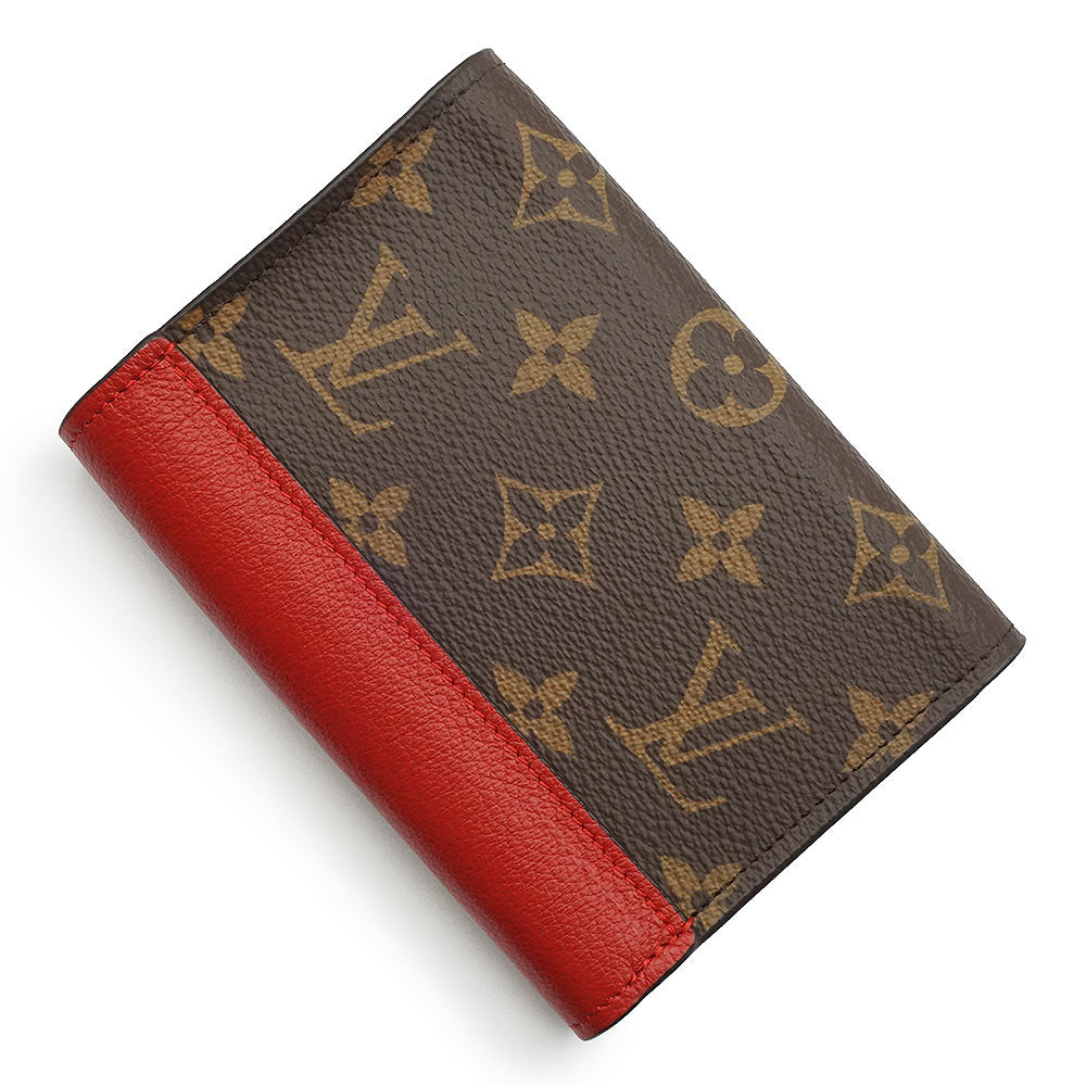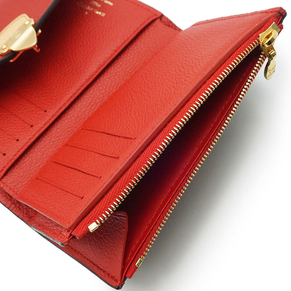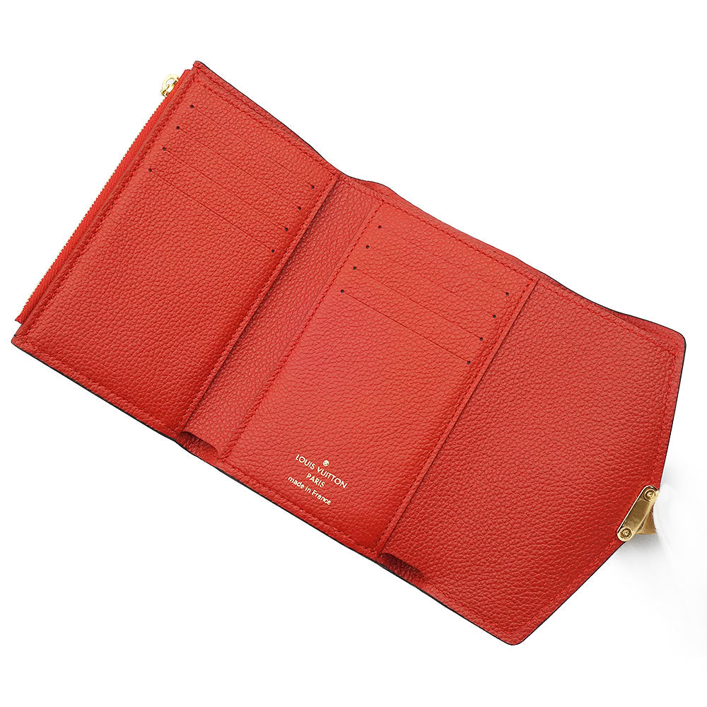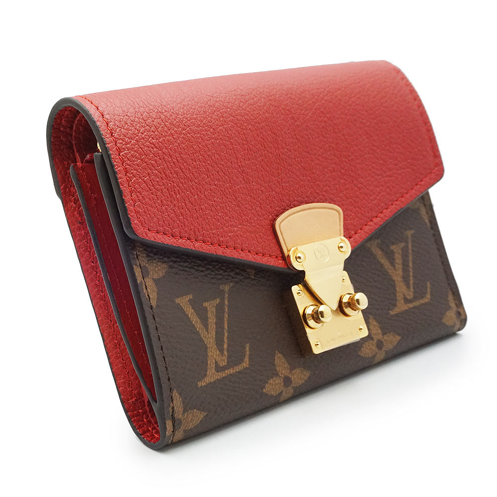 [全新未使用] Louis Vuitton Pallas Portefeuille 紧凑型三折钱包,采用字母小牛皮制成,带有红色和棕色樱桃红色图案,配有金色金属配件,M67478