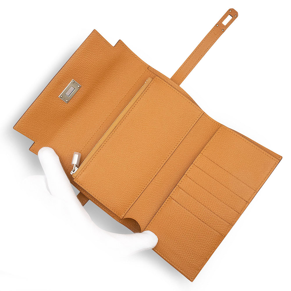 这款凯莉钱包 Deprien Medium 是一款三折钱包,其设计灵感源自爱马仕标志性的凯莉包。它奢华的质感和光泽之美,使其成为优雅女性的完美之选。