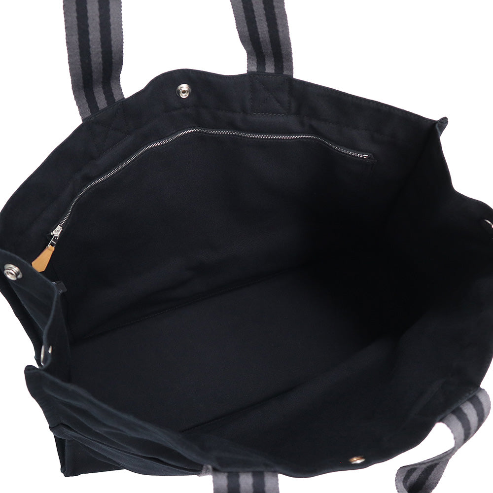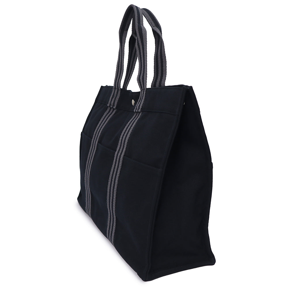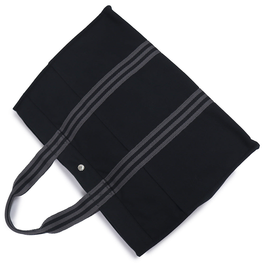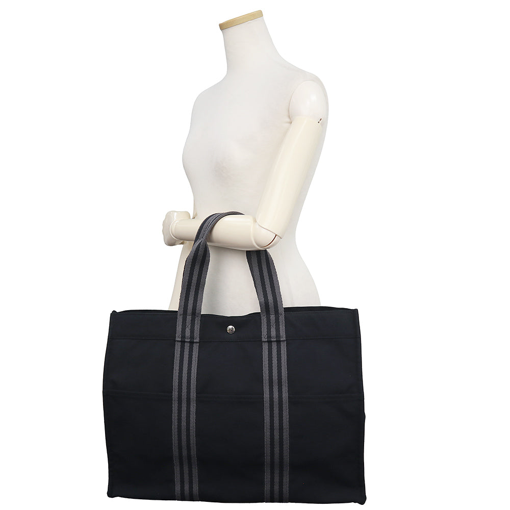 【美品】HERMES エルメス フールトゥ GM キャンバス ブラック グレー トート ハンドバッグ シルバー金具