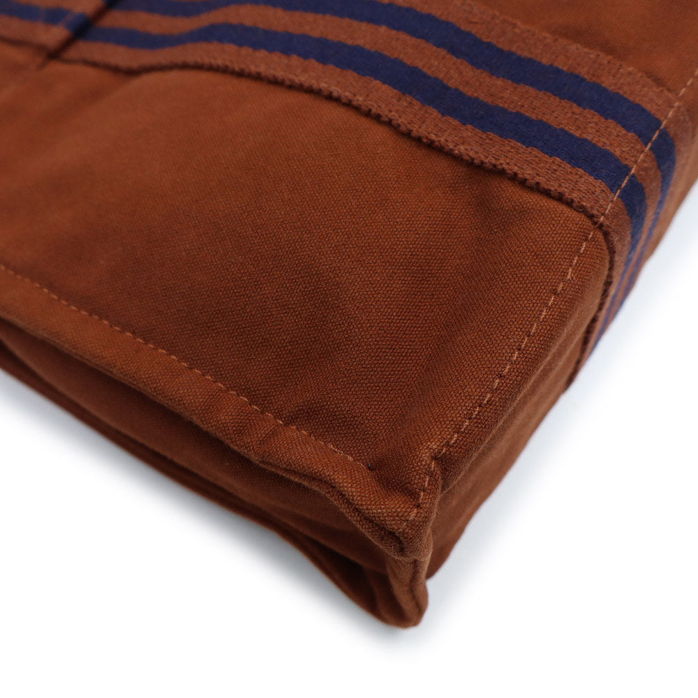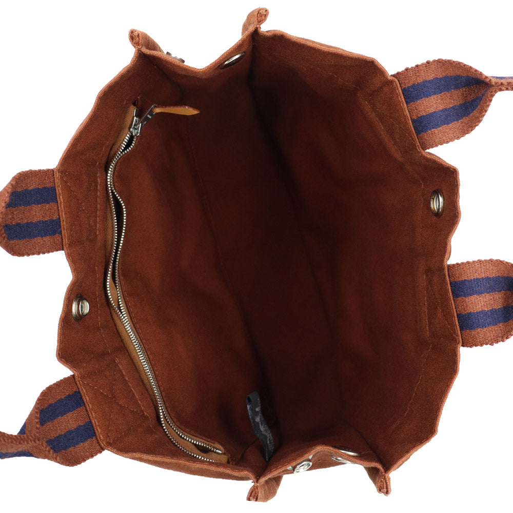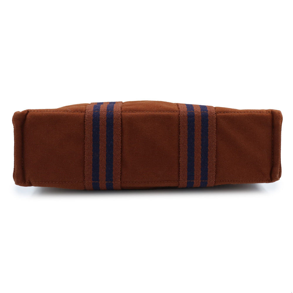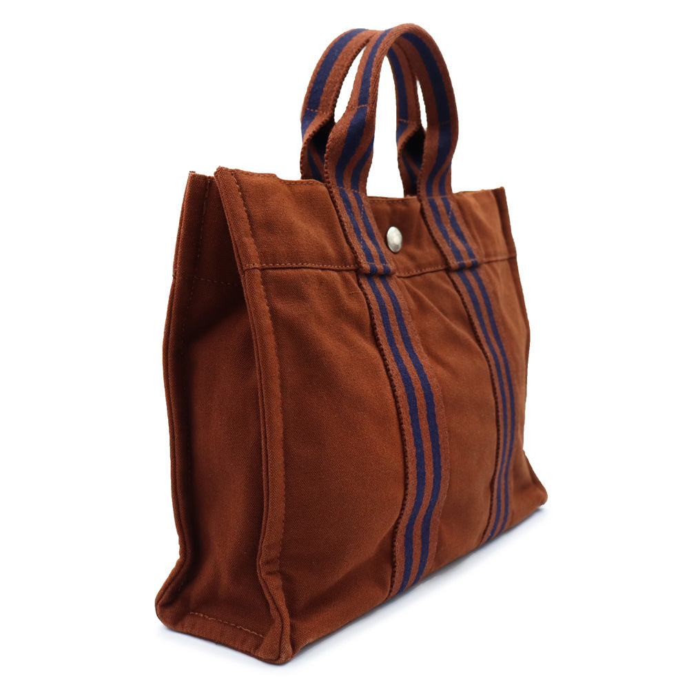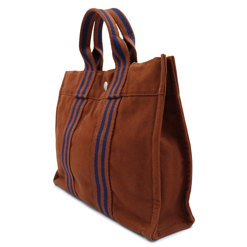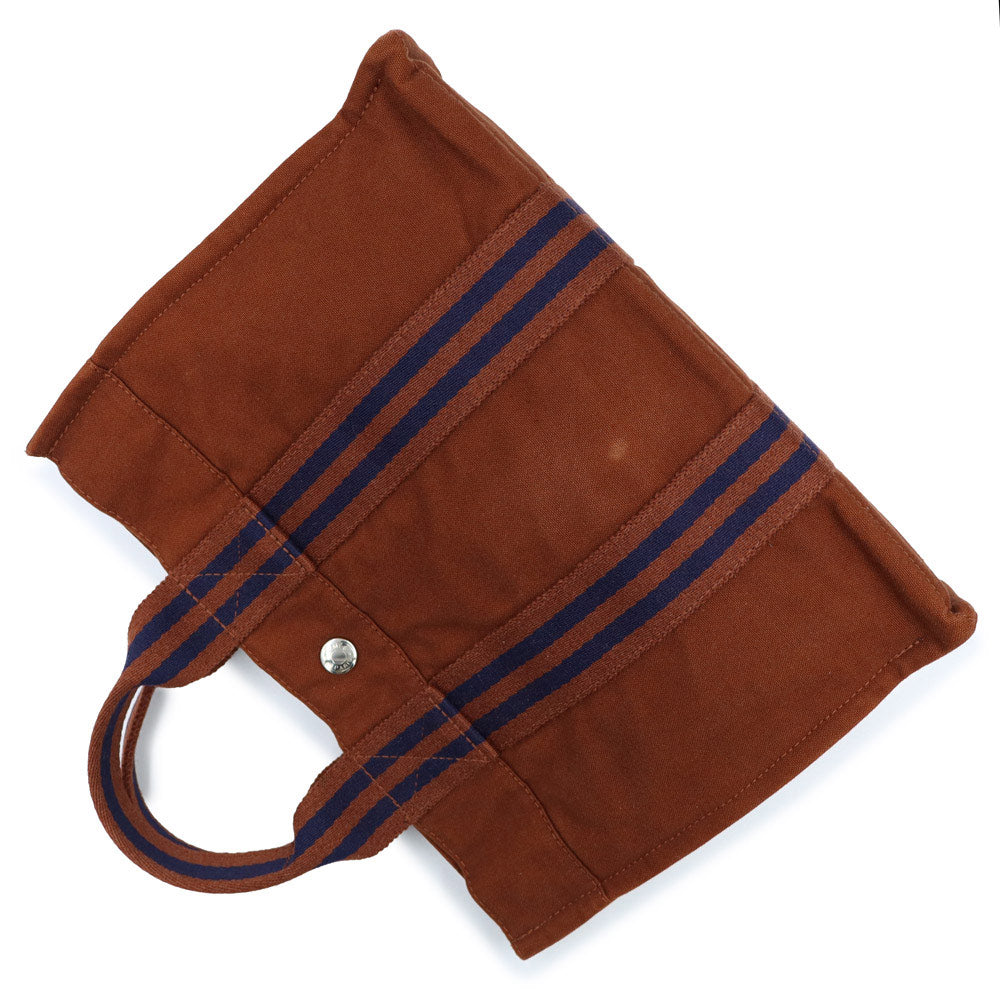 二手爱马仕 Four Tou PM 棉帆布手提包,棕色和海军蓝配色,银色五金配件
