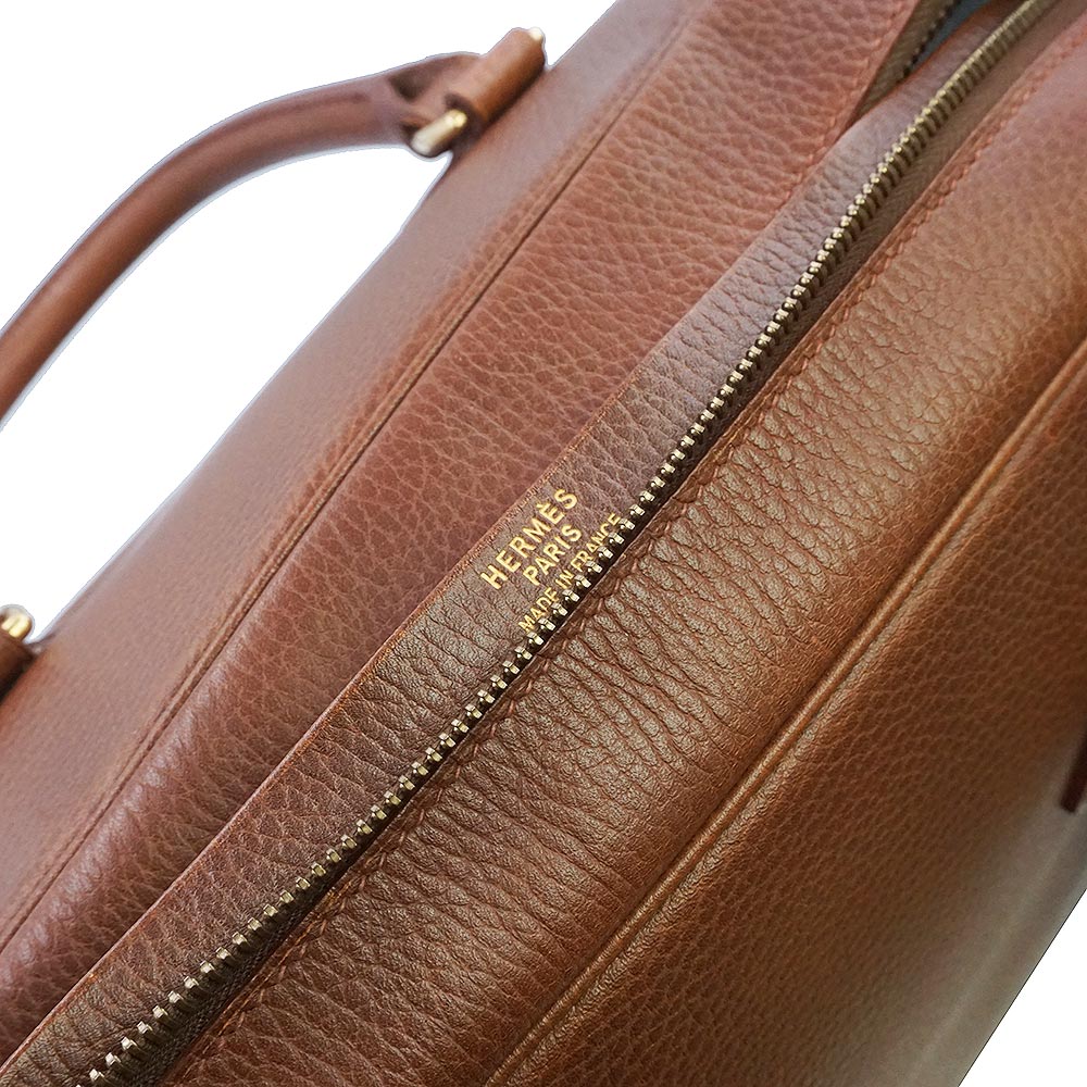 二手爱马仕 Simplon Ardennes Noisette 棕色波士顿手提包,带“Y”字印记,皮革材质,金色五金配件