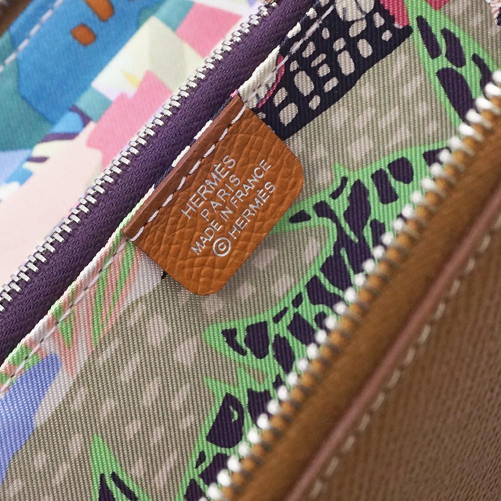 エルメスのジップコインケース、アザップコンパクト シルクイン。内生地にラグジュアリー感溢れるシルクスカーフが使われており、エルメスならではの高級感を感じさせます。ファスナーを開けるとマチが広がり、中身が出し入れしやすいのも嬉しいポイント。プレゼントにもオススメです。 |
