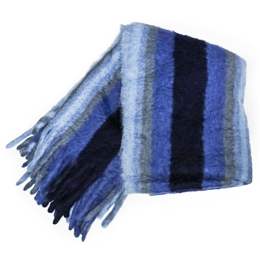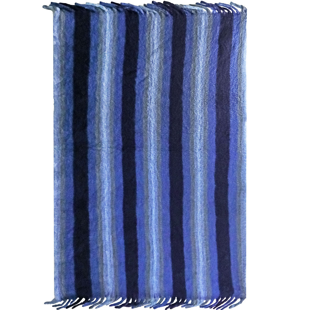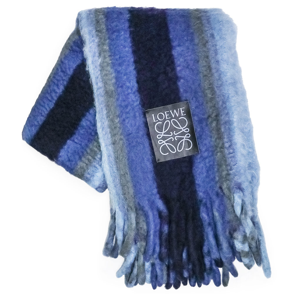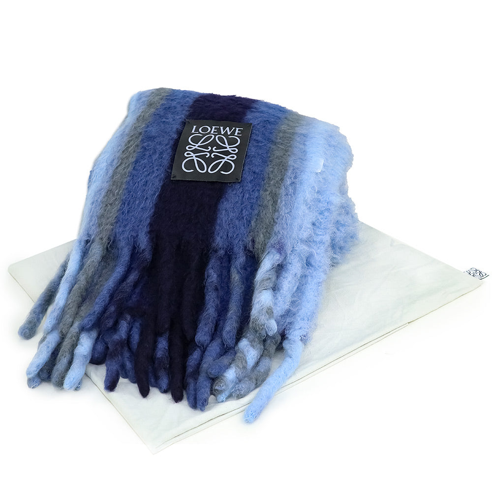 [状况良好] LOEWE 条纹毛毯 羊毛尼龙 马海毛 蓝灰色 海军蓝 海军蓝