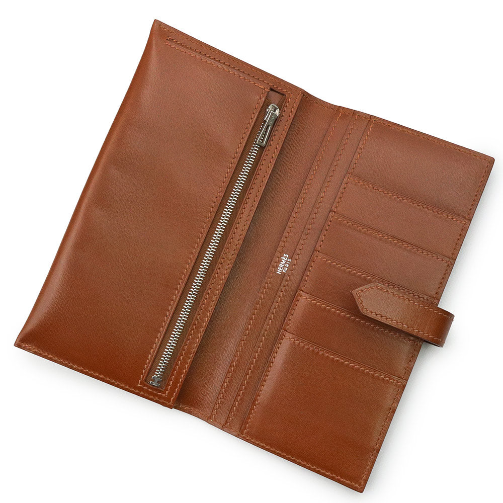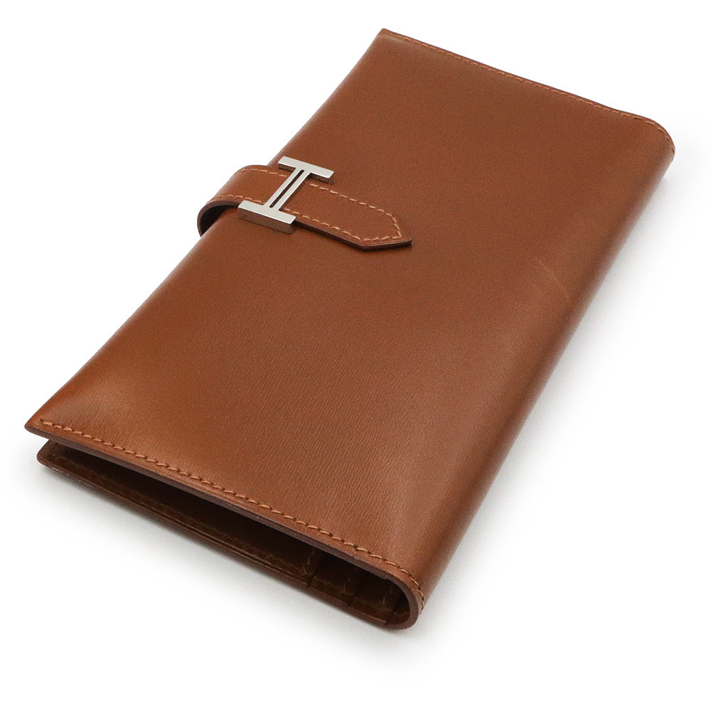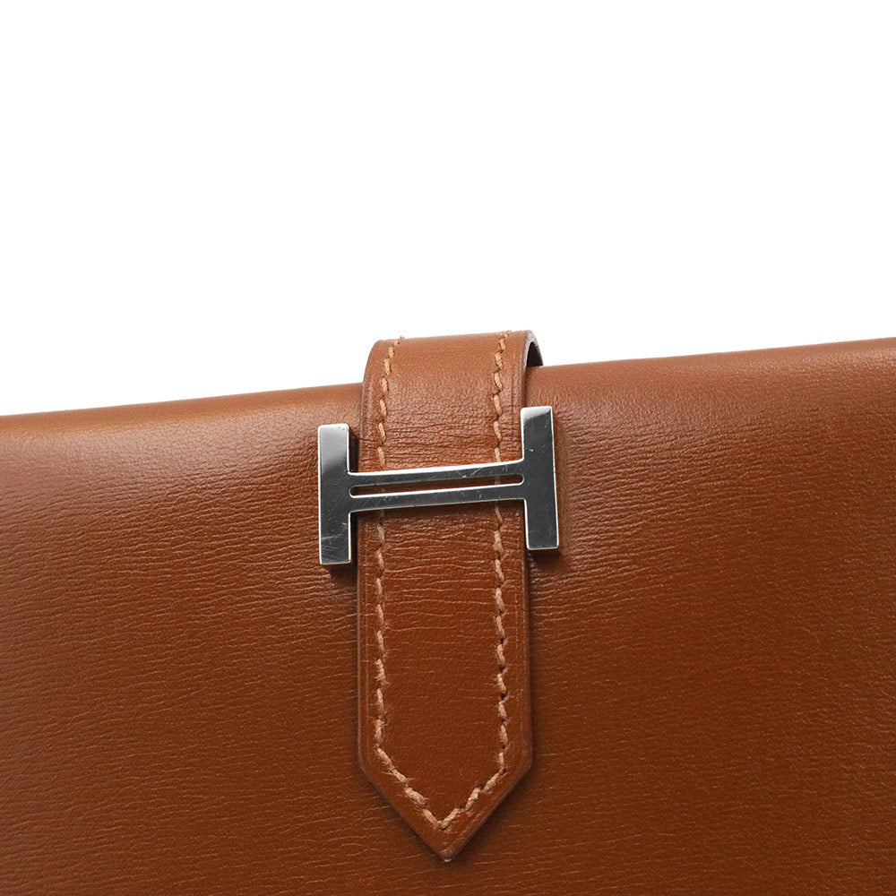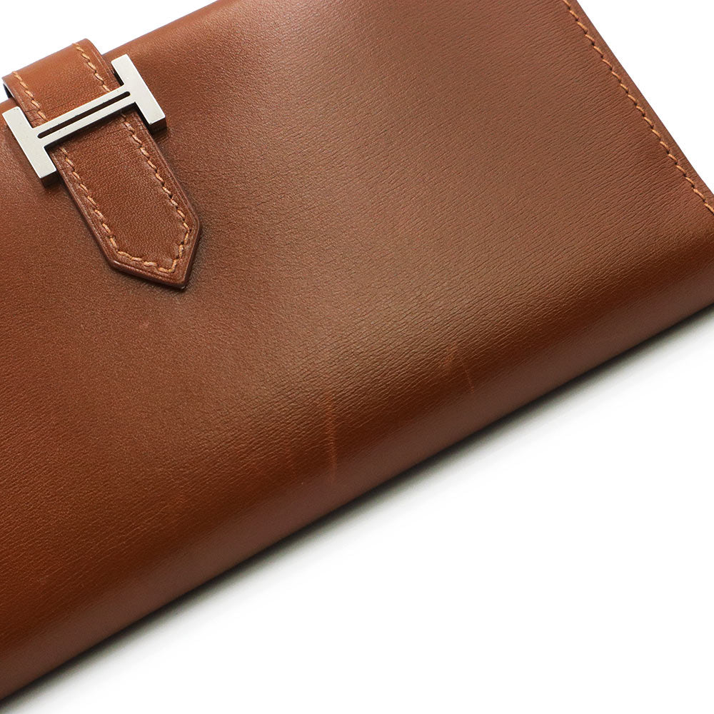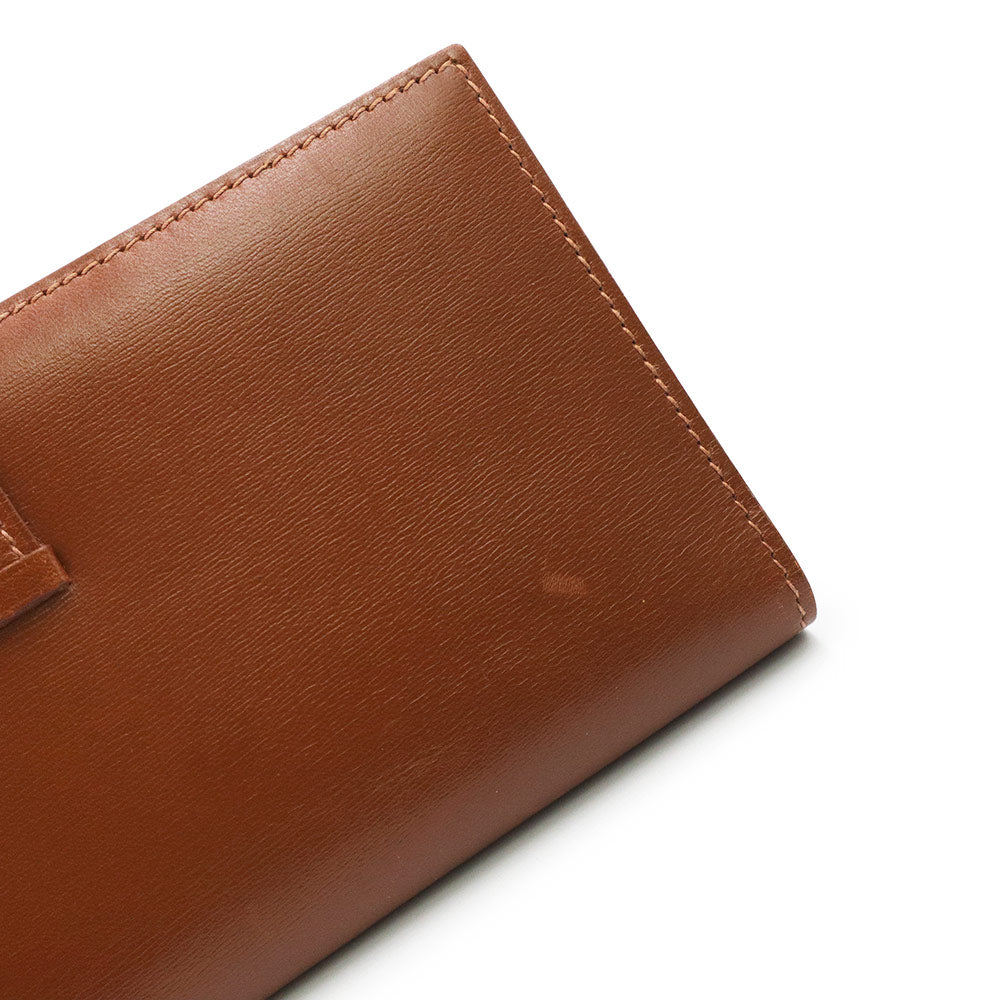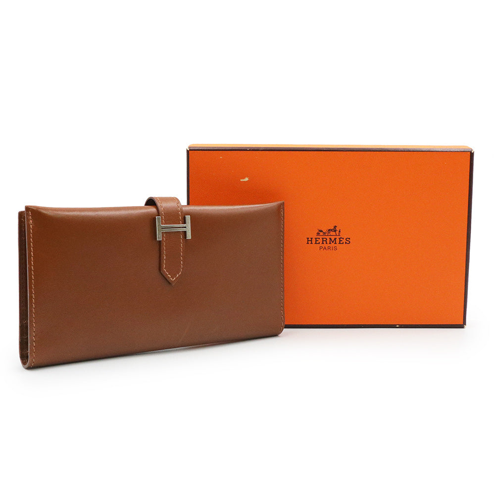 [二手] Hermes Bearn 经典双折长款钱包 Box 小牛皮 Noisette 棕色 银扣 □F 印章