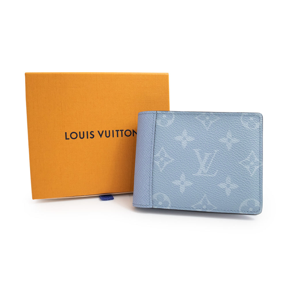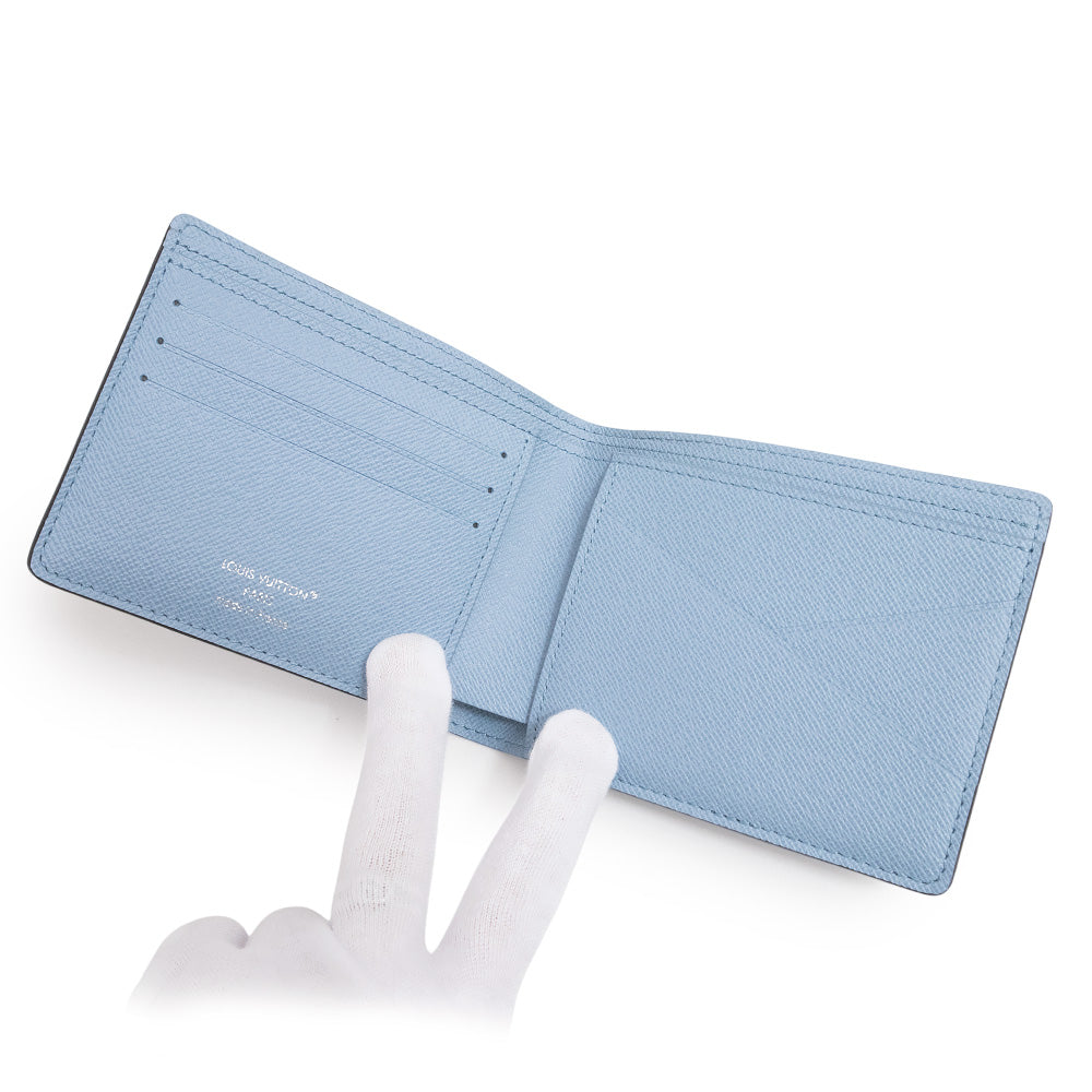 【新品・未使用品】ルイ ヴィトン LOUIS VUITTON ポルトフォイユ ミュルティプル 札入れ 二つ折り財布 モノグラム タイガ レザー スカイブルー M14111 箱付
