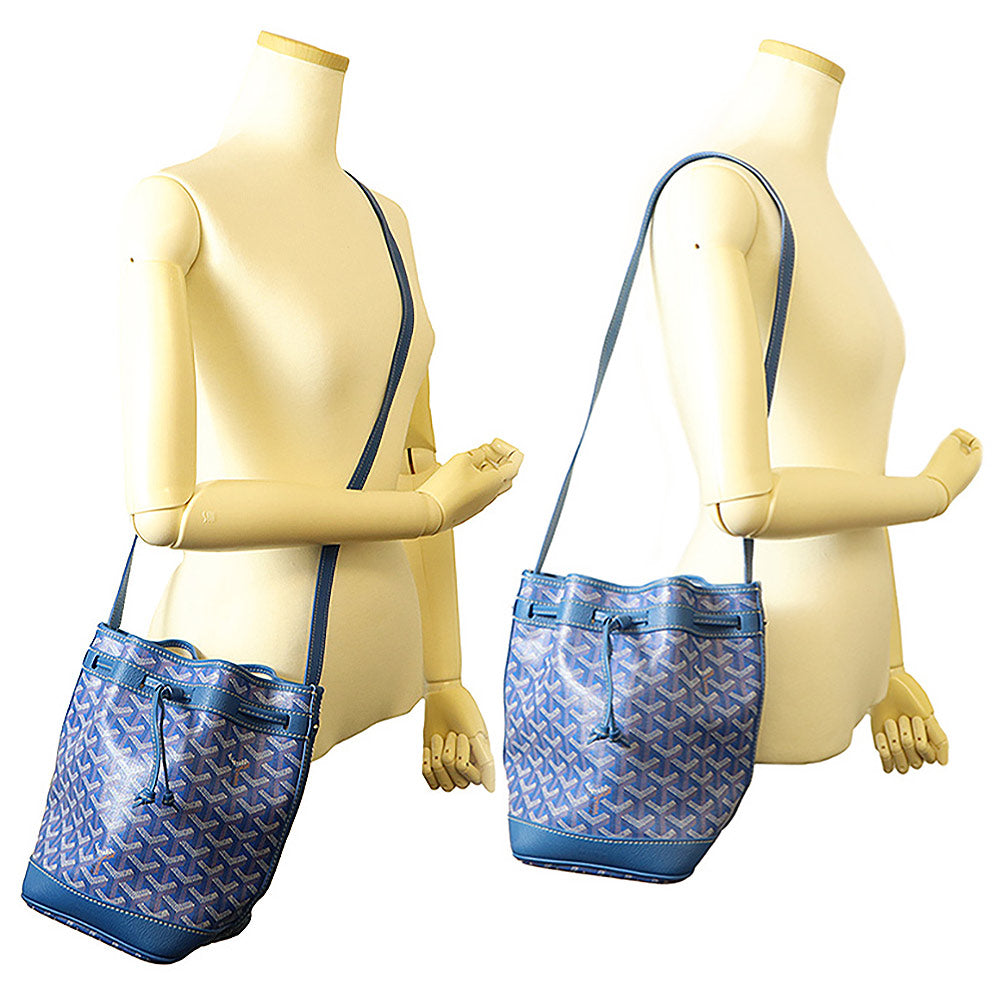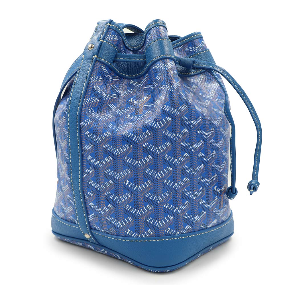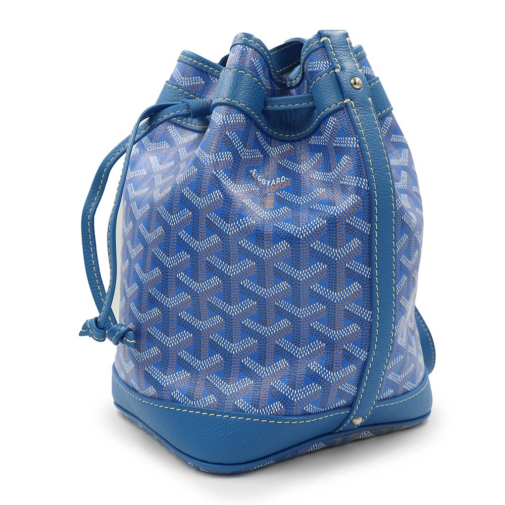 【全新展示品】Goyard Petit Flot 水桶抽绳单肩包/斜挎包,Goyardine 帆布,Chevroche 小牛皮,天蓝色,银色五金,PEFLOTPMLTY