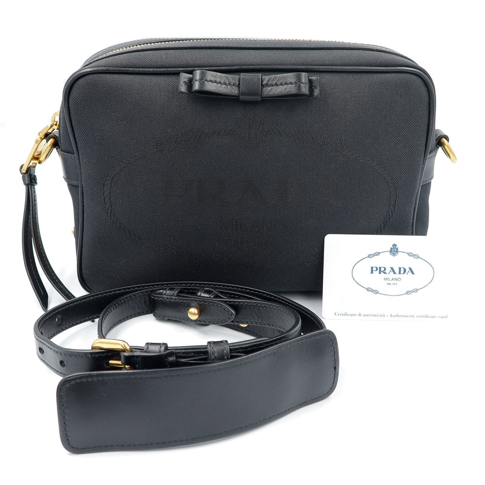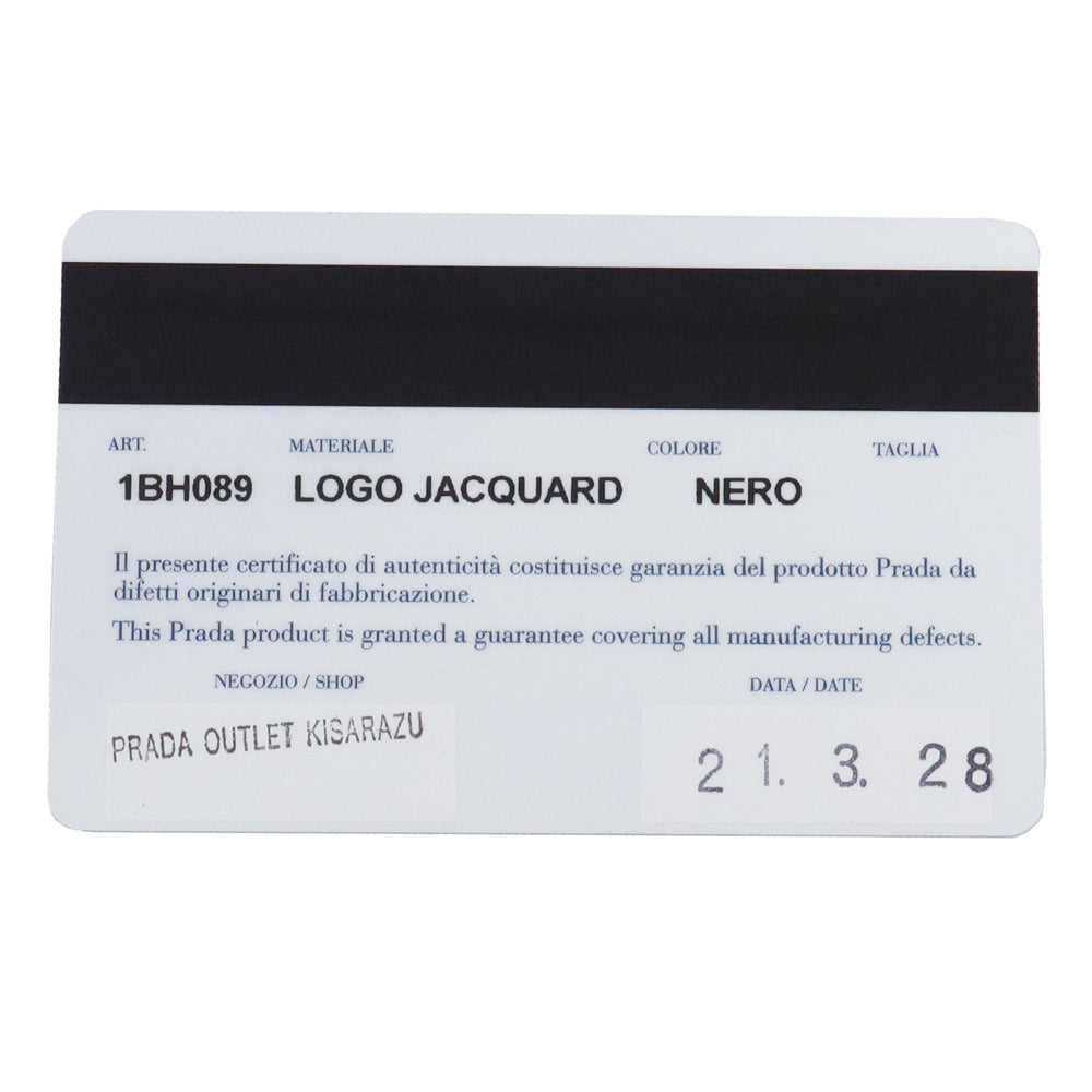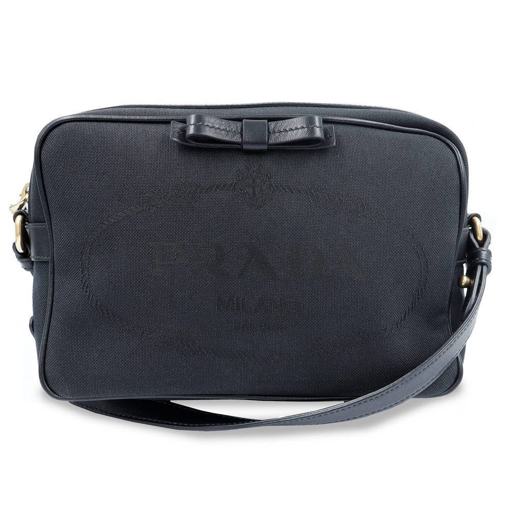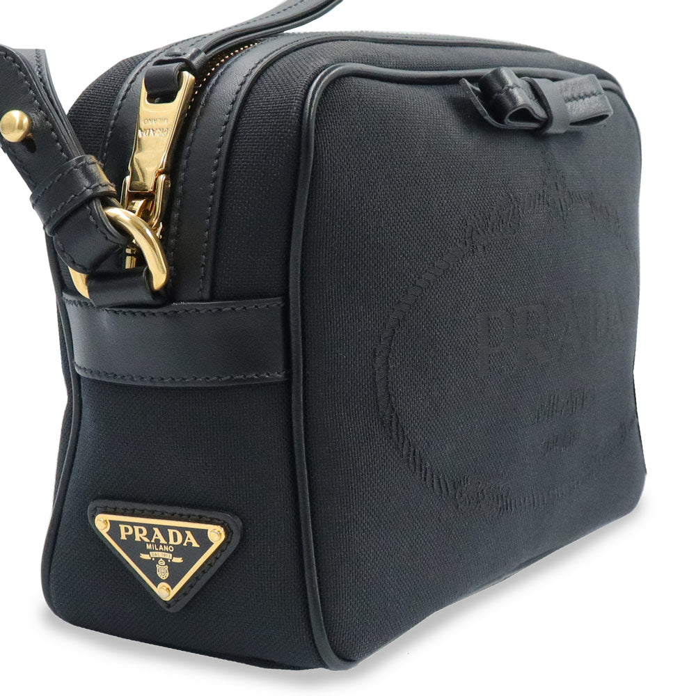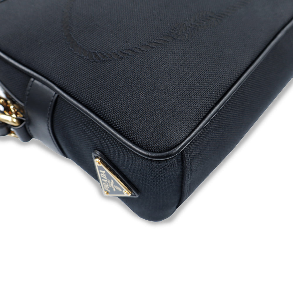 【成色极佳】Prada Logo提花肩背包/斜挎包,帆布和小牛皮材质,黑色,金色五金,1BH089