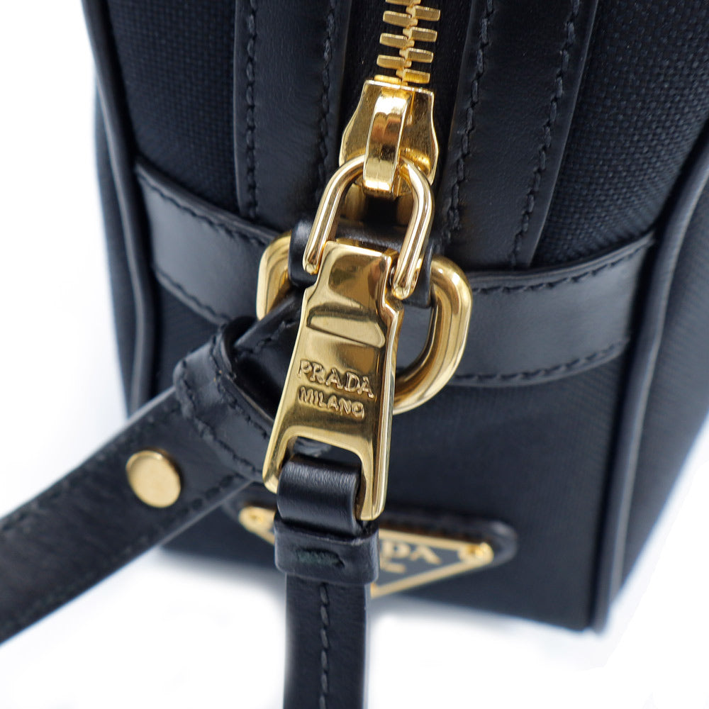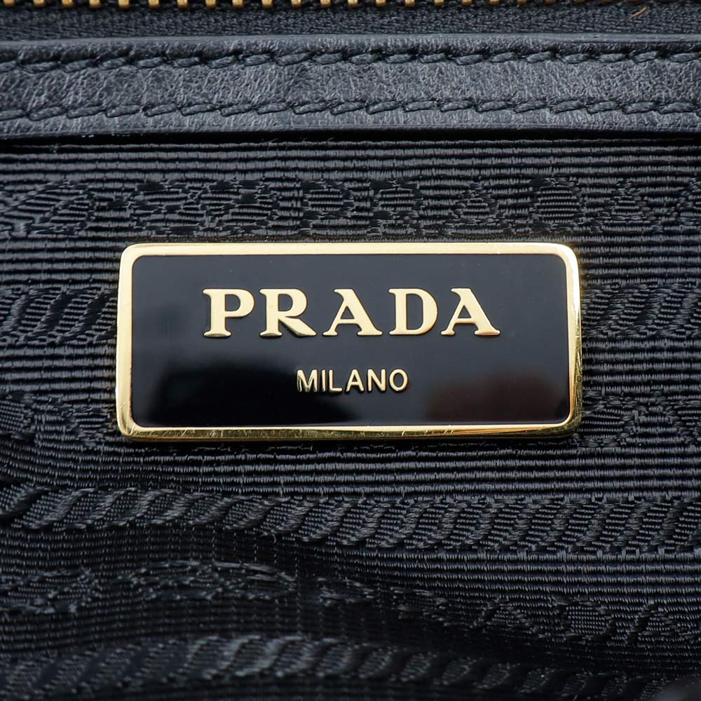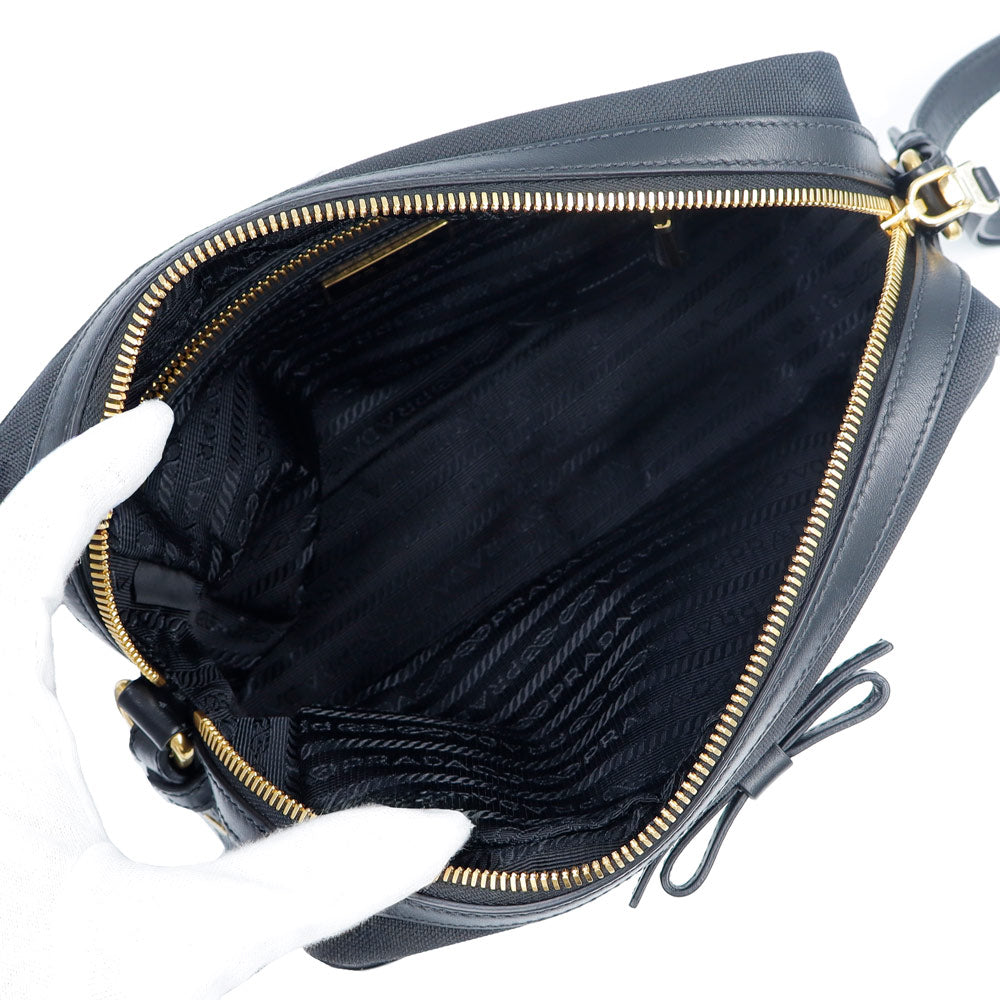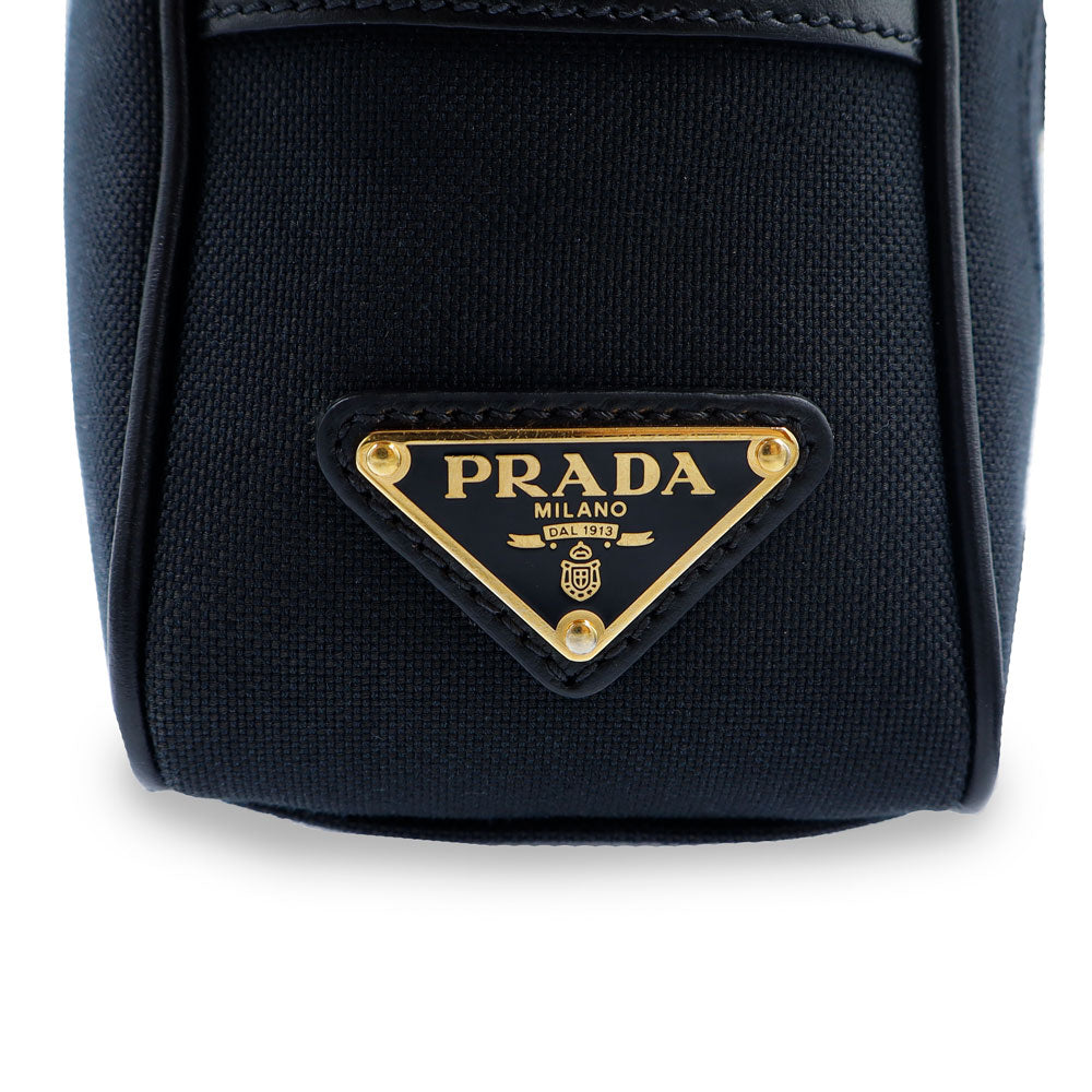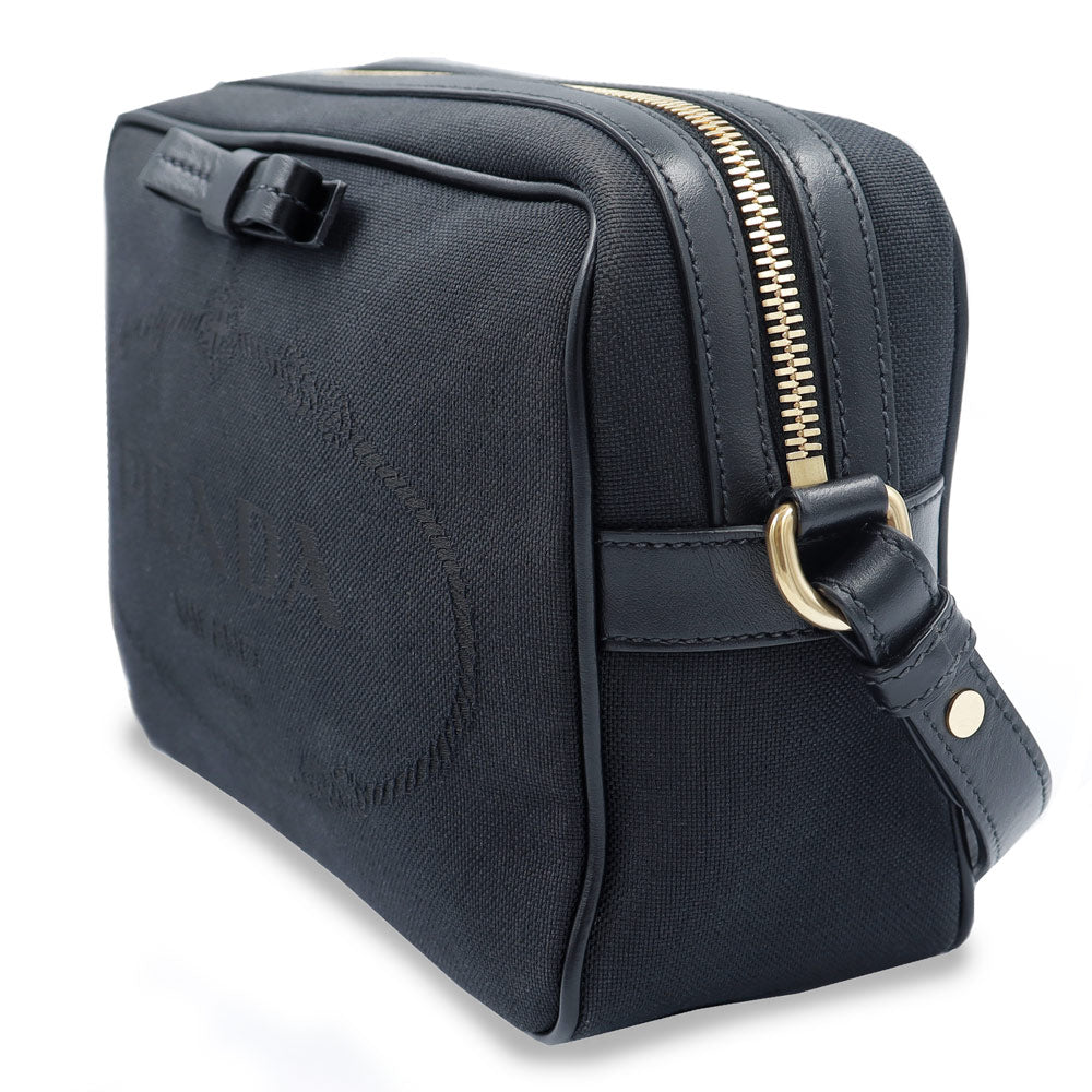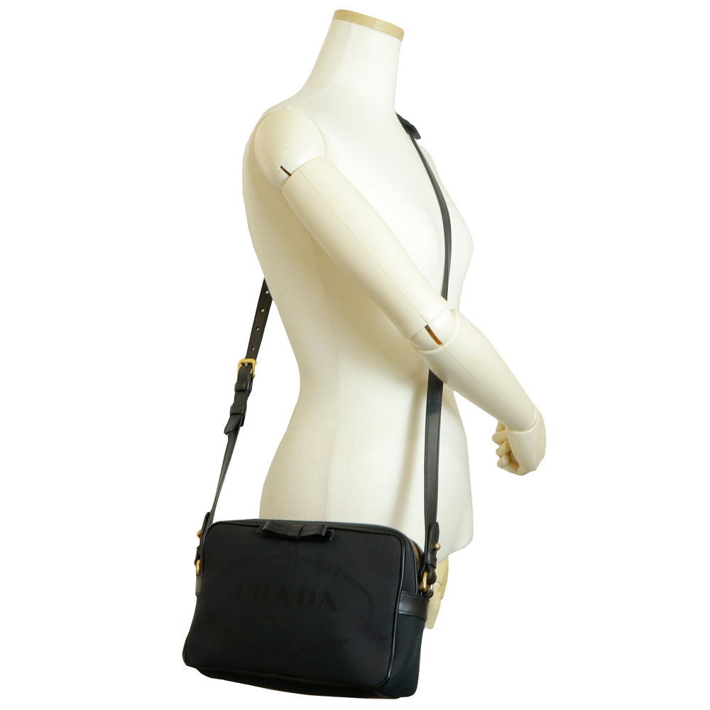 【成色极佳】Prada Logo提花肩背包/斜挎包,帆布和小牛皮材质,黑色,金色五金,1BH089