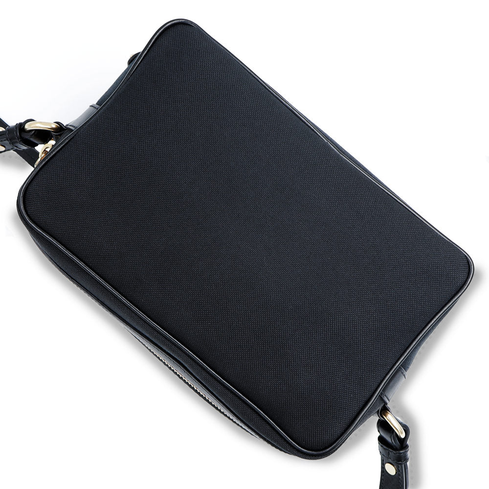 这款肩背包采用黑色帆布面料,搭配金色五金配件,轻盈优雅。它适用于各种场合,从休闲到正式皆可驾驭,既实用又兼具奢华感。 |